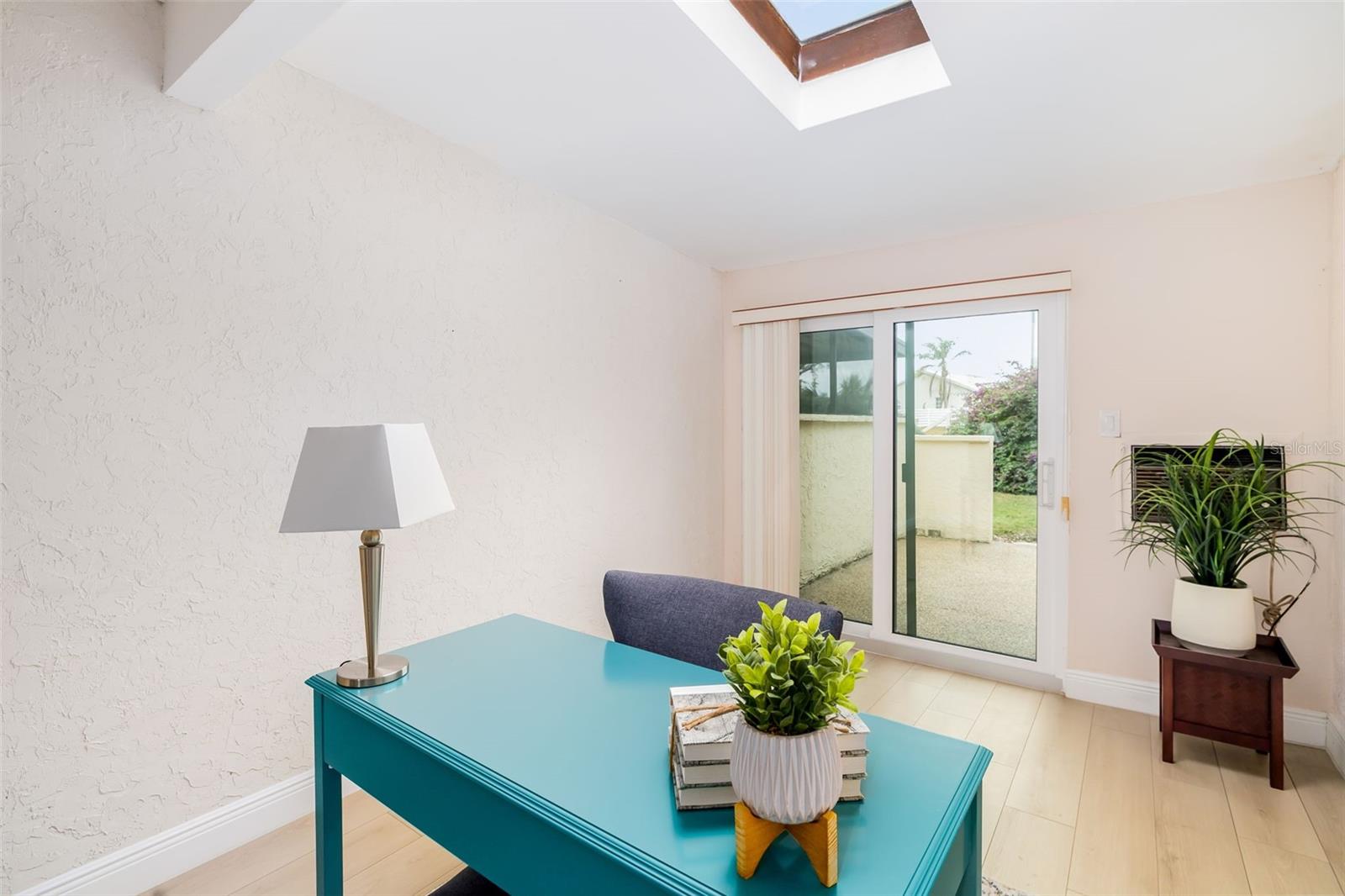 Florida villa, where refined living meets casual sophistication. This villa offers 2,177 square feet of beautifully appointed living space, featuring three bedrooms and three bathrooms across two graceful levels. The heart of this home showcases a magnificent great room with soaring vaulted ceilings and a stunning fireplace, creating an ideal setting for both intimate gatherings and grand entertaining. The renovated kitchen gleams with bright cabinetry and opens seamlessly to a split dining area, perfect for culinary enthusiasts and social hosts alike. Premium finishes abound, including new vinyl flooring in the lower-level bedrooms and Hurricane-rated sliding doors for peace of mind during Florida's dramatic weather. The primary suite, perched on the upper level, offers a private balcony overlooking the expertly manicured landscape. A secondary upstairs bedroom features its own dedicated bathroom, while a versatile alcove space provides the perfect retreat for quiet moments. Brand New 2024 AC! Outdoor living flourishes on the screened lanai, where you can embrace Florida's celebrated climate in perfect comfort. The two-car garage, newly installed HVAC and recently replaced roof demonstrate this home's impeccable maintenance. Villa ROOF (2022) and now a brand new lanai ROOF (2023). Situated in the prestigious Racquet Club Villas along Sarasota Bay, this residence enjoys proximity to IMG Golf & Country Club, world-class educational institutions, and convenient shopping. Beach enthusiasts will appreciate being just eight miles from Anna Maria Island's pristine shores, while culture seekers can reach downtown Sarasota's vibrant scene in twenty minutes. This exceptional property represents the perfect blend of luxury, comfort, and coastal living in one of Florida's most desirable locations. Don’t delay, schedule your showing today! Don't miss out on this fantastic opportunity to make 6012 Courtside your forever home. Call today to schedule a viewing and experience the magic of this captivating property firsthand!