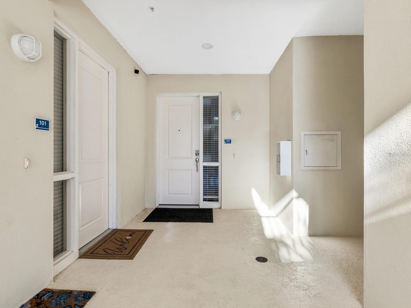 Welcome to Palma Sola Bay Club, your gateway to outdoor bliss! Discover a rare gem for outdoor enthusiasts and luxury seekers alike. Within a serene 30-acre nature preserve, this exclusive condominium community offers resort-style living at its finest. A coastal retreat to call home. This private end-unit condominium boasts 1,650 square feet of air-conditioned living space, complemented by a spacious terrace overlooking lush park-like views and one of three picturesque, stocked ponds. High ceilings and an open floor plan create an inviting atmosphere, ideal for entertaining or relaxing after a day of adventure. Prime location for an active lifestyle. Just minutes from Bradenton Beach, Anna Maria Island, and the seafood delicacies and shopping scene of Cortez, your new home is surrounded by natural beauty and endless activities. Explore the trails at Robinson Nature Preserve, enjoy outdoor fun at GT Bray Park, or immerse yourself in history at DeSoto National Memorial Park. Exceptional features and amenities, construction and updates. Freestanding concrete block and steel construction, elevator access and a new metal roof in 2024. Parking and storage with two designated under-building parking spaces, a 10-foot-by-5-foot storage cage, plus kayak and bicycle storage. Chef’s kitchen with custom tile backsplash, granite countertops, stainless steel appliances and ample custom cabinetry. Primary suite oasis. A spacious retreat with a walk-in and built-in closet, luxurious soaking tub, large shower, dual vanities and private toilet room. Additional comforts with a generously sized guest bedroom, oversized laundry room including a side-by-side washer and dryer, and window blinds throughout. Resort-style amenities. Enjoy your new friends while grilling your dinner around a heated pool, two-story clubhouse, fitness center, billiards, library, outdoor grilling stations, fire pit, putting green, bocce ball court, dog park and a kayak launch for exploring Palma Sola Bay. Community perks with low HOA fees of $1,060 a month, you’ll benefit from comprehensive services, including building insurance, high-speed internet, Blue Stream TV, exterior maintenance, pest control, recreational facilities and more. Pet-friendly and flexible leasing. Palma Sola Bay Club welcomes pets and offers leasing opportunities, making it ideal for snowbirds, year-round residents or investors. Live where luxury meets nature and adventure. Schedule your private tour today and experience the Palma Sola Bay Club lifestyle.