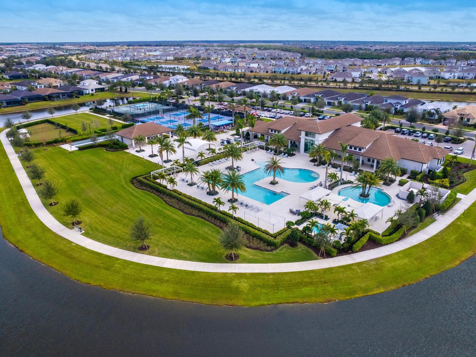Step into this nearly new home and prepare to be wowed! The moment you walk in, you'll be greeted by gleaming, upgraded porcelain tile floors that flow seamlessly throughout. This stylish 3-bedroom, 3-bathroom home, complete with a versatile den, features dual sliding doors that open to a screened lanai—perfect for soaking in those breathtaking sunsets. Worried about storms? No need! This home stood strong through the summer storms, untouched and as beautiful as ever. The spacious backyard is ready for your dream pool, or you can take advantage of the resort-style heated community pool, complete with relaxing cabanas. Just 0.2 miles away, the amenity center is packed with everything you need—fitness room, community space, tennis & pickleball courts, a yoga/aerobics studio, an art room with a ceramic kiln, open-air loggias, an event pavilion with catering facilities, and even a dog park for your furry friend! Best of all? Lawn maintenance, irrigation, cable, and internet are all included in the monthly fees. Peace of mind has never looked this good—and it could be yours for under a million dollars!