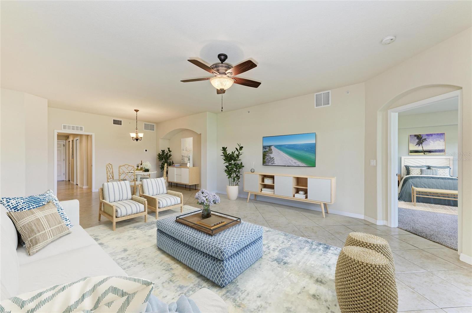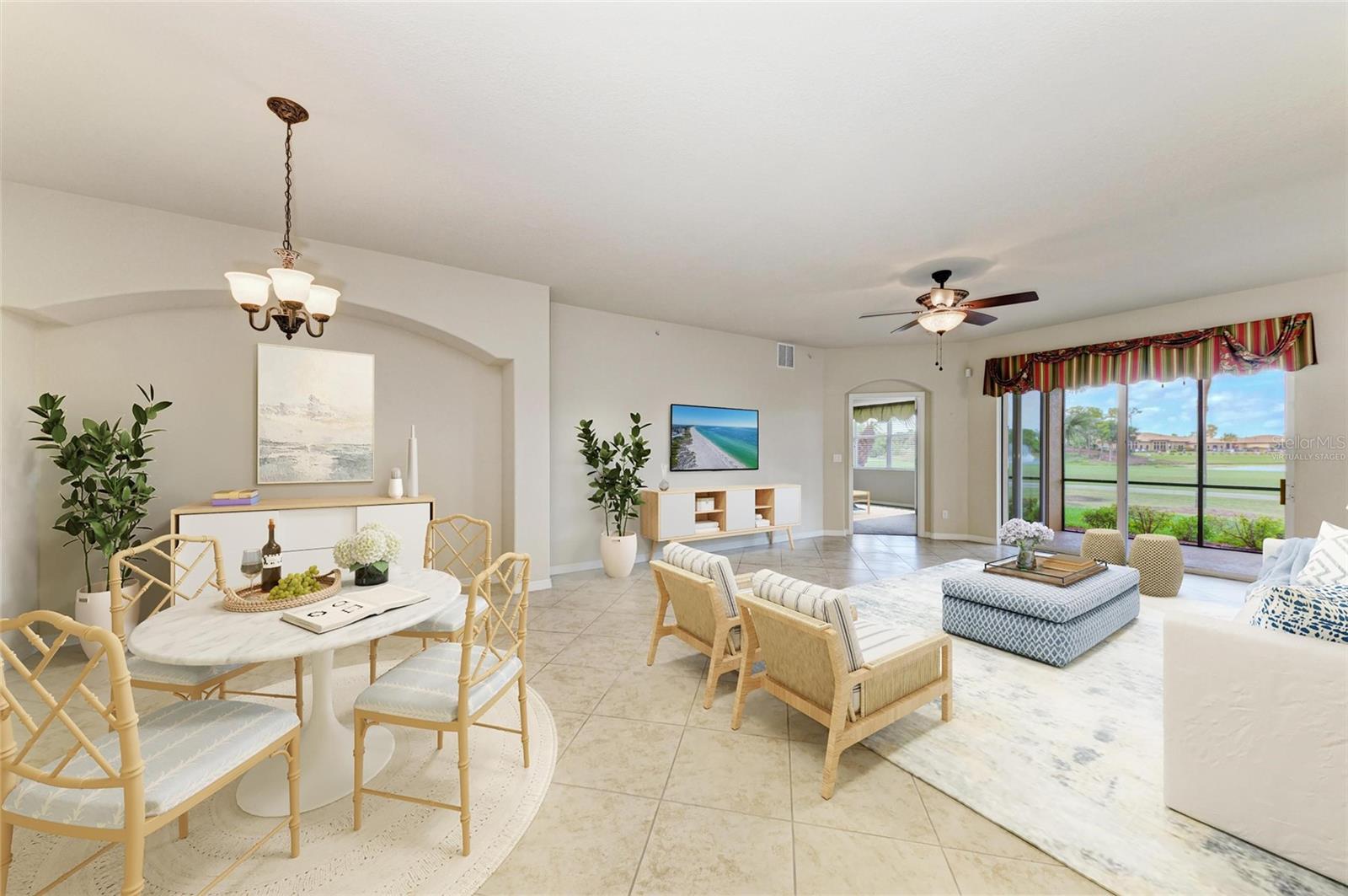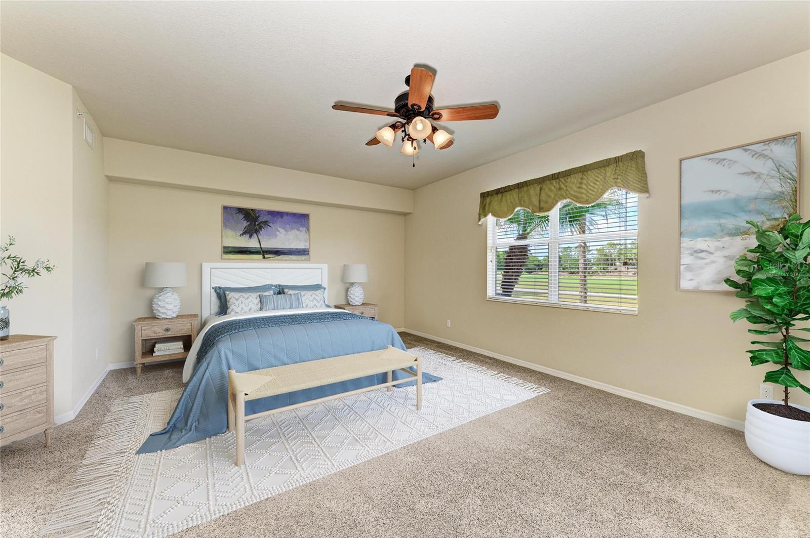 One or more photo(s) has been virtually staged. Owner says, "Bring offers!" The PRICE is RIGHT & the VIEWS are FANTASTIC! Location is everything in real estate! Are you looking for the best view in River Strand? Look no further, because you have found it! This fantastic end unit GOLF DEEDED Coach Home will be perfect whether it is your full-time residence or your new “Florida getaway” property. This open floor plan provides all of the space you need for you & guests or family. Looking out upon the 9th hole of the Estuary Course you will enjoy the fountain views as well as the daily sunsets, which are truly majestic. You are simply steps away from your very own private satellite pool as well as being right around the corner from the main clubhouse. They say location is everything in real estate and in this case, it can’t be truer. Check out the primary bedroom with the newer carpet and the spacious bathroom where the owners have replaced the countertops, sinks, fixtures & even the toilet. You will embrace the Florida lifestyle at this perfect first floor coach home with no steps, which includes updates that the original owners have made, including a newer HVAC, refrigerator, water heater, and washer & dryer. This home has never been rented and includes updates like new lanai fans, sunshades, a newer garage door system and a whole home water filtration system. Your golf greens fees, (you just pay cart fees) lawn care as well as cable and Internet are all included in your quarterly fees! Last but not least, the Coach Homes in River Strand have been built with impact doors and windows which provide added insulation and peace of mind. Look no further, you just hit the jackpot. River Strand Golf & Country Club is a friendly community with a 27-hole Arthur Hills designed golf course, 9 Har-Tru Tennis Courts, 8 Pickleball courts, 2 Resort-Style Pools, 6 Satellite Pools, Clubhouse with restaurant & social events, Community Center & 2 fitness centers in this luxury gated community with 24 hr. security & lawn maintenance. Convenient location to I-75, Costco, a new Target, Whole Foods & Hobby Lobby coming soon as well as University Town Center, & beaches complete the package. River Strand Golf & Country Club More than a Community, It’s a Lifestyle.