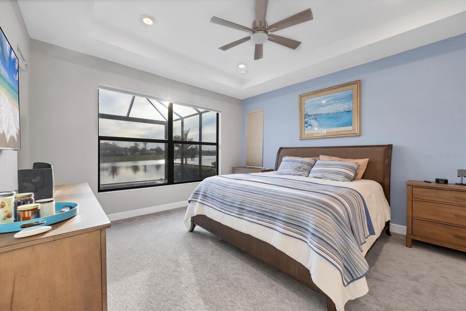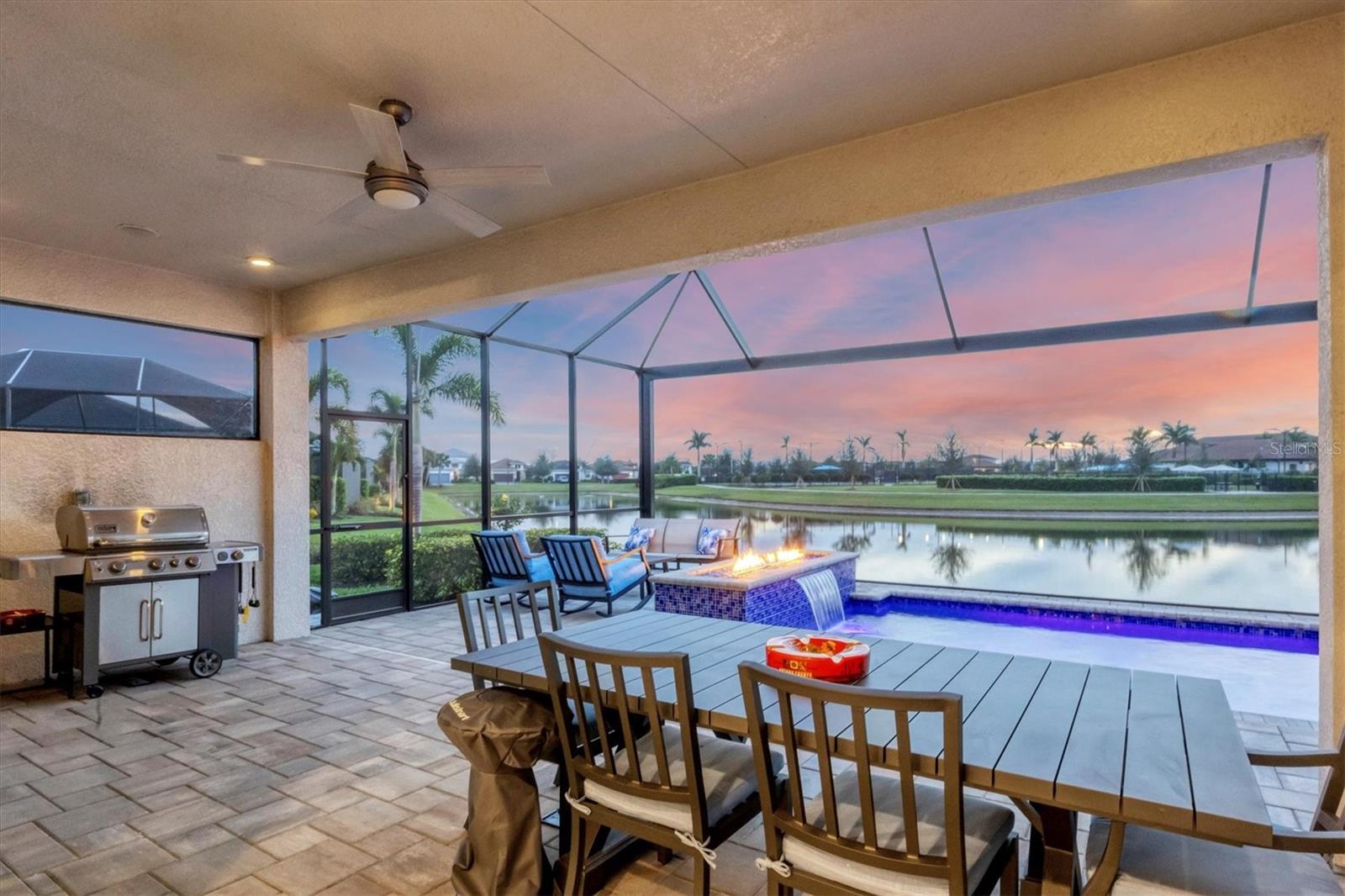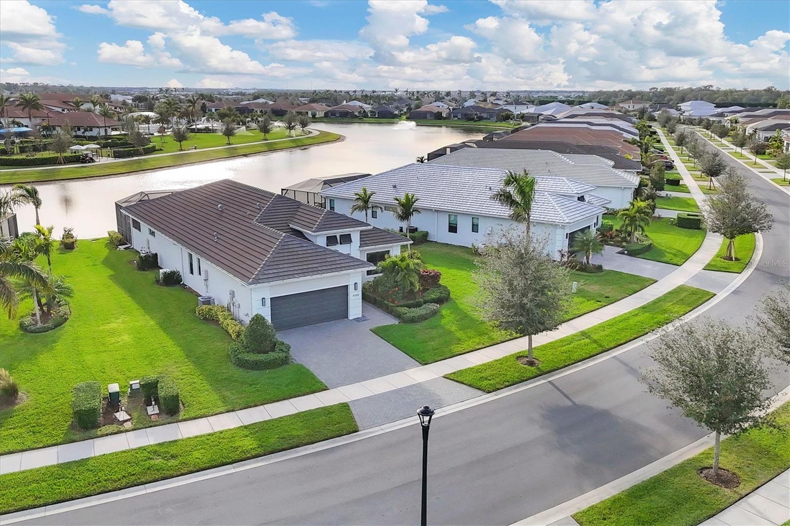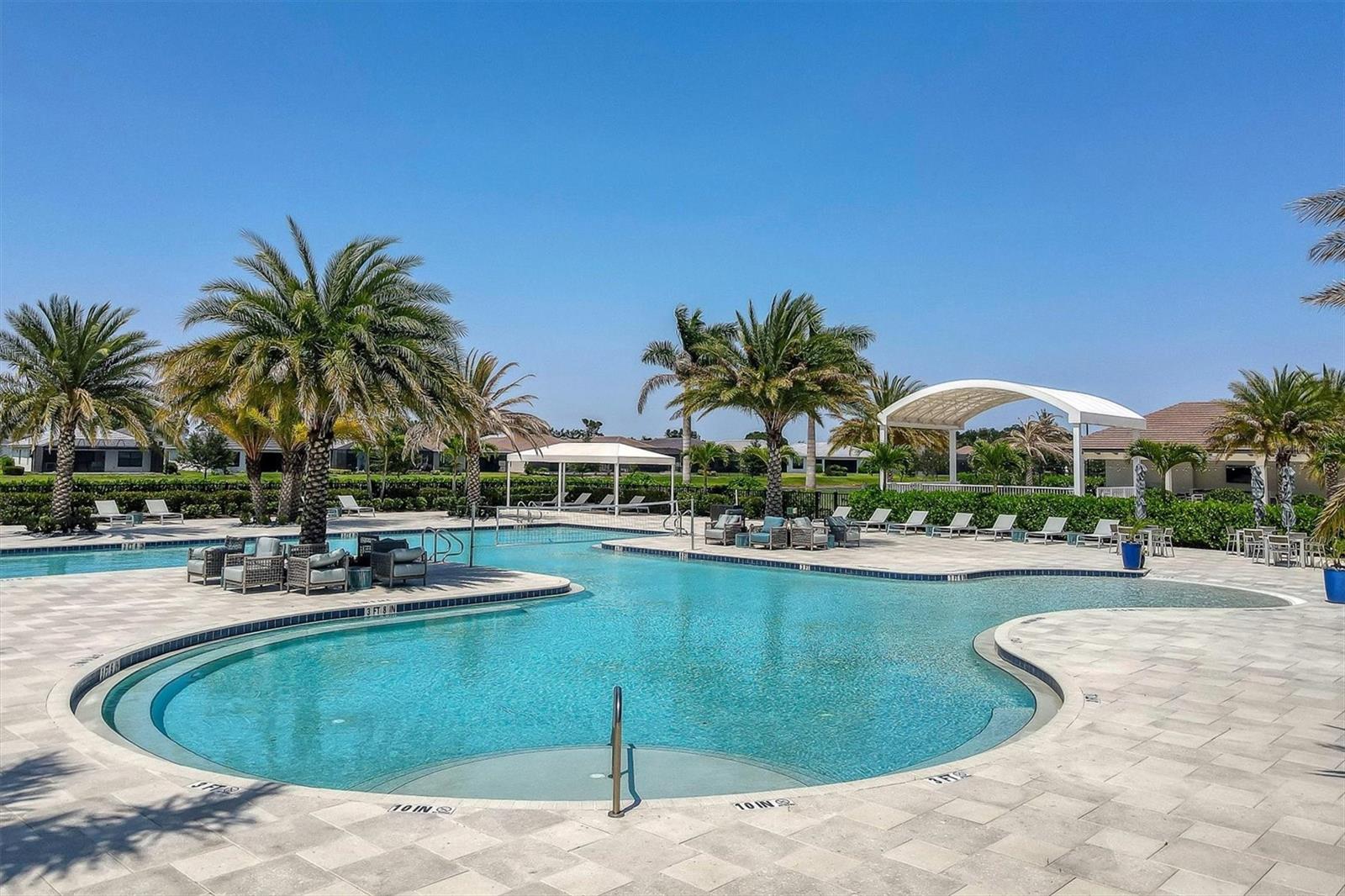 Pristinely upgraded and lightly lived in this gorgeous 3 bedroom, 3 bath, plus custom built-in executive office Fiesta floor plan by Kolter Homes offers a truly luxurious, yet functional home in the award winning, 55+ community of Cresswind in Lakewood Ranch! What makes this home special and different from the rest...it's perfectly situated on one of the largest homesites with spectacular panoramic lake views, and gorgeous sunsets. Key unique elements of this fabulous home include a WHOLE HOUSE GENERATOR for your peace of mind and comfort, beautiful resort style pool with waterfall feature, an 8-foot fire pit for ambiance, panoramic screening and paver decking on the lanai. Throughout the home you will find upgraded quartz and granite counters, upgraded cabinetry and hardware, upgraded flooring in all areas, solid wood custom built-in closets in every room including the pantry, and audio and video security cameras with central control panel. The spacious kitchen boasts upgraded GE Profile stainless steel appliances and Cambria quartz countertops with an extra-large island for entertaining and cooking ease! In addition, the kitchen features full-height backsplash, soft close drawers and cabinets with pull-out drawers. The spa like master suite boasts elegant granite countertops with contrasting cabinetry and granite countertops in secondary baths and laundry room. Other notable upgrades and features include a 4-foot extended garage with custom shelving for more storage space, epoxy floor coating and in the yard additional landscape and lush palms were added with lovely landscape lighting. Cresswind is an amenity rich, luxurious 55+ community situated on 250+ acres that offers an amazing lifestyle with endless possibilities. Engage in a multitude of activities tailored to suit your active lifestyle, from invigorating fitness classes to engaging social events. Outdoor amenities include pickleball & tennis courts, walking trails, resort-style pool and hot tub, resistance pool, event lawn with food trucks and band gazebo, bocce courts, outdoor social areas, dog park and more. This pet-friendly community features a resident-exclusive clubhouse overseen by a full-time lifestyle director with a multi-purpose event and social space, SmartFit/EGym training center, yoga studio, art studio with ceramics, card rooms, and various social clubs. Your best life awaits you in this amazing community and spectacular home!