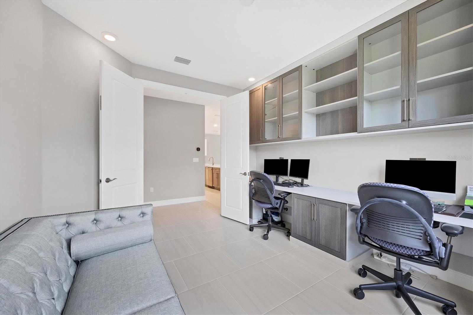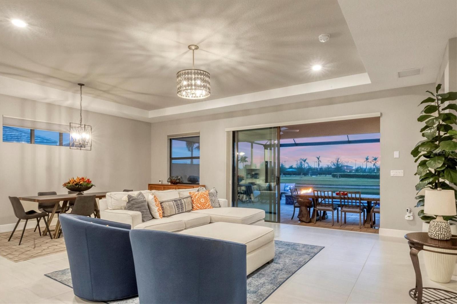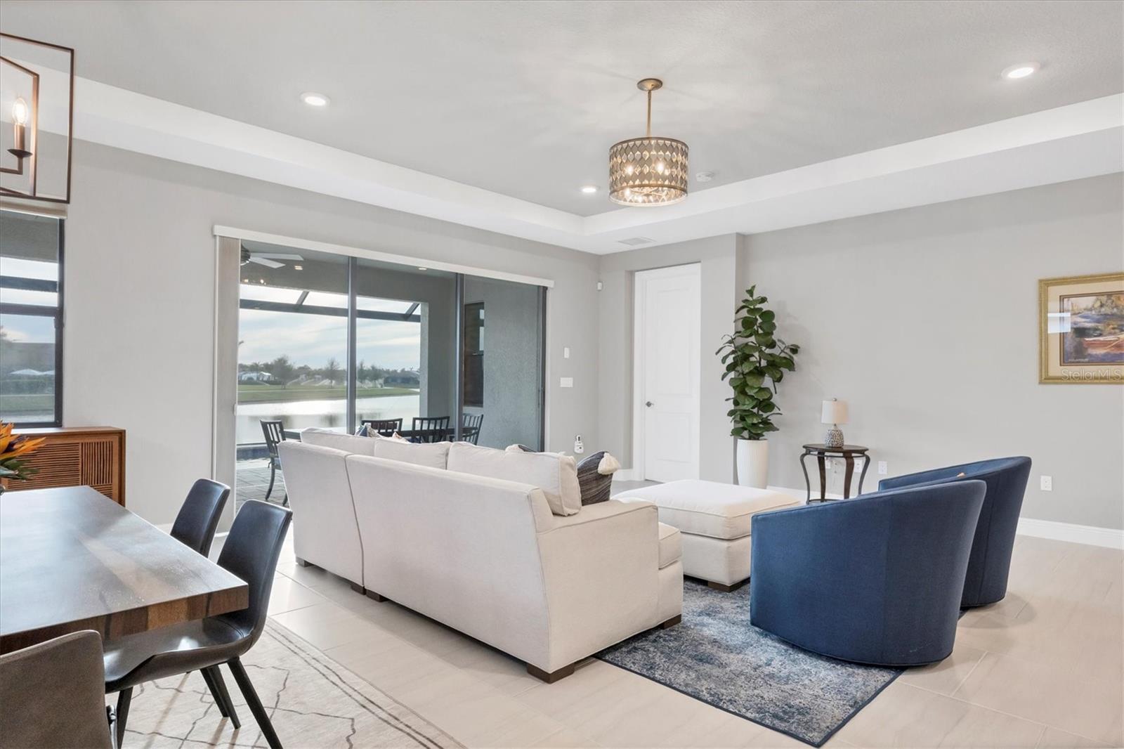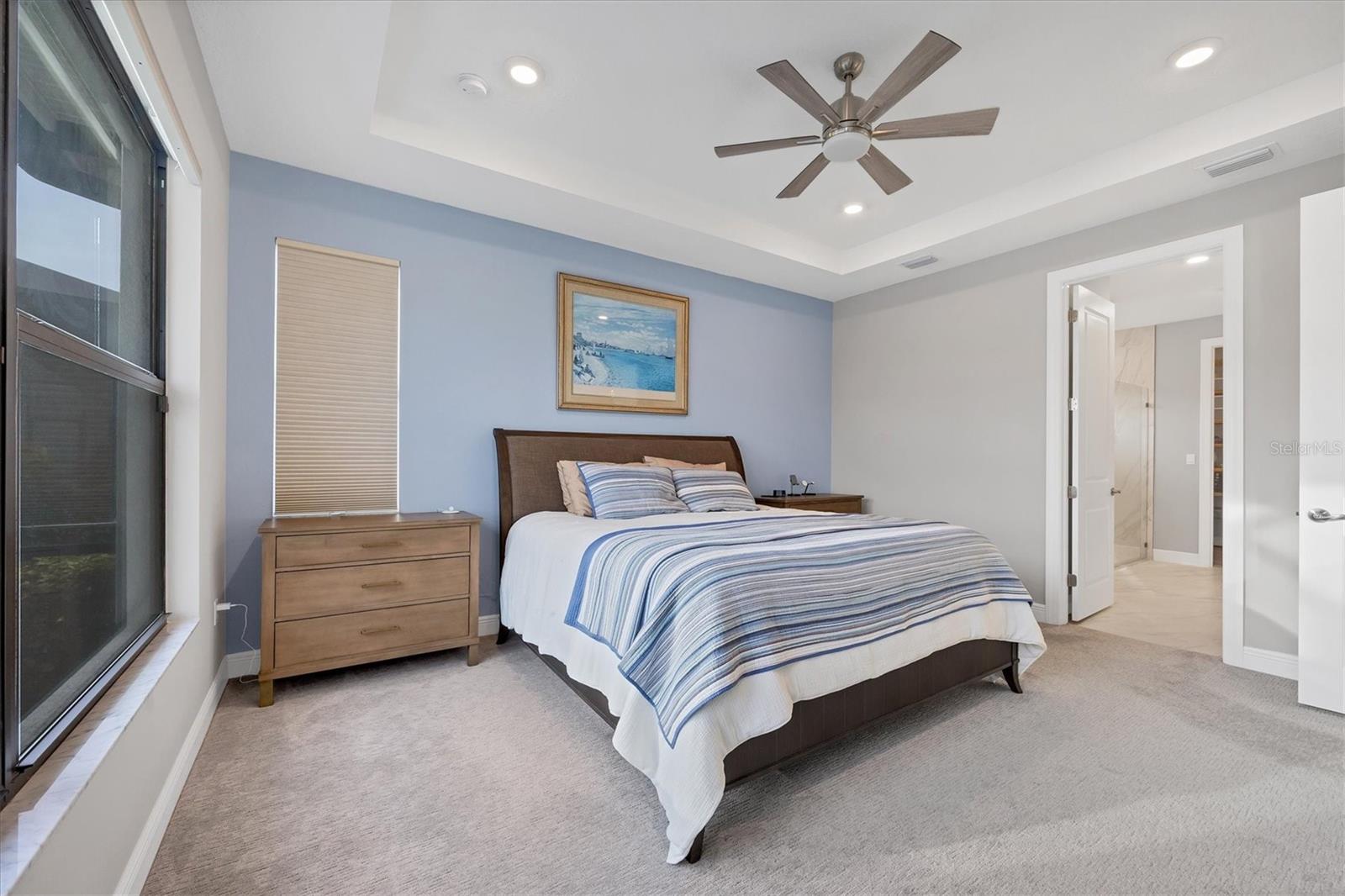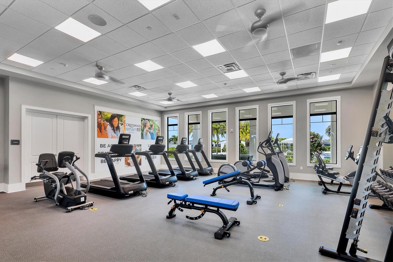 Pristinely upgraded and lightly lived in this gorgeous 3 bedroom, 3 bath, plus custom built-in executive office Fiesta floor plan by Kolter Homes offers a truly luxurious, yet functional home in the award winning, 55+ community of Cresswind in Lakewood Ranch! What makes this home special and different from the rest...it's perfectly situated on one of the largest homesites with spectacular panoramic lake views, and gorgeous sunsets. Key unique elements of this fabulous home include a WHOLE HOUSE GENERATOR for your peace of mind and comfort, beautiful resort style pool with waterfall feature, an 8-foot fire pit for ambiance, panoramic screening and paver decking on the lanai. Throughout the home you will find upgraded quartz and granite counters, upgraded cabinetry and hardware, upgraded flooring in all areas, solid wood custom built-in closets in every room including the pantry, and audio and video security cameras with central control panel. The spacious kitchen boasts upgraded GE Profile stainless steel appliances and Cambria quartz countertops with an extra-large island for entertaining and cooking ease! In addition, the kitchen features full-height backsplash, soft close drawers and cabinets with pull-out drawers. The spa like master suite boasts elegant granite countertops with contrasting cabinetry and granite countertops in secondary baths and laundry room. Other notable upgrades and features include a 4-foot extended garage with custom shelving for more storage space, epoxy floor coating and in the yard additional landscape and lush palms were added with lovely landscape lighting. Cresswind is an amenity rich, luxurious 55+ community situated on 250+ acres that offers an amazing lifestyle with endless possibilities. Engage in a multitude of activities tailored to suit your active lifestyle, from invigorating fitness classes to engaging social events. Outdoor amenities include pickleball & tennis courts, walking trails, resort-style pool and hot tub, resistance pool, event lawn with food trucks and band gazebo, bocce courts, outdoor social areas, dog park and more. This pet-friendly community features a resident-exclusive clubhouse overseen by a full-time lifestyle director with a multi-purpose event and social space, SmartFit/EGym training center, yoga studio, art studio with ceramics, card rooms, and various social clubs. Your best life awaits you in this amazing community and spectacular home!