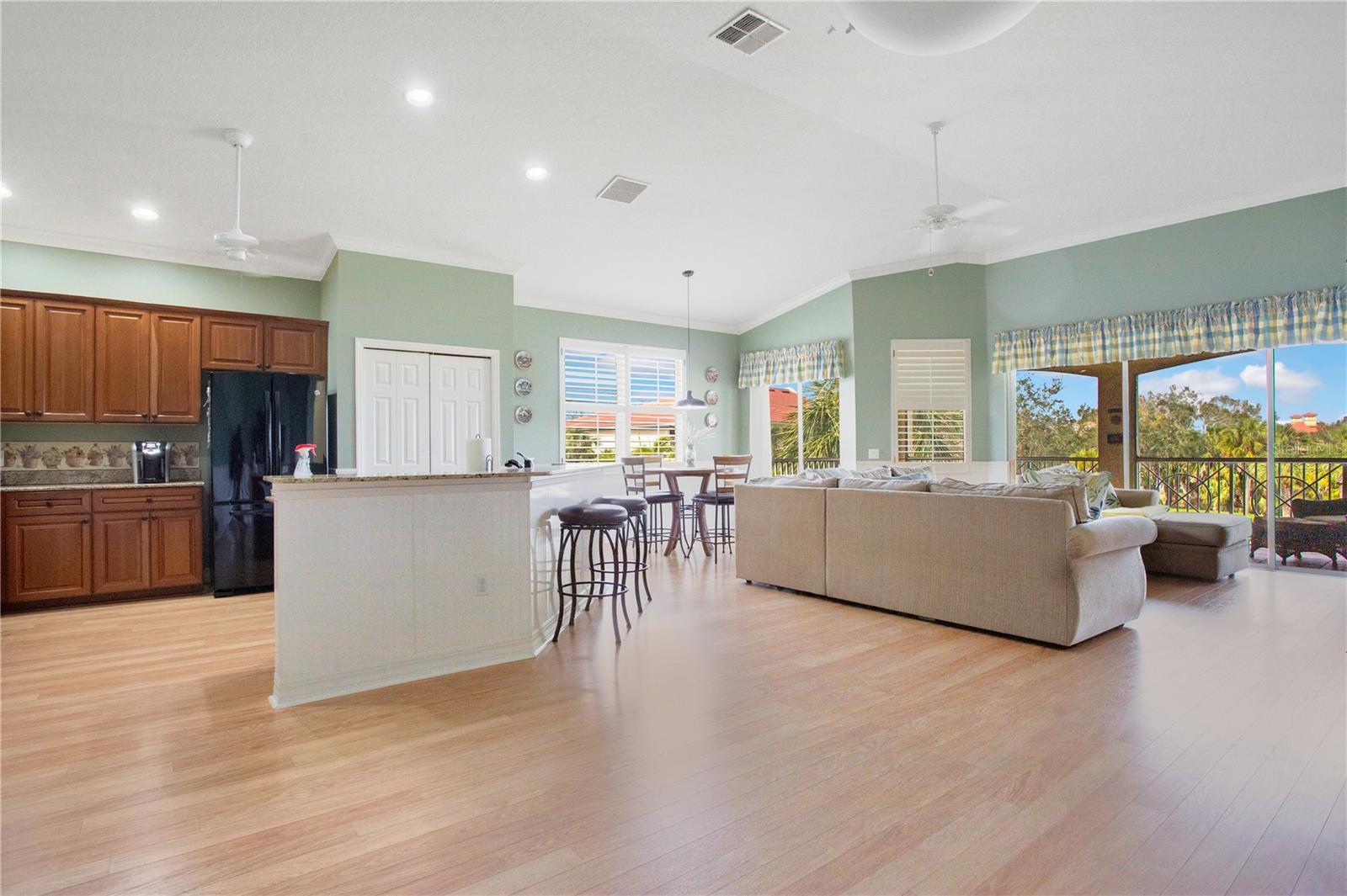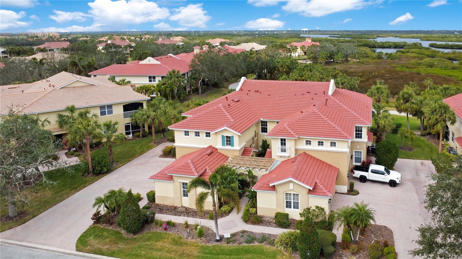 This exceptional condominium offers a stunning view of the Manatee River, situated within the renowned Waterlefe Golf and River Club. Waterlefe is an unparalleled golfing and boating community located on the Manatee River in the heart of Manatee County, Florida. The community boasts a championship-level 18-hole golf course, private marina, clubhouse with bar and restaurant, fitness center, junior Olympic pool, tiki bar, grille room (second bar and restaurant), full pro shop, professional golf instruction, and much more. This expansive second-floor unit is among the largest available in Waterlefe and features a new roof installed in 2023, new balcony screens, and exceptional cleanliness. The oversized tiled outdoor living area provides a breathtaking view of the golf course and the Manatee River. Inside, the open floor plan integrates the kitchen, dining, and living areas and is accentuated by 12-foot ceilings. The property includes three spacious bedrooms with large walk-in closets, a separate den/office, and two full bathrooms, all encompassed within a thoughtfully designed layout. The main living area features tile and hardwood flooring, while the kitchen is equipped with solid cherry cabinets and granite countertops, offering ample cabinet space and a pantry for extra storage. Although the current appliances are in good working order, the seller is providing a $5,000 credit towards appliances of your choice and will also assist with closing costs. We invite you to visit this remarkable property; you will be pleased with what you find.