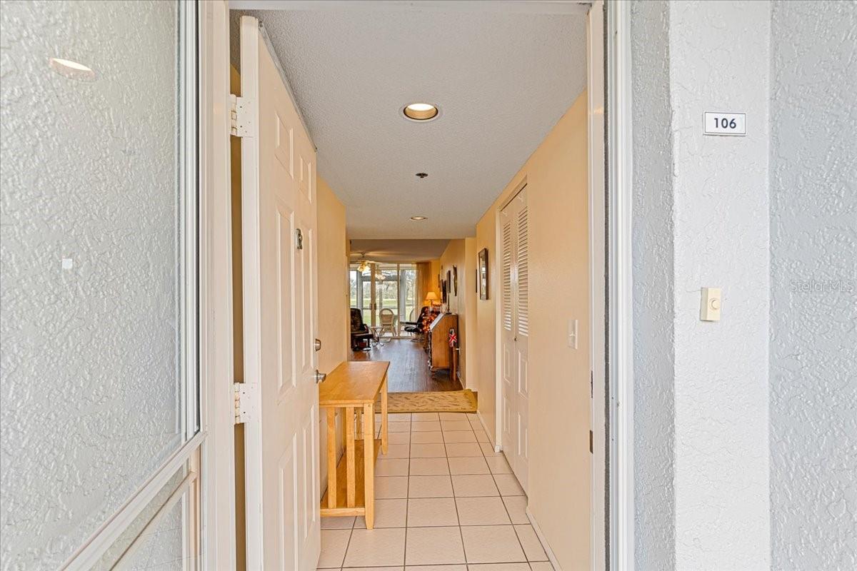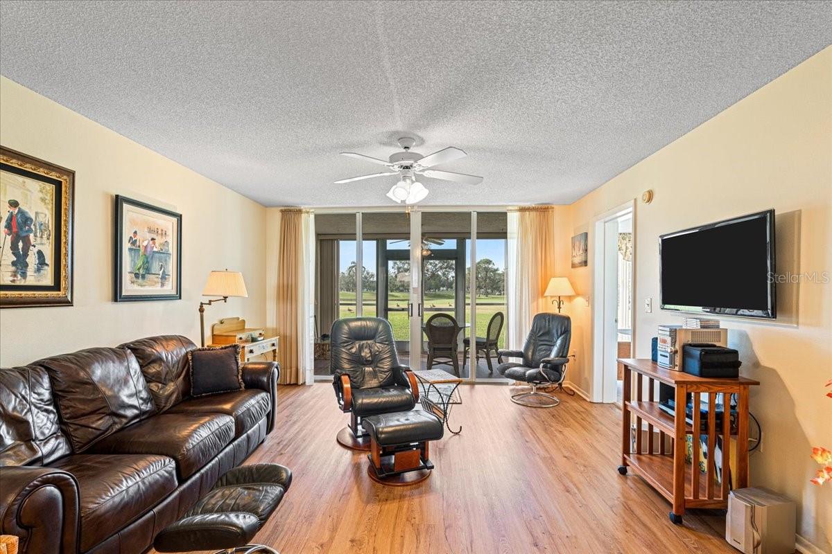 This beautifully maintained 2-bedroom, 2-bathroom condo is located in The Links at Pinebrook, a German-designed, hurricane-resistant building in Zone D—no evacuation required! The building has remained unaffected by past hurricanes, with no leaks or damage. Offering low monthly fees, this unit provides an incredible view of the 6th fairway and green at Pinebrook Ironwood Golf Club. Spanning 1,280 sq ft, this spacious condo features an open and comfortable layout with a large living room, dining area, kitchen, utility room, and an enclosed Florida sunroom. Enjoy your morning coffee or evening sunsets in the sunroom, overlooking the lush fairway. The eat-in kitchen is a chef's dream with ample cabinetry, upgraded appliances, and a convenient pass-through to the dining area. Vinyl plank lifetime flooring enhances the dining, living room, and lanai areas, adding both durability and style. The master suite offers peaceful fairway views, a walk-in closet, and an upgraded vanity in the bathroom. The second bedroom is equally spacious with a large, shelved closet, making it perfect for guests or as a home office. A large utility room provides excellent storage and extra cabinetry. Recent upgrades include a new roof installed in the summer of 2023. This condo also offers maintenance-free exteriors and covered parking just steps from your front door. The Links at Pinebrook offers an impressive range of amenities, including a community pool, spa, and partially shaded pool deck with an enclosed screened room, grill, and dining area. Enjoy leisure activities with access to tennis, pickleball, shuffleboard courts, a billiards room, a fully equipped exercise facility, and a workshop with tools. Pinebrook also features an 18-hole golf course, voted the #1 course in Bradenton in 2007, which is open to the public. Conveniently located near US-301, shopping, dining, and Sarasota/Bradenton International Airport, this condo is just minutes from some of Southwest Florida's most beautiful beaches, including Anna Maria Island. This is the perfect place for anyone looking for a comfortable, low-maintenance lifestyle with easy access to everything this area has to provide.