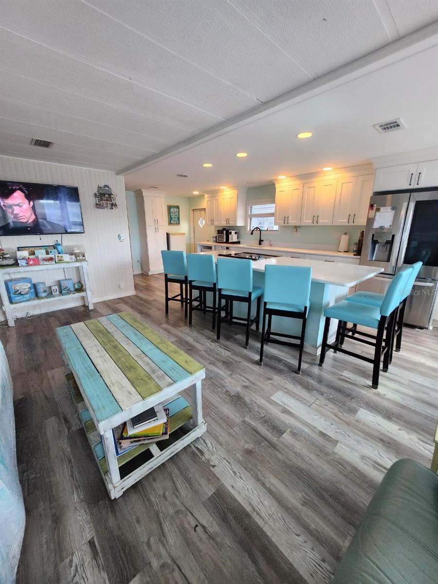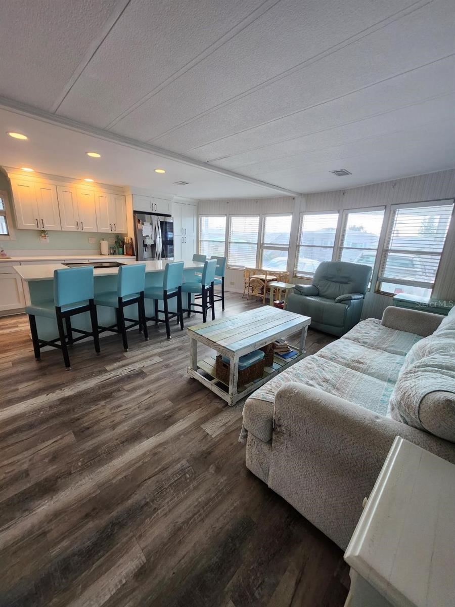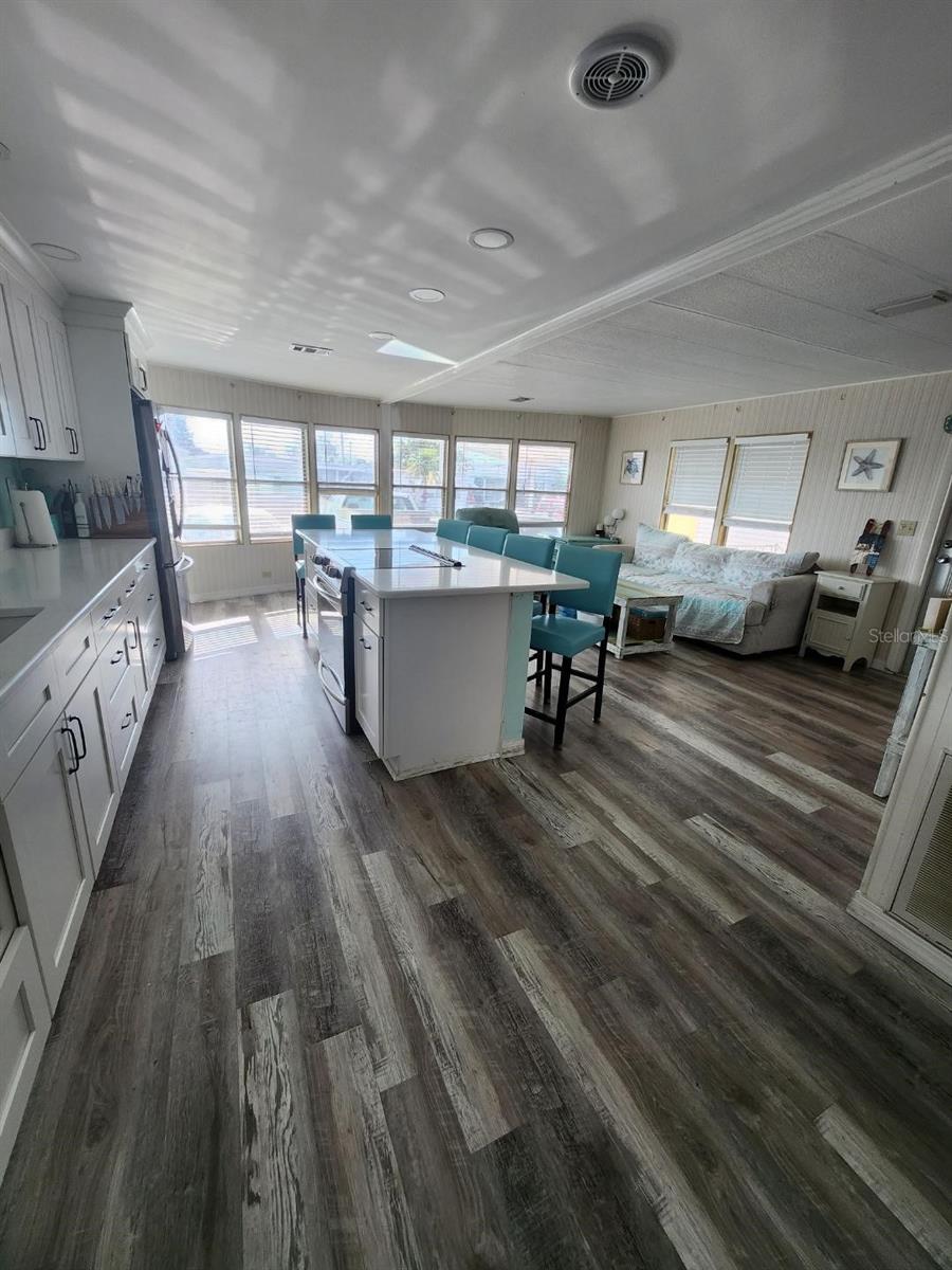Beautifully updated entertainer's kitchen in this 2 Bedroom, 2 Bath Manufactured Home in the highly desired, active 55+ Trailer Estates waterfront community. Open concept living, dining and kitchen area allow your guests to comfortably gather around the 8.5' island with quartz countertops, new cabinets and stainless steel appliances. Perfect for family holidays and Sunday football gatherings! Large sunny enclosed porch is currently used as a craft space, but could make a relaxing Florida Room to enjoy your morning coffee and read a good book. Newly installed subfloors and luxury vinyl flooring throughout the interior of the home. Spacious Primary Bedroom with good closet space, built-in drawers and ensuite bath, Laundry/utility room. New water heater; AC 4 years old. Three storage sheds. You own the land. Boaters have direct access to Sarasota Bay from the Marina. Enjoy the large, heated community pool, hot tub, gym and wood shop. The community buzzes with pickleball, shuffleboard, kayaking, horseshoes, bocce, dancing and more. A US Post Office on site. 10 minutes to the SRQ Airport. Convenient to shopping, restaurants, the Arts and everything in Bradenton/Sarasota. Sold unfurnished. Bring offers!