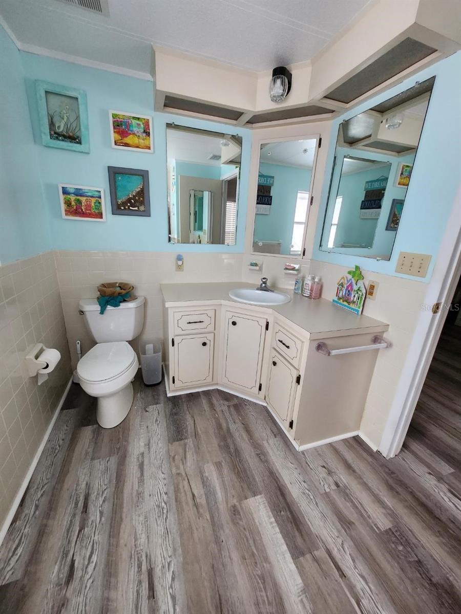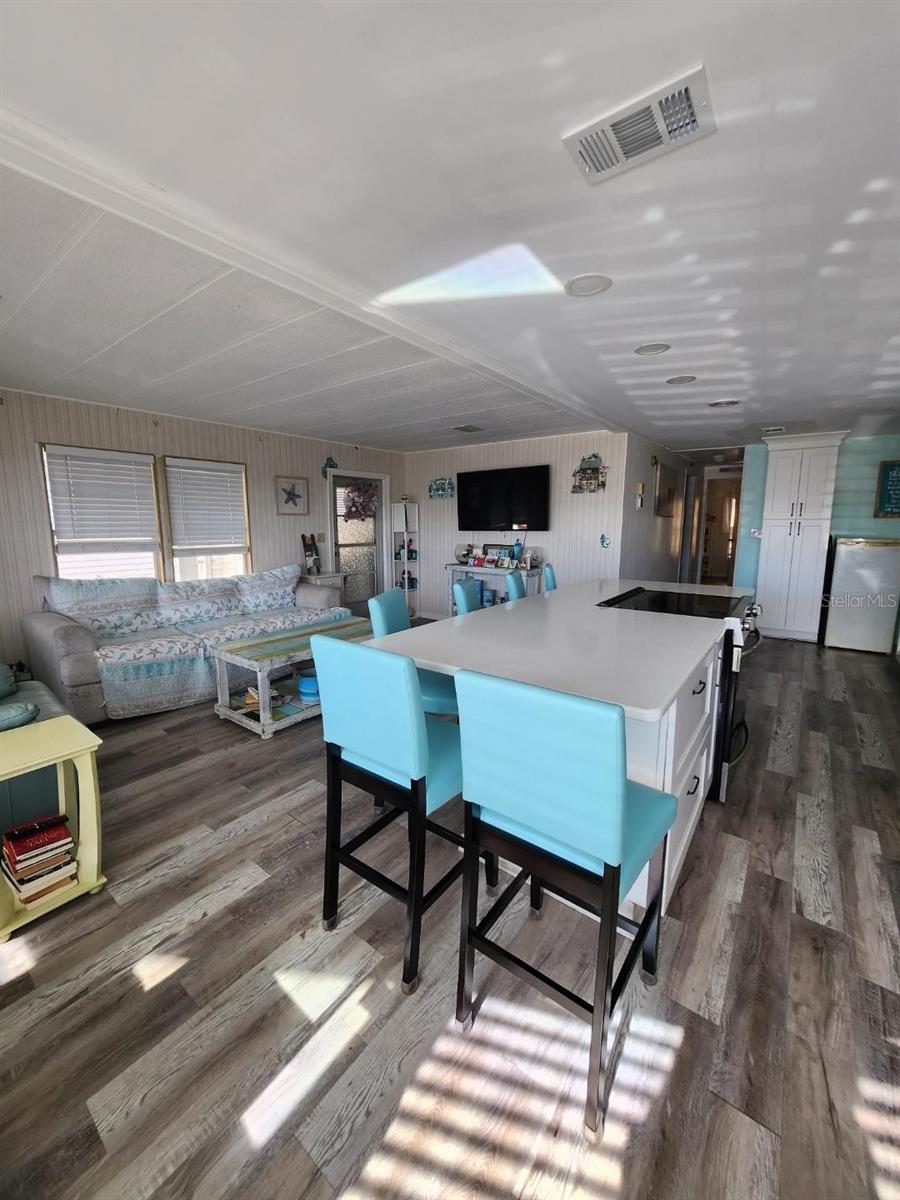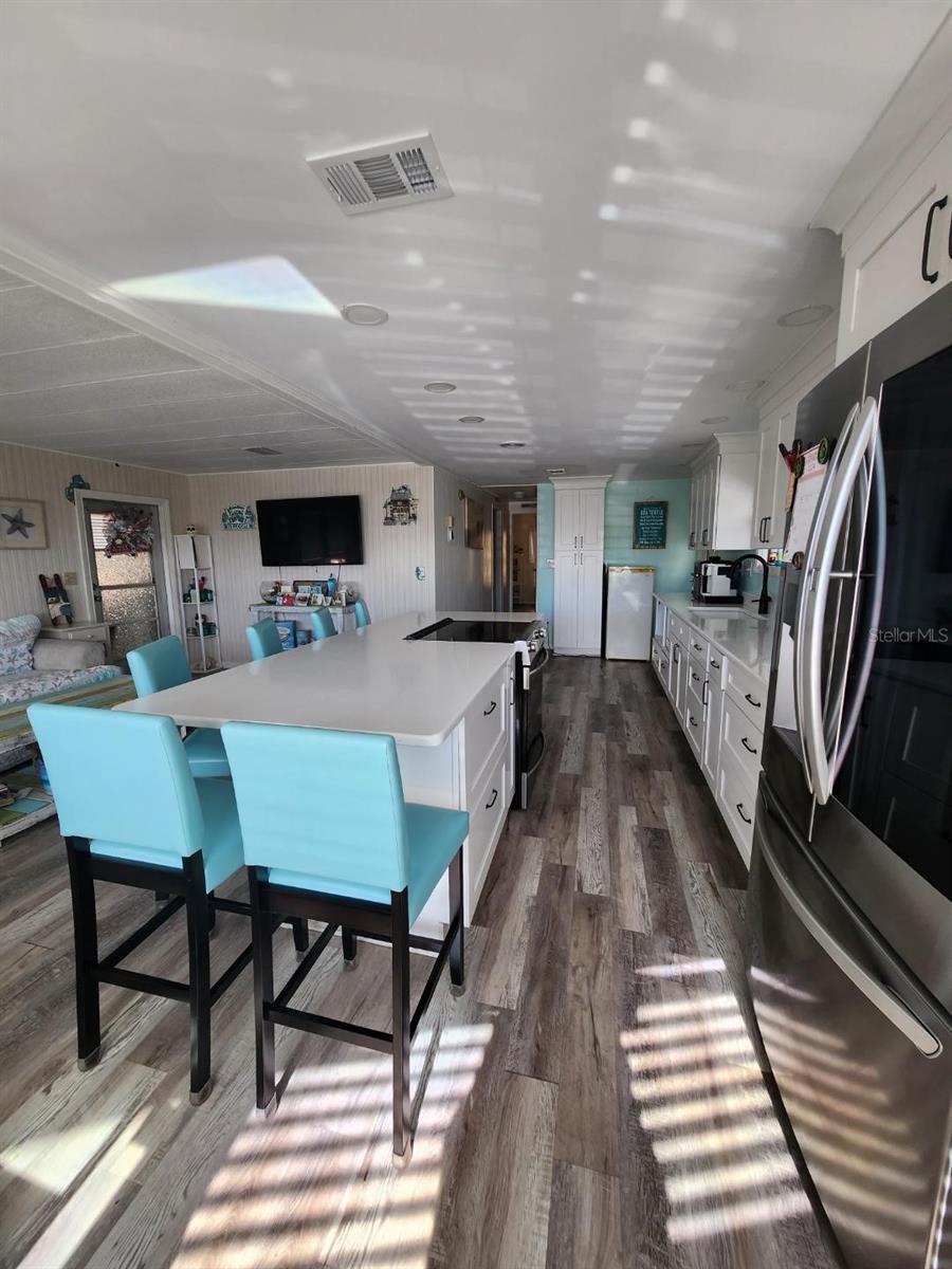 Beautifully updated entertainer's kitchen in this 2 Bedroom, 2 Bath Manufactured Home in the highly desired, active 55+ Trailer Estates waterfront community. Open concept living, dining and kitchen area allow your guests to comfortably gather around the 8.5' island with quartz countertops, new cabinets and stainless steel appliances. Perfect for family holidays and Sunday football gatherings! Large sunny enclosed porch is currently used as a craft space, but could make a relaxing Florida Room to enjoy your morning coffee and read a good book. Newly installed subfloors and luxury vinyl flooring throughout the interior of the home. Spacious Primary Bedroom with good closet space, built-in drawers and ensuite bath, Laundry/utility room. New water heater; AC 4 years old. Three storage sheds. You own the land. Boaters have direct access to Sarasota Bay from the Marina. Enjoy the large, heated community pool, hot tub, gym and wood shop. The community buzzes with pickleball, shuffleboard, kayaking, horseshoes, bocce, dancing and more. A US Post Office on site. 10 minutes to the SRQ Airport. Convenient to shopping, restaurants, the Arts and everything in Bradenton/Sarasota. Sold unfurnished. Bring offers!