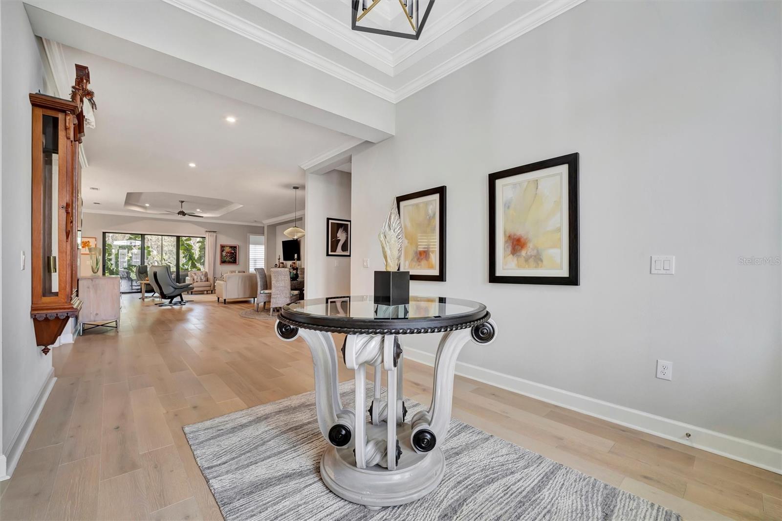 Florida luxury living at its finest! This stunning 3 bed/3 bath home is located on a conservation lot with a fenced back yard in the desirable community of Esplanade at Azario Lake offering a blend of comfort, style and luxury. This beautiful Palazzio model is situated in a tranquil neighborhood with easy access to the area’s vibrant amenities, making it ideal for seeking both convenience and serene living. This well-maintained gated community boasts a spacious, open-concept layout that is perfect for both family living and entertainment. As you enter the home, you are welcomed into a bright and airy foyer with soaring ceiling, large hurricane impact sliders and an abundance of natural light. The modern kitchen is a chef’s dream with top-of-the-line appliances, an extensive quartz island, gas cook top, walk-in pantry, and an abundance of storage making it ideal for meal preparation and entertainment. The home includes a luxurious master suite with a huge walk-in closet and en-suite bathroom with an amazing shower. All rooms are designed with high-end finishes, offering both functionality and style. The den offers additional space with flexible options such as an office or creative space for hobbies. The home also includes a high-end water treatment system and all lighting was upgraded after closing. The home’s extended lanai provides a perfect space for relaxation and entertainment. The lanai is plumbed for an outdoor kitchen and wired for TV making it ideal for outdoor activities and enjoying Florida’s beautiful weather. The backyard is perfect for adding a pool. Living in Esplanade at Azario Lake offers residents access to world-class amenities such as golf, pickleball, tennis, Bahama bar, resort style pool, and a culinary arts building offering on-site world class dining. This home is not just a place to live, but an exceptional lifestyle to experience.