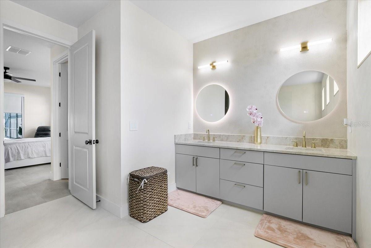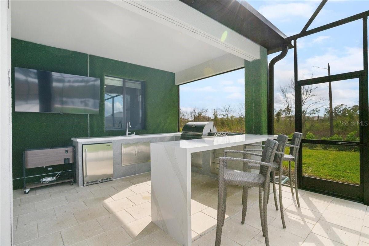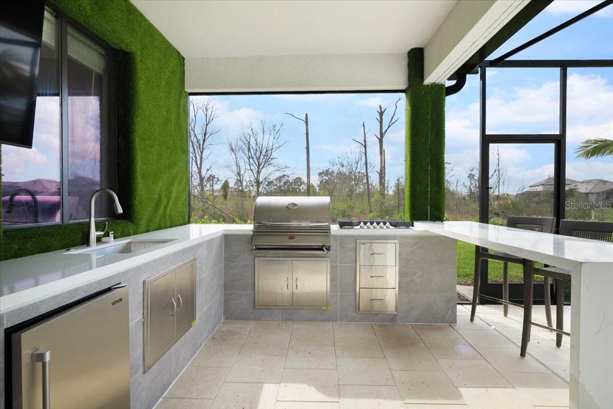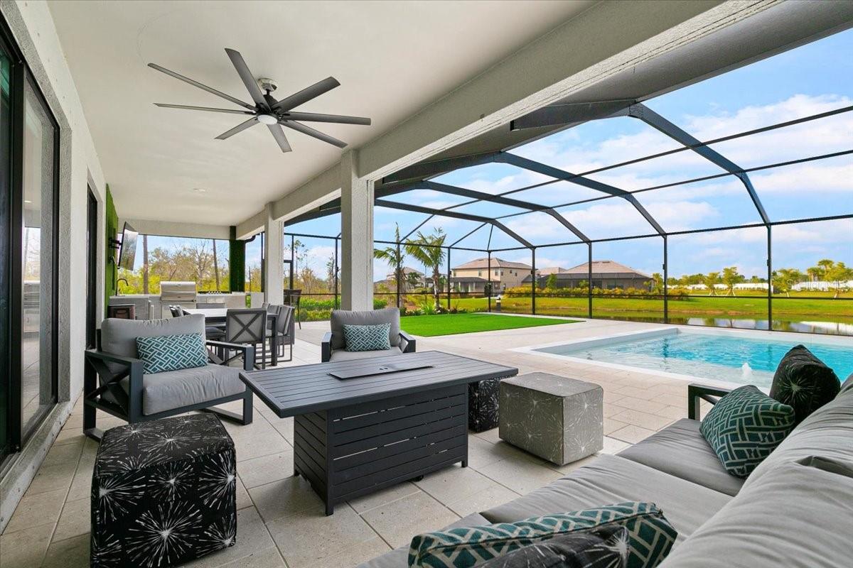 A newly customized home where luxury meets modern day style is for sale in the highly desired community of Lorraine Lakes in Lakewood Ranch. This 5 bedrooms, 4.5 bathrooms, den, office and 3 car garage is just a little over a year old. This gem is located on a cul-de-sac on a semi-private lot next to the preserve overlooking the pond in the rear. The house’s interior is 100% customized. The floors are tile throughout the entirety of the home. Upon entering this beauty, you encounter a 22’ high open foyer leading into the great room with a design made of natural stone. The kitchen overlooks the open great room with an 8-burner gas cooktop, wine cooler, soft closing ceiling height natural wood cabinet doors and drawers, with an extensive amount of pantry space and a touchscreen refrigerator with views to the lanai and pond. Off the kitchen there is a half bathroom and a laundry room. To the right of the great room you’ll have a second master bedroom with sliding doors, walk-in closet, and full bath equipped with double sink and walk-in shower. The stair railing leading to the upper floor are of glass giving it an open space feel. The upstairs has laundry room for convenience. To the right you have the first master bedroom with 3 walk-in closets, and a double shower with bench and his and hers sinks. There are 3 additional bedrooms with built in closets and 2 full baths. The house has Hunter Douglas motorized window treatments throughout. The exterior has a customized outdoor kitchen with sink, BBQ, cooktop and a mini fridge. The 60’ wide spacious lanai is ideal for entertainment and overlooks the salted custom-made pool, spa with color changing lights and heater. The house includes a water filtration system and a separate filtration for the sprinklers. The amenity center offers a restaurant, pickle ball court, tennis court, basketball indoor and outdoor, gym, 2 pools, splash pad for kids and a playground.
