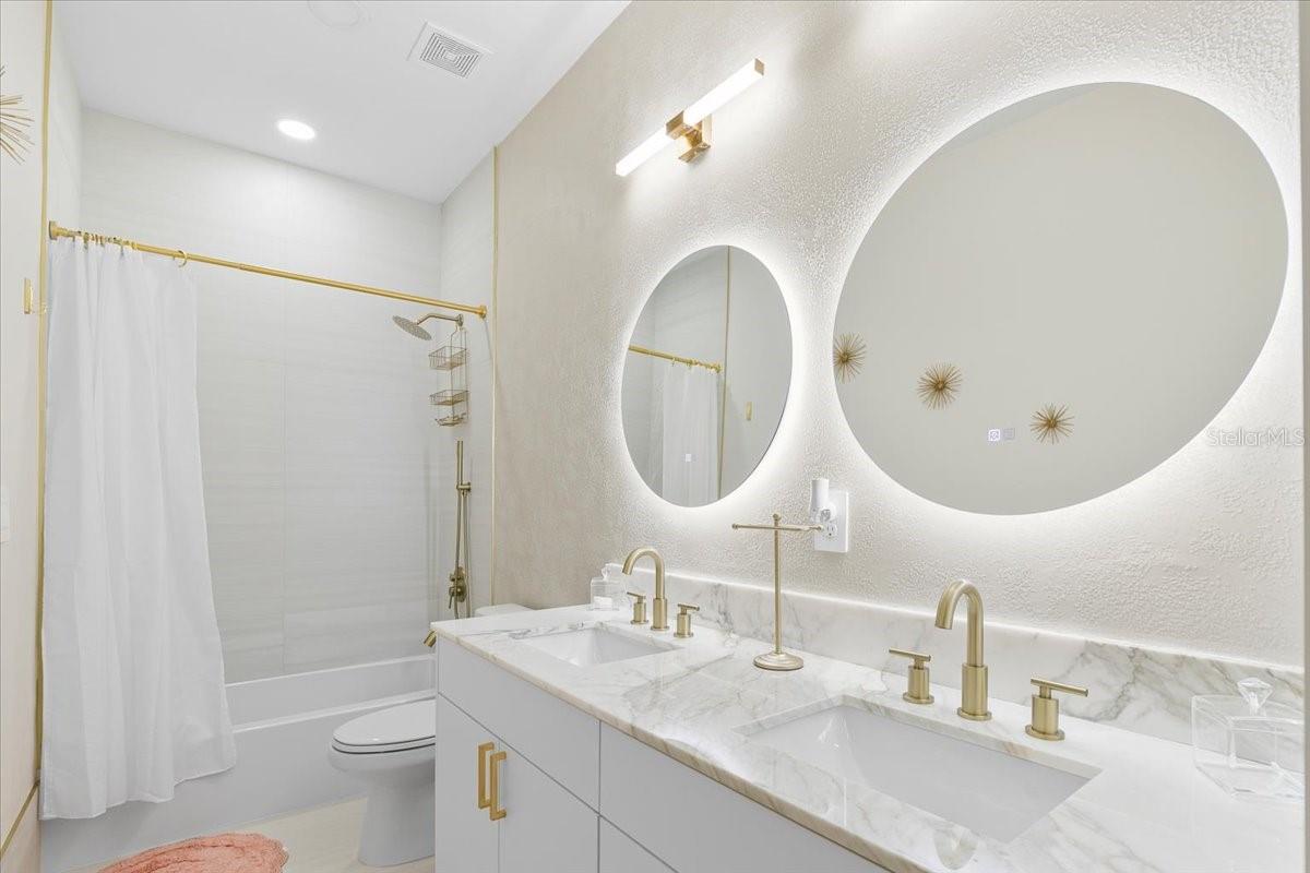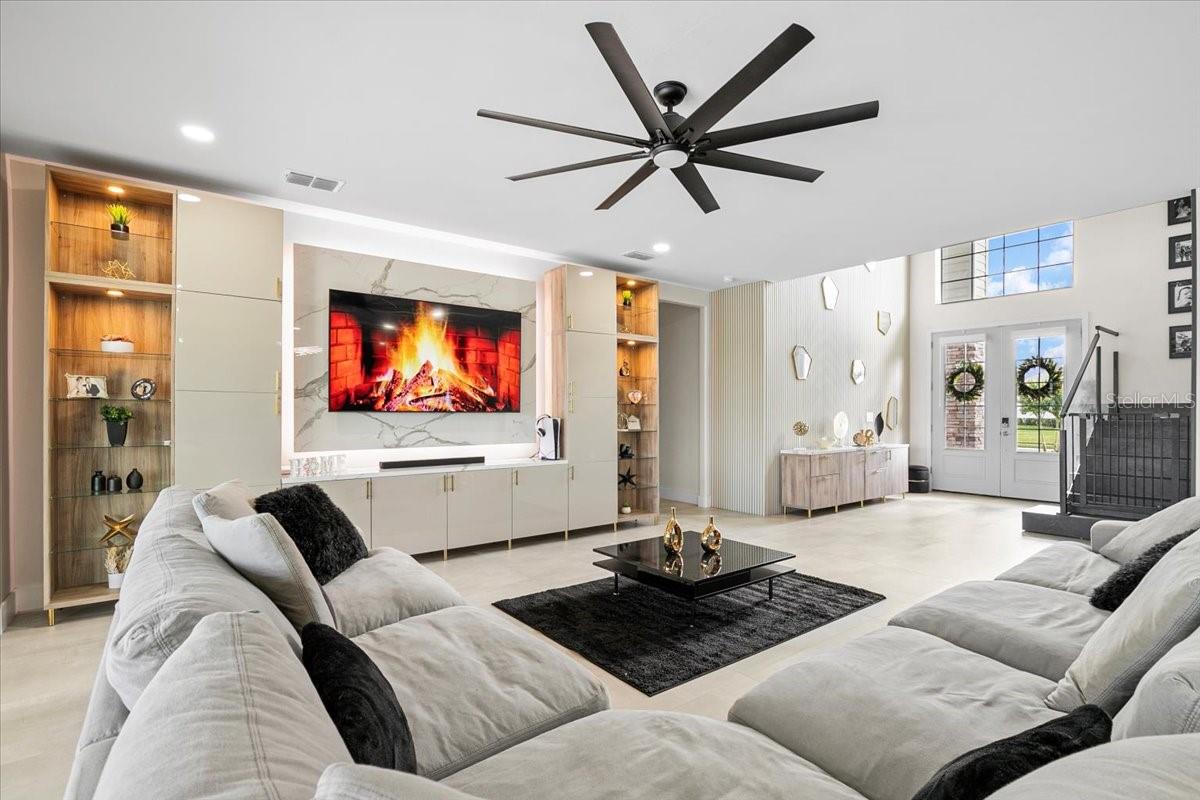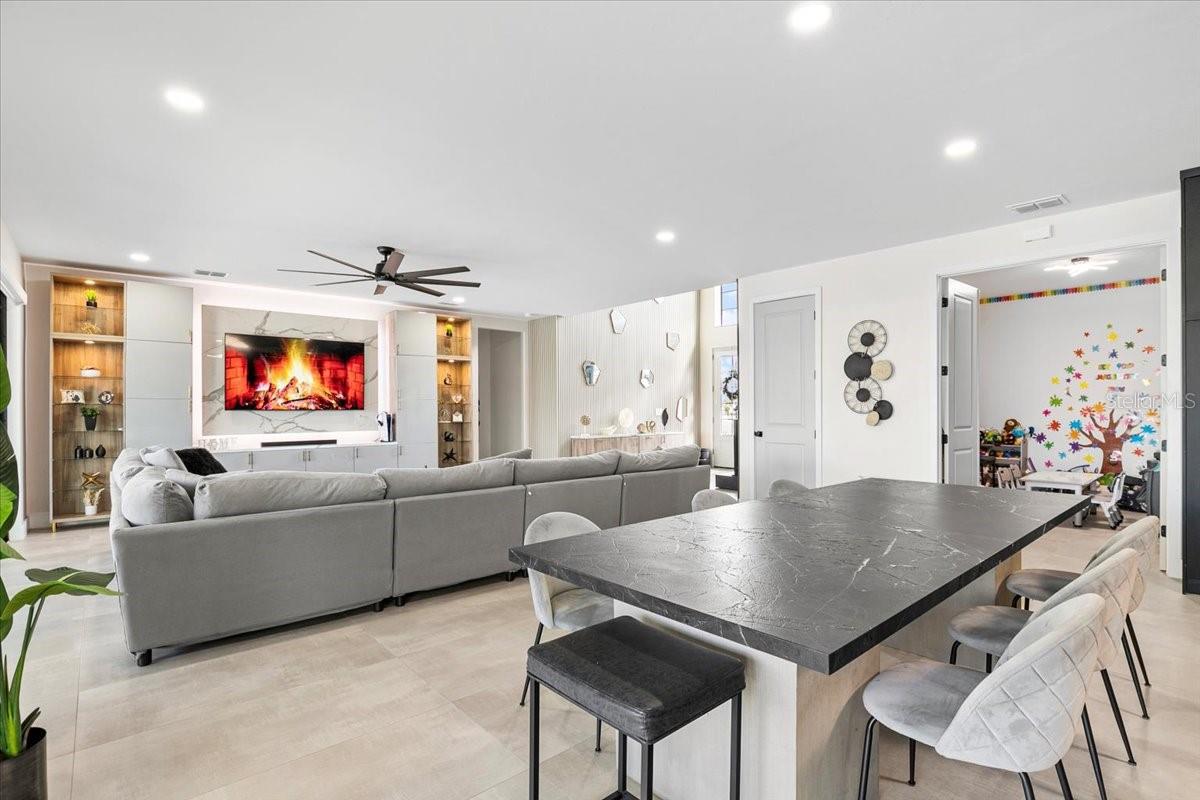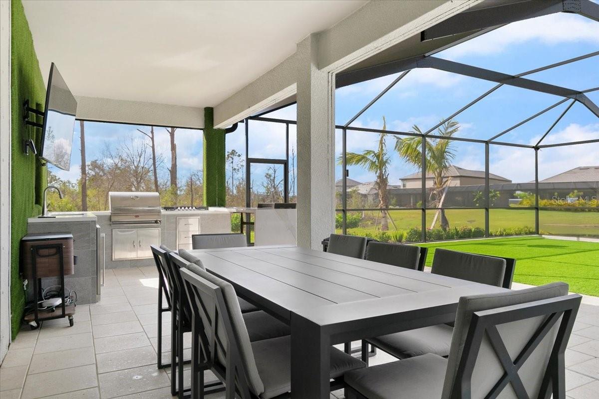 A newly customized home where luxury meets modern day style is for sale in the highly desired community of Lorraine Lakes in Lakewood Ranch. This 5 bedrooms, 4.5 bathrooms, den, office and 3 car garage is just a little over a year old. This gem is located on a cul-de-sac on a semi-private lot next to the preserve overlooking the pond in the rear. The house’s interior is 100% customized. The floors are tile throughout the entirety of the home. Upon entering this beauty, you encounter a 22’ high open foyer leading into the great room with a design made of natural stone. The kitchen overlooks the open great room with an 8-burner gas cooktop, wine cooler, soft closing ceiling height natural wood cabinet doors and drawers, with an extensive amount of pantry space and a touchscreen refrigerator with views to the lanai and pond. Off the kitchen there is a half bathroom and a laundry room. To the right of the great room you’ll have a second master bedroom with sliding doors, walk-in closet, and full bath equipped with double sink and walk-in shower. The stair railing leading to the upper floor are of glass giving it an open space feel. The upstairs has laundry room for convenience. To the right you have the first master bedroom with 3 walk-in closets, and a double shower with bench and his and hers sinks. There are 3 additional bedrooms with built in closets and 2 full baths. The house has Hunter Douglas motorized window treatments throughout. The exterior has a customized outdoor kitchen with sink, BBQ, cooktop and a mini fridge. The 60’ wide spacious lanai is ideal for entertainment and overlooks the salted custom-made pool, spa with color changing lights and heater. The house includes a water filtration system and a separate filtration for the sprinklers. The amenity center offers a restaurant, pickle ball court, tennis court, basketball indoor and outdoor, gym, 2 pools, splash pad for kids and a playground.
