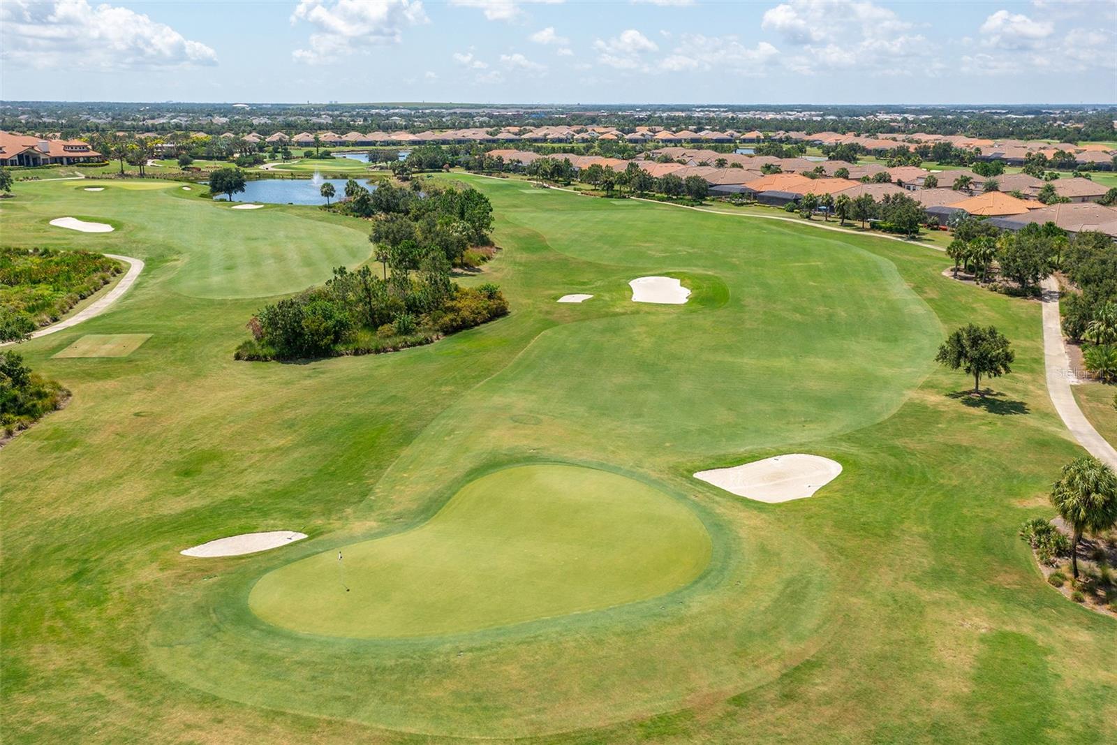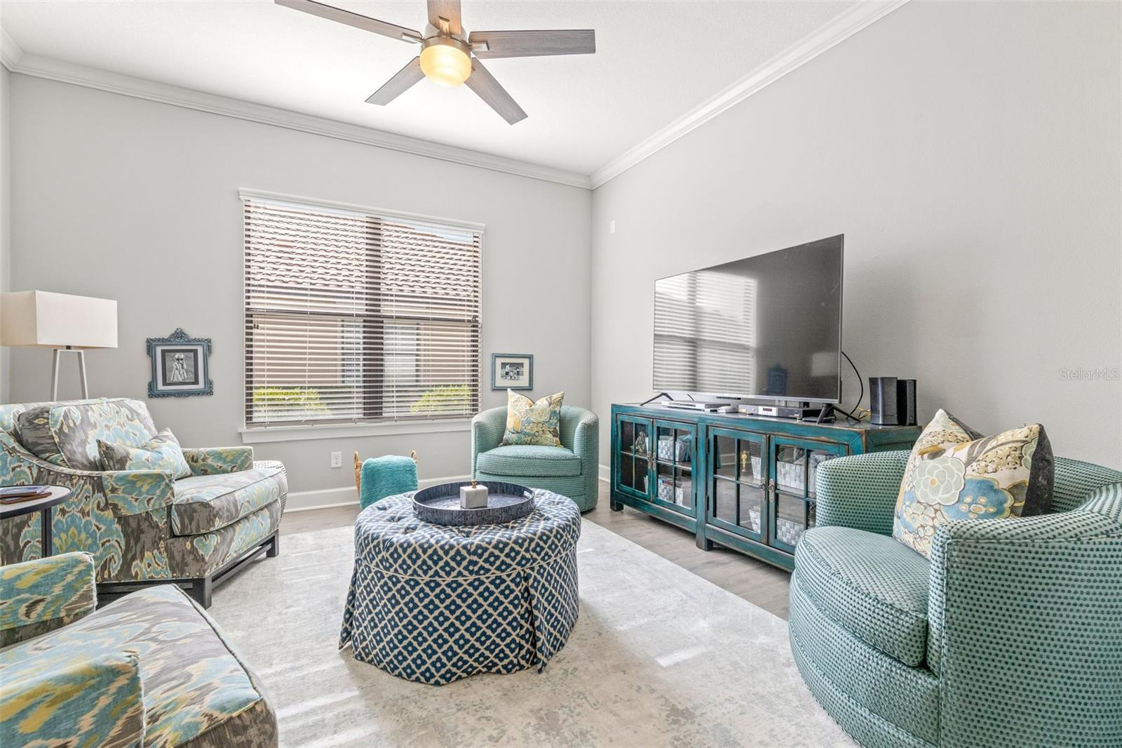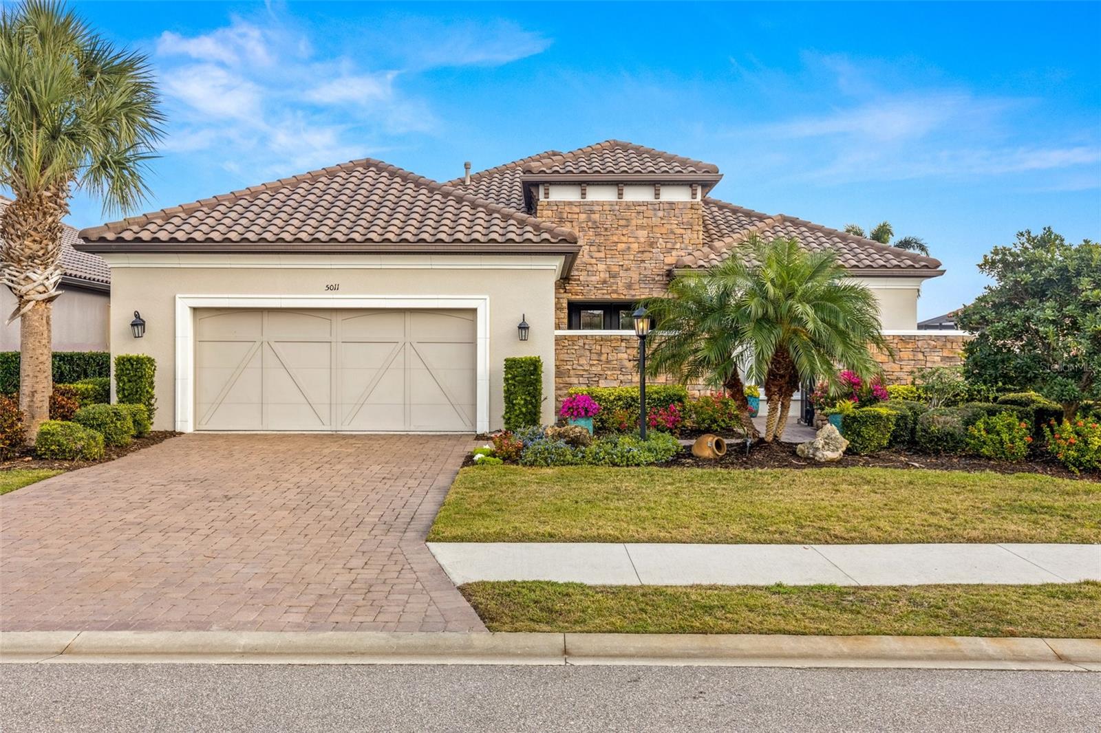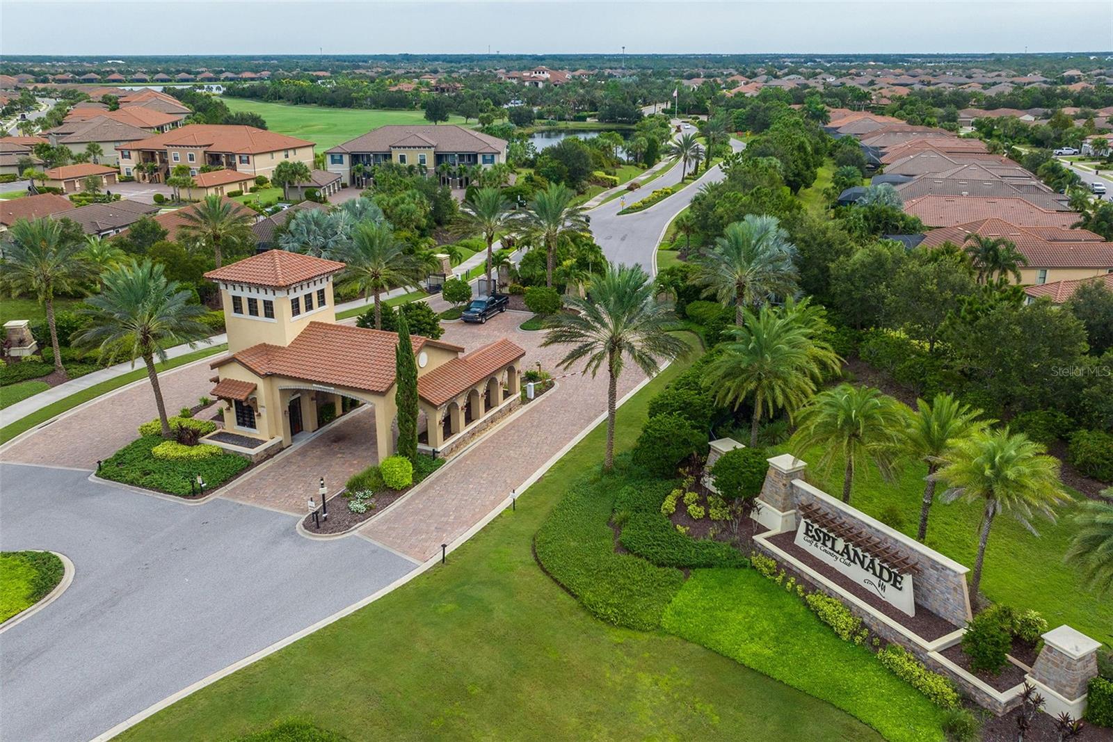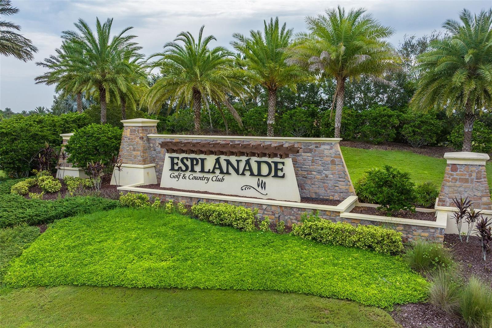 This stunning golf deeded home offers over 3,000 square feet of bright, airy living space in the amenity-rich Esplanade Golf and Country Club, nestled in the heart of Lakewood Ranch. This popular Pallazio model is designed with an open floor plan and features three spacious bedrooms, three full bathrooms, a versatile den/office, and a gourmet kitchen. The large lanai is the perfect setting for outdoor living and a place to enjoy a beautiful sunrise. Thoughtfully upgraded, this home boasts high tray ceilings, elegant crown molding, and modern tech enhancements like integrated wiring for speakers and security cameras. A BRAND NEW HVAC system was installed in March 2025. The three-car garage includes a unique tandem area that has been enclosed as a functional workroom but can easily be converted back to its original open layout. For peace of mind during hurricane season, high impact roll down shades have been installed for the lanai and each of the side and back windows have been fitted with high impact kevlar material that is easy to install. The front door, front window and garage door are high impact rated on their own. All this AND located in a non-evacuation zone! Esplanade is resort-style living at its finest! Not only does it have an incredible 18 hole golf course, Esplanade offers an unmatched lifestyle with an array of world-class amenities, including: • multiple workout spaces • resort-style pools • The Bahama Bar, a tiki bar for casual dining and drinks • The Barrel House, a full-service restaurant • a dog park • a playground • tennis, pickleball, and bocce ball courts • and a fire pit for gathering and relaxation. Esplanade is ideally situated within Lakewood Ranch, one of the nation’s premier master-planned communities. Residents enjoy proximity to top-rated schools, an abundance of shopping opportunities, and high-end dining options. From boutique shops to fine restaurants, there’s something for everyone. With activities and amenities for all ages, this vibrant community provides an unparalleled lifestyle. This home is a perfect blend of comfort, style, and convenience. Don’t miss your chance to make it yours and experience the best of Esplanade living!