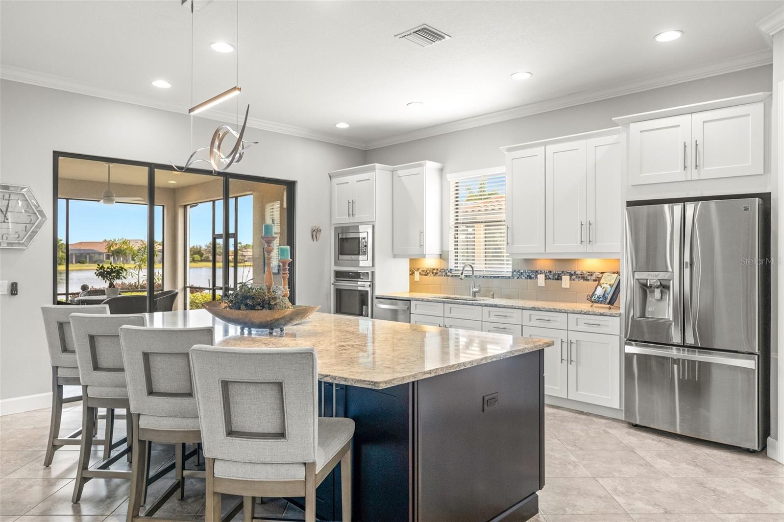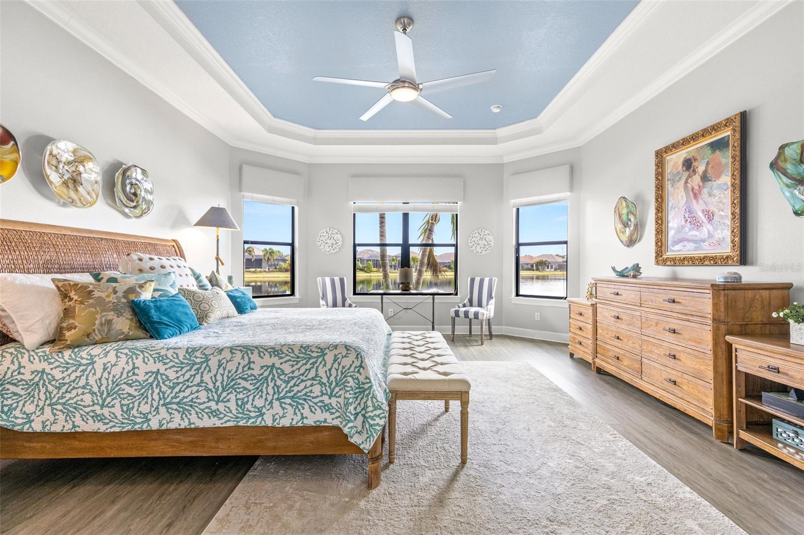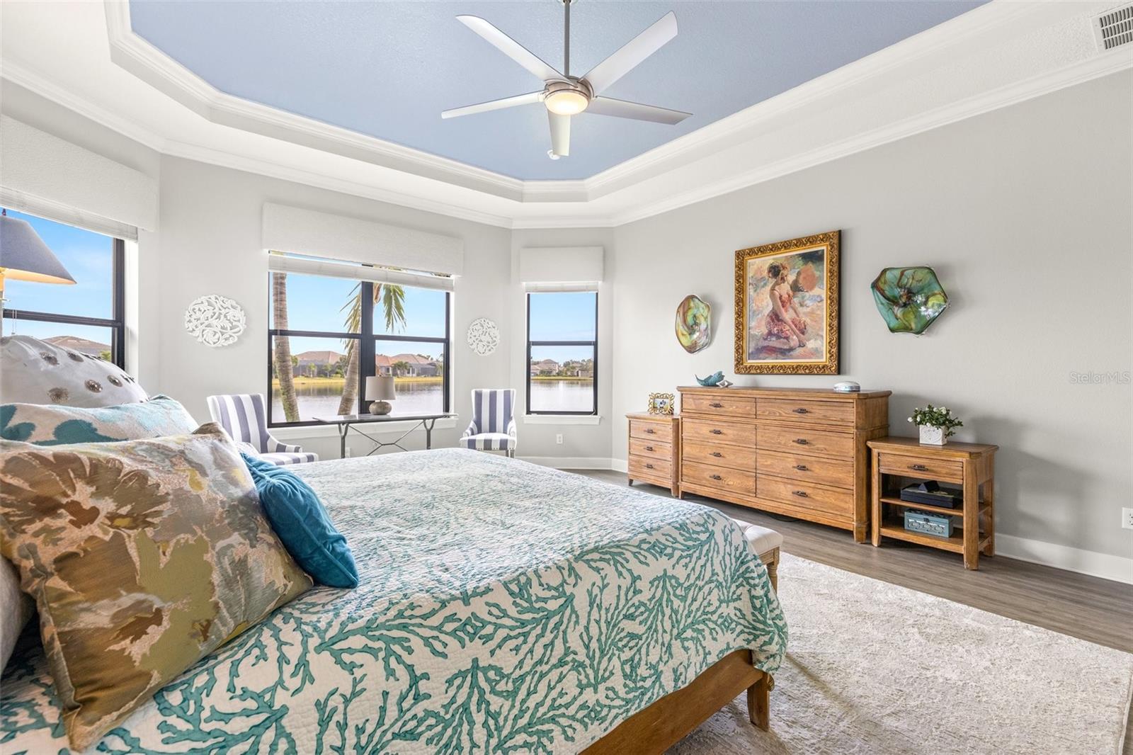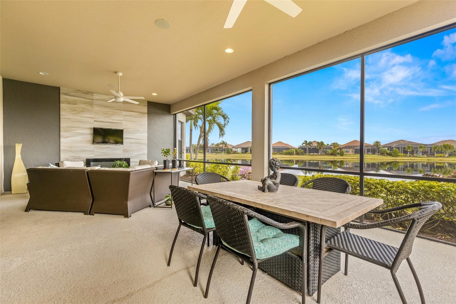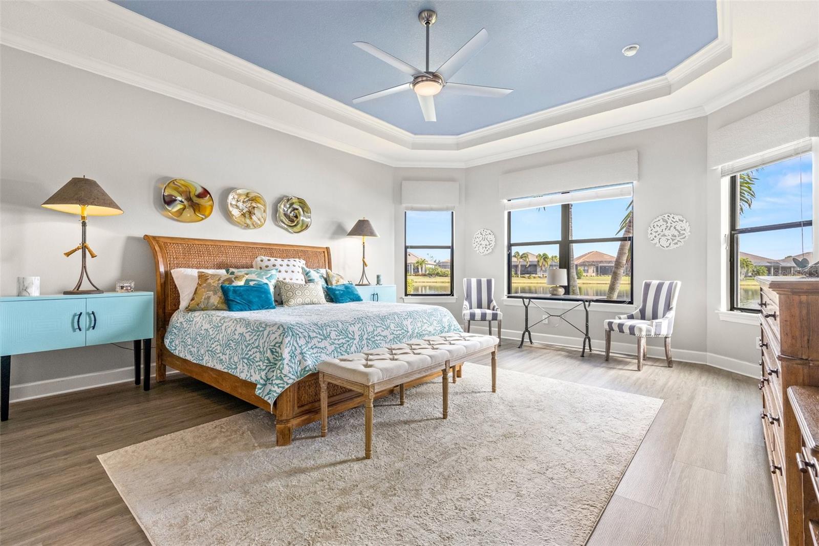 This stunning golf deeded home offers over 3,000 square feet of bright, airy living space in the amenity-rich Esplanade Golf and Country Club, nestled in the heart of Lakewood Ranch. This popular Pallazio model is designed with an open floor plan and features three spacious bedrooms, three full bathrooms, a versatile den/office, and a gourmet kitchen. The large lanai is the perfect setting for outdoor living and a place to enjoy a beautiful sunrise. Thoughtfully upgraded, this home boasts high tray ceilings, elegant crown molding, and modern tech enhancements like integrated wiring for speakers and security cameras. A BRAND NEW HVAC system was installed in March 2025. The three-car garage includes a unique tandem area that has been enclosed as a functional workroom but can easily be converted back to its original open layout. For peace of mind during hurricane season, high impact roll down shades have been installed for the lanai and each of the side and back windows have been fitted with high impact kevlar material that is easy to install. The front door, front window and garage door are high impact rated on their own. All this AND located in a non-evacuation zone! Esplanade is resort-style living at its finest! Not only does it have an incredible 18 hole golf course, Esplanade offers an unmatched lifestyle with an array of world-class amenities, including: • multiple workout spaces • resort-style pools • The Bahama Bar, a tiki bar for casual dining and drinks • The Barrel House, a full-service restaurant • a dog park • a playground • tennis, pickleball, and bocce ball courts • and a fire pit for gathering and relaxation. Esplanade is ideally situated within Lakewood Ranch, one of the nation’s premier master-planned communities. Residents enjoy proximity to top-rated schools, an abundance of shopping opportunities, and high-end dining options. From boutique shops to fine restaurants, there’s something for everyone. With activities and amenities for all ages, this vibrant community provides an unparalleled lifestyle. This home is a perfect blend of comfort, style, and convenience. Don’t miss your chance to make it yours and experience the best of Esplanade living!