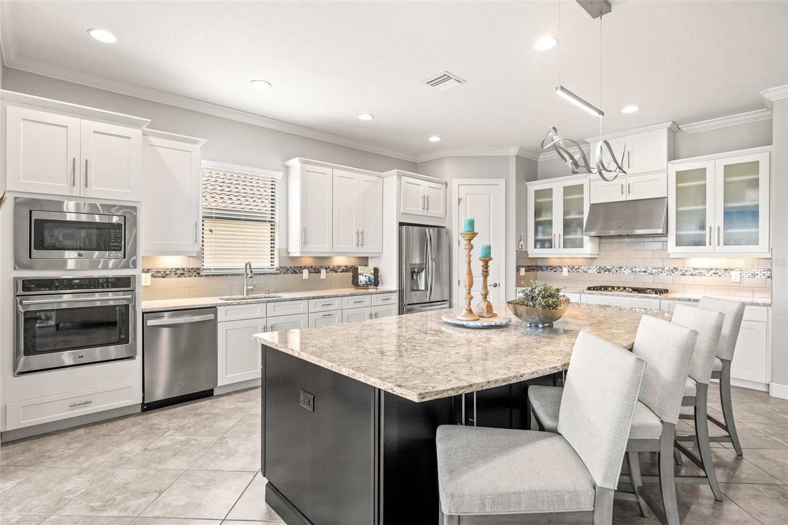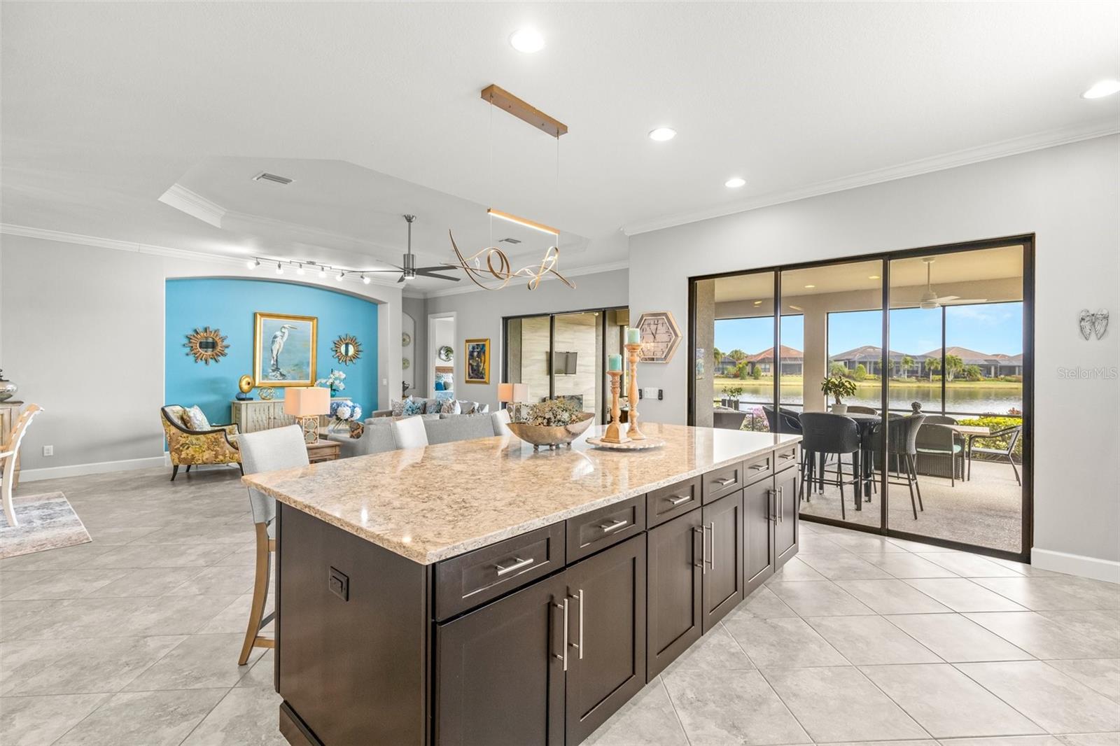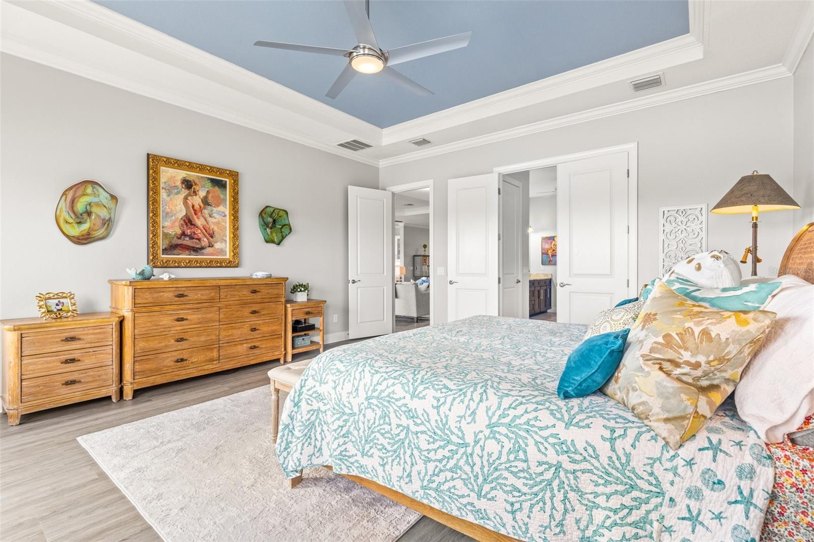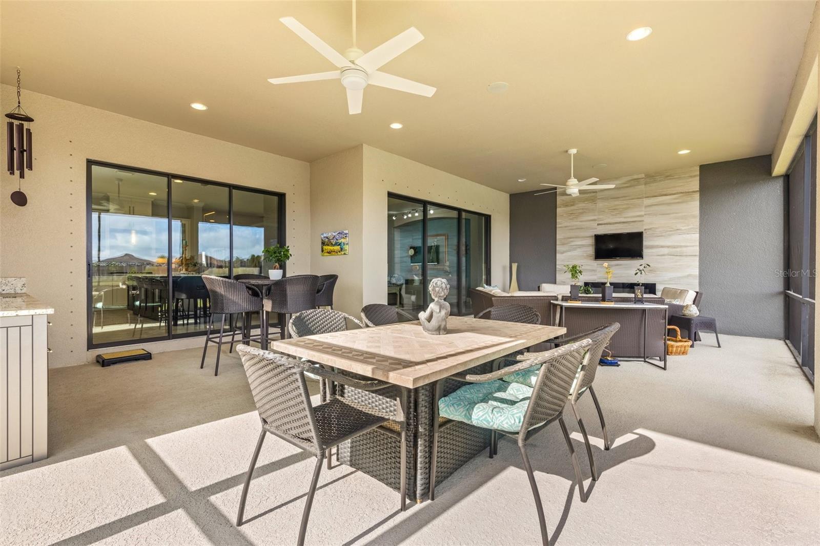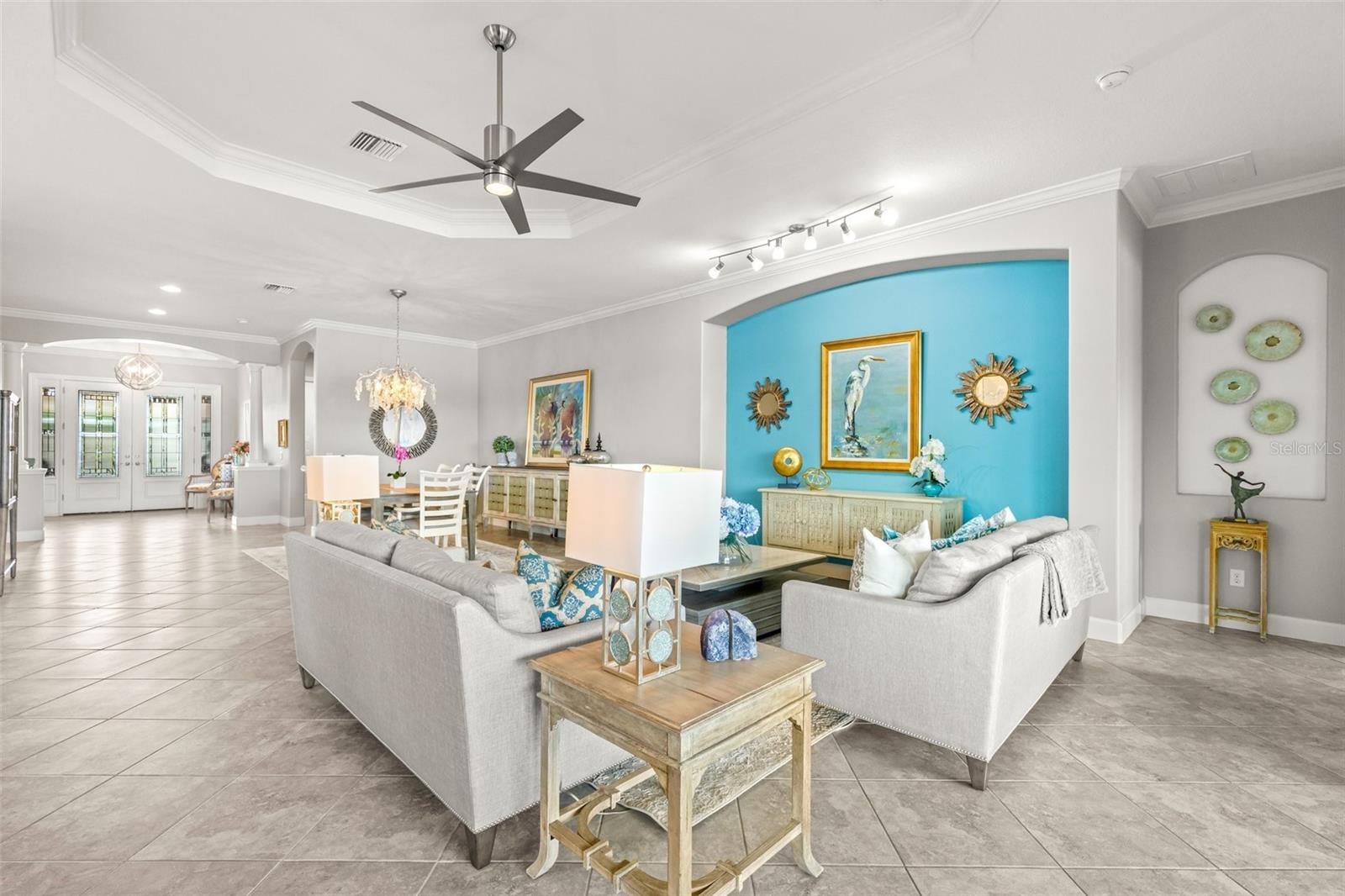This stunning golf deeded home offers over 3,000 square feet of bright, airy living space in the amenity-rich Esplanade Golf and Country Club, nestled in the heart of Lakewood Ranch. This popular Pallazio model is designed with an open floor plan and features three spacious bedrooms, three full bathrooms, a versatile den/office, and a gourmet kitchen. The large lanai is the perfect setting for outdoor living and a place to enjoy a beautiful sunrise. Thoughtfully upgraded, this home boasts high tray ceilings, elegant crown molding, and modern tech enhancements like integrated wiring for speakers and security cameras. A BRAND NEW HVAC system was installed in March 2025. The three-car garage includes a unique tandem area that has been enclosed as a functional workroom but can easily be converted back to its original open layout. For peace of mind during hurricane season, high impact roll down shades have been installed for the lanai and each of the side and back windows have been fitted with high impact kevlar material that is easy to install. The front door, front window and garage door are high impact rated on their own. All this AND located in a non-evacuation zone! Esplanade is resort-style living at its finest! Not only does it have an incredible 18 hole golf course, Esplanade offers an unmatched lifestyle with an array of world-class amenities, including: • multiple workout spaces • resort-style pools • The Bahama Bar, a tiki bar for casual dining and drinks • The Barrel House, a full-service restaurant • a dog park • a playground • tennis, pickleball, and bocce ball courts • and a fire pit for gathering and relaxation. Esplanade is ideally situated within Lakewood Ranch, one of the nation’s premier master-planned communities. Residents enjoy proximity to top-rated schools, an abundance of shopping opportunities, and high-end dining options. From boutique shops to fine restaurants, there’s something for everyone. With activities and amenities for all ages, this vibrant community provides an unparalleled lifestyle. This home is a perfect blend of comfort, style, and convenience. Don’t miss your chance to make it yours and experience the best of Esplanade living!