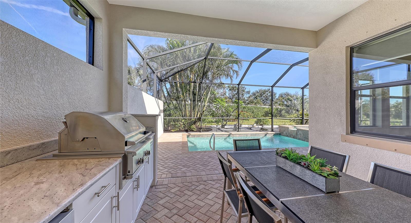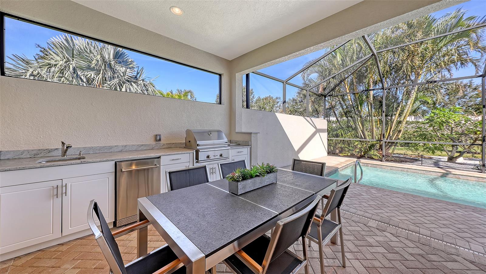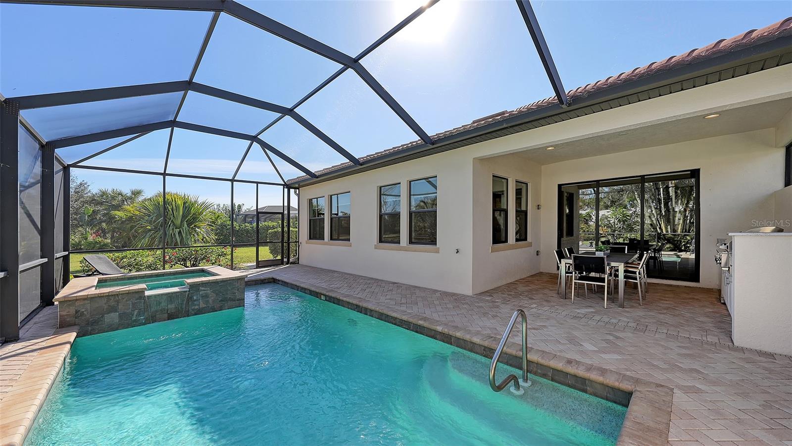 Welcome to this beautifully appointed home in the coveted Rosedale Golf & Country Club neighborhood! Nestled on an oversized homesite with huge backyard, lush landscaping and custom outdoor lighting, this property is a true sanctuary. Inside, the open floor plan showcases stylish tile floors in the main living areas and office, complemented by fresh new carpet in all three ensuite bedrooms. The chef’s kitchen features sleek stainless steel appliances, granite countertops, and a contemporary tile backsplash, offering both functionality and flair. Step outside to your private oasis, complete with a sparkling pool, spa, and a fully equipped outdoor kitchen—perfect for entertaining or enjoying tranquil evenings under the stars. Additional upgrades include brand new pool heater, new HVAC 2025 with transferrable warranty, IMPACT GLASS, newer washer and dryer, and shutters, rain gutters, and additional powder bath. Beyond the home, Rosedale offers world-class amenities, including clay tennis courts, a state-of-the-art fitness center, a resort-style pool, premier golf facilities, and an on-site restaurant for casual dining or special occasions. Residents enjoy the added convenience of a maintenance-free lifestyle with lawn care, basic cable, and gated entry included. Don’t miss the opportunity to experience this exceptional home and lifestyle.
