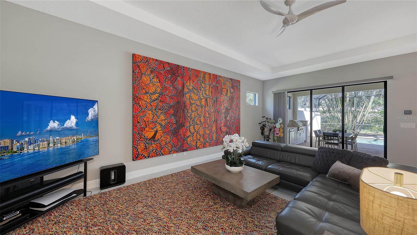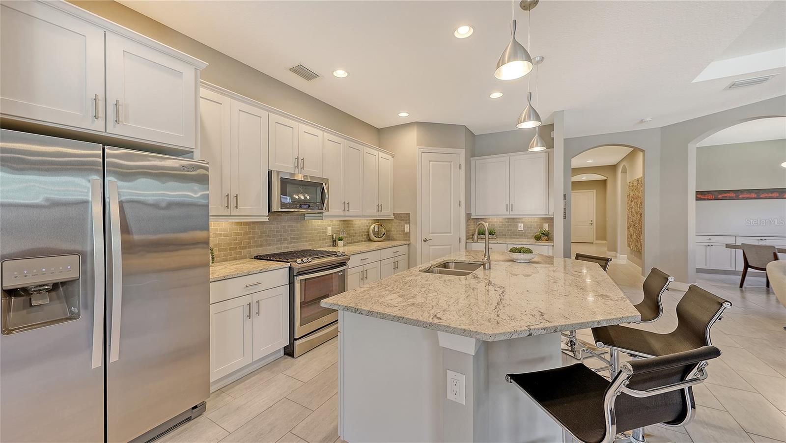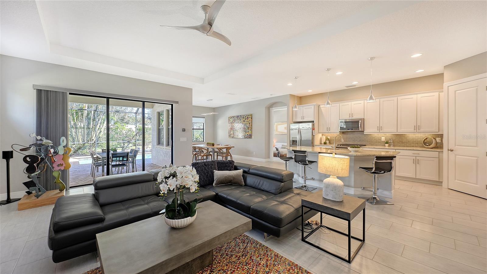 Welcome to this beautifully appointed home in the coveted Rosedale Golf & Country Club neighborhood! Nestled on an oversized homesite with huge backyard, lush landscaping and custom outdoor lighting, this property is a true sanctuary. Inside, the open floor plan showcases stylish tile floors in the main living areas and office, complemented by fresh new carpet in all three ensuite bedrooms. The chef’s kitchen features sleek stainless steel appliances, granite countertops, and a contemporary tile backsplash, offering both functionality and flair. Step outside to your private oasis, complete with a sparkling pool, spa, and a fully equipped outdoor kitchen—perfect for entertaining or enjoying tranquil evenings under the stars. Additional upgrades include brand new pool heater, new HVAC 2025 with transferrable warranty, IMPACT GLASS, newer washer and dryer, and shutters, rain gutters, and additional powder bath. Beyond the home, Rosedale offers world-class amenities, including clay tennis courts, a state-of-the-art fitness center, a resort-style pool, premier golf facilities, and an on-site restaurant for casual dining or special occasions. Residents enjoy the added convenience of a maintenance-free lifestyle with lawn care, basic cable, and gated entry included. Don’t miss the opportunity to experience this exceptional home and lifestyle.