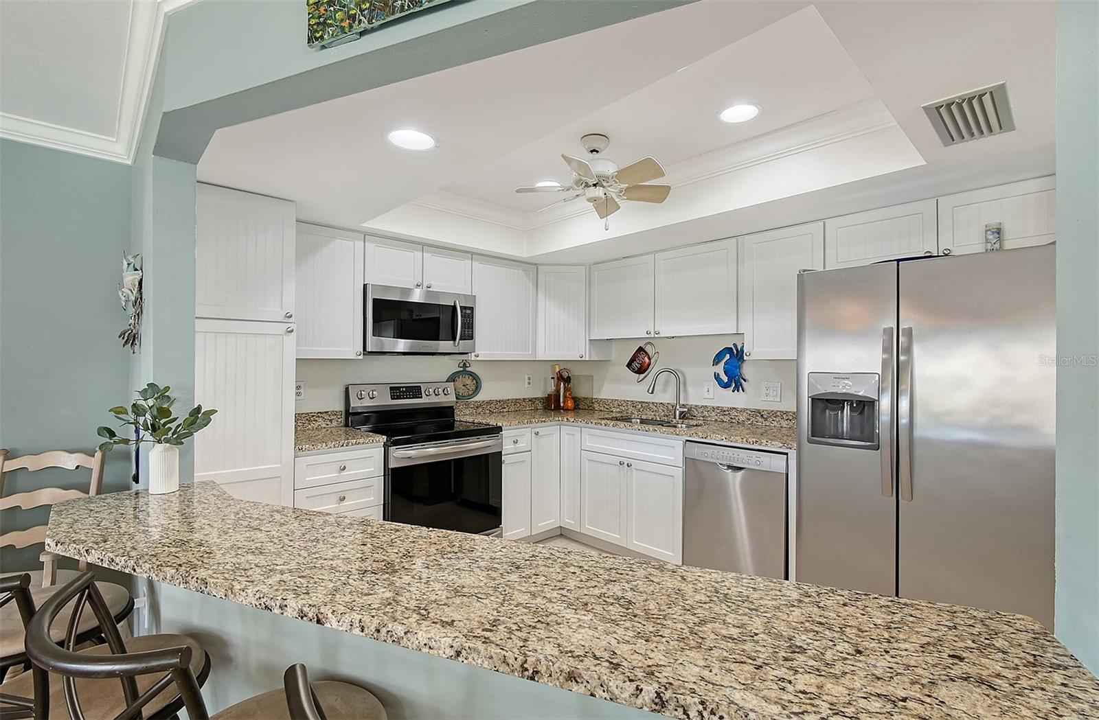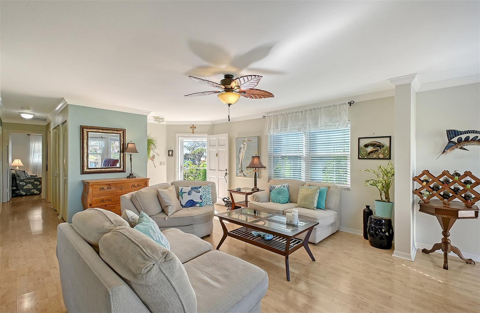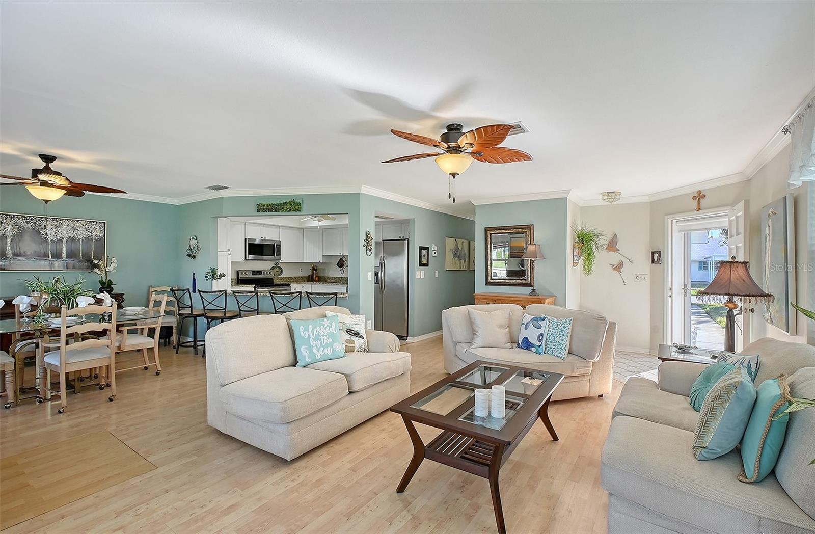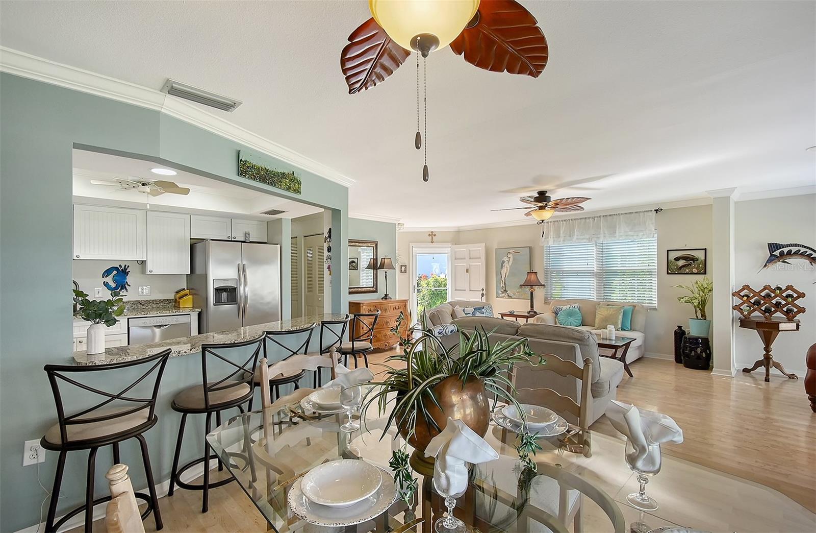 This beautifully updated 2-bedroom villa, situated on a tranquil saltwater canal with no fixed bridges, provides easy boating access to Sarasota Bay and the Gulf of Mexico, and is being sold Furnished! Located in the sought-after 55+ Mount Vernon neighborhood, this home combines serene waterfront living with proximity to Anna Maria Island’s stunning beaches, dining, and attractions, just three miles away. This property sustained No damage during Hurricanes Helene or Milton. You’re welcomed home with a lovely tropically inspired outdoor flower filled sitting area into this lovely updated villa, which features an open floor plan. Perfect for entertaining, it features a spacious kitchen, dining, and living areas, all bathed in natural light from large, impact-rated sliding glass doors that frame picturesque canal views. The expanded outdoor 8 x 20 ft patio invites you to relax while watching dolphins and manatees play or enjoy grilling after a fun day of boating, fishing, or exploring the community’s abundant amenities. The updated kitchen boasts light cabinetry, Newer stainless steel appliances, and a large peninsula that accommodates seating for five. The generously sized primary bedroom offers a walk-in closet, attic storage. Its en-suite bathroom is beautifully appointed with a walk-in shower enclosed by glass doors and an updated vanity. The secondary bedroom is also spacious, with a large closet, making it ideal for guests or additional storage needs. The secondary bathroom also features an updated vanity, along with a shower and tub. Additional highlights of this home include impact-rated windows and storm doors for safety and energy efficiency, and 2023 roof (The HOA conveniently covers roof maintenance). A large outside carport with generous locked storage area that houses the washer and dryer. Air Conditioner from 2021, newer Fans throughout, and updated Air Ducting in 2021. MOUNT VERNON'S VIBRANT AND WELCOMING COMMUNITY offers extensive amenities for an active lifestyle. Residents enjoy a clubhouse with meeting areas, a kitchen, a workshop, a fitness center, and billiards. Outdoor features include tennis and pickleball courts, a heated swimming pool, a bocce ball court, a putting green, and a kayak launch with additional storage. The bayside pavilion has with grills and picnic table seating, and the Bayfront Nature Trail offer the perfect setting for spectacular sunsets and views of Florida’s flora and fauna. The community also boasts a bird sanctuary and a butterfly garden for nature enthusiasts. Notably, milestone inspections are Not required for this community. Conveniently located close to Anna Maria Island, Longboat Key, Sarasota and Sarasota Airport, along with close-by dining and shopping, this villa offers a unique opportunity to experience the best of Florida living in a friendly, amenity-rich community, with Bay and Gulf Access. Schedule your visit today!