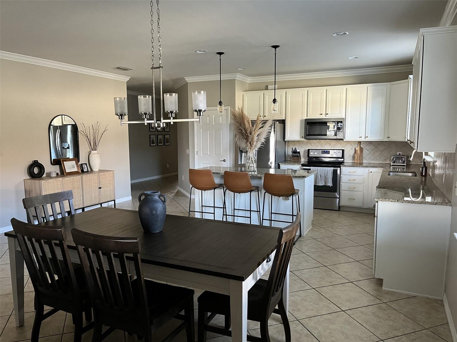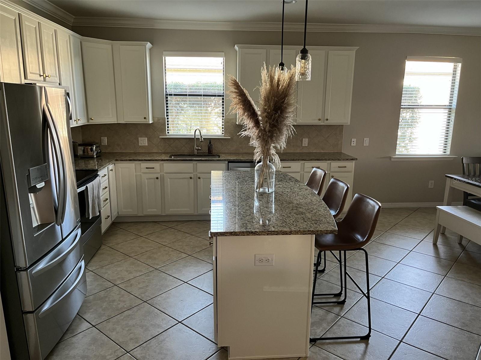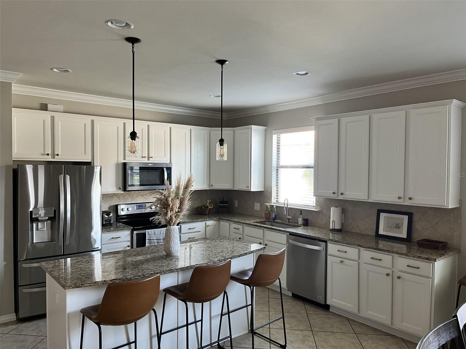#NewYearNewHome Step into this perfect move-in ready home for the New Year! Nestled on a beautifully landscaped corner lot, this 4-bedroom, 2- bath gem offers a truly welcoming atmosphere from the moment you pull up. With its meticulously maintained exterior, paver driveway, and a fenced backyard that overlooks a serene preserve, you’ll feel right at home. As you enter through the large foyer, you’re greeted with recessed lighting, crown molding, and 18-inch tile laid diagonally, creating a bright and open feel throughout. The spacious, open-concept living area flows seamlessly into a gourmet kitchen featuring stainless steel appliances, a huge island, granite countertops, under-cabinet lighting, and ample pantry space. Plus, with oversized upper cabinets and slide-out drawers in the lower cabinets, storage and organization are a breeze. The master suite is a true retreat, offering a generous walk-in closet and a luxurious master bath with granite counters, dual sinks, and a huge walk-in shower. The 2nd and 3rd bedrooms are separated by a linen closet and share a large bath with granite countertops and dual sinks. The 4th bedroom at the entrance of the home offers flexibility—ideal for a den, office, or guest room. The laundry room features cabinets, utility sink and included washer/dryer for added convenience. Relax and unwind in the screened lanai, complete with pavers and stunning views of the pond, where you can watch birds and wildlife roam freely. The oversized 2-car garage includes a workbench, wood storage cabinets, and a utility sink, making it as functional as it is spacious. This home is hurricane-ready with impact glass throughout (no need for shutters), and is designed to be handicap accessible, with easy-maintenance tile in the main areas and wood laminate floors in the bedrooms. Plus, the home boasts a NEW Trane A/C unit installed in July 2023 for added peace of mind. Set in a highly sought-after neighborhood with low HOA fees, residents enjoy access to a playground, basketball court, and close proximity to Braden River High School and other top-rated schools. A dog park is conveniently located just outside the neighborhood. Shopping, dining, and entertainment are just minutes away at the UTC Mall area, and with I75 nearby, you’ll have quick access to all that Sarasota and the surrounding areas have to offer, including the stunning Gulf Coast beaches of Siesta Key, Lido Beach, and Anna Maria Island. Start the new year right in a home that combines luxury, comfort, and convenience—don’t miss your chance to make this stunning property yours!
