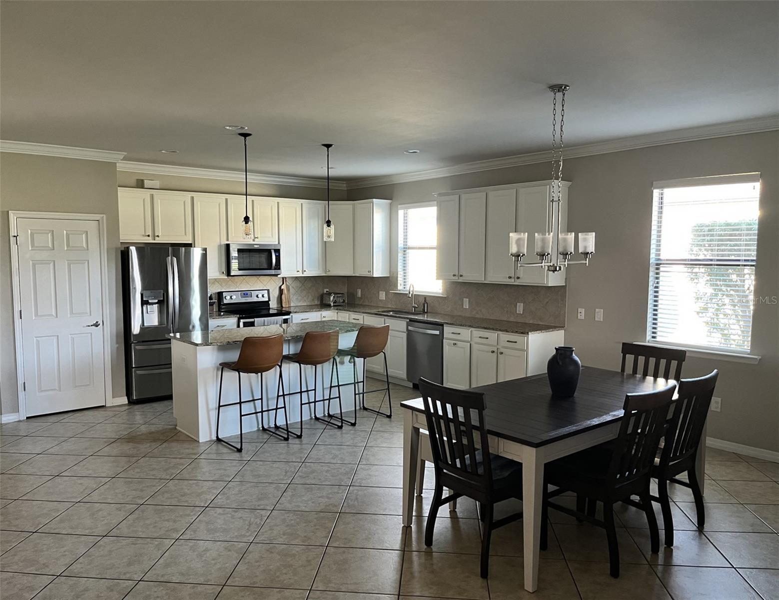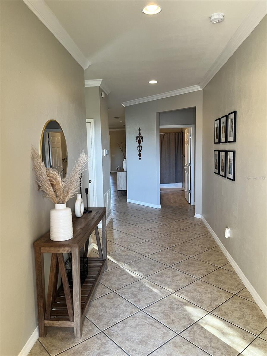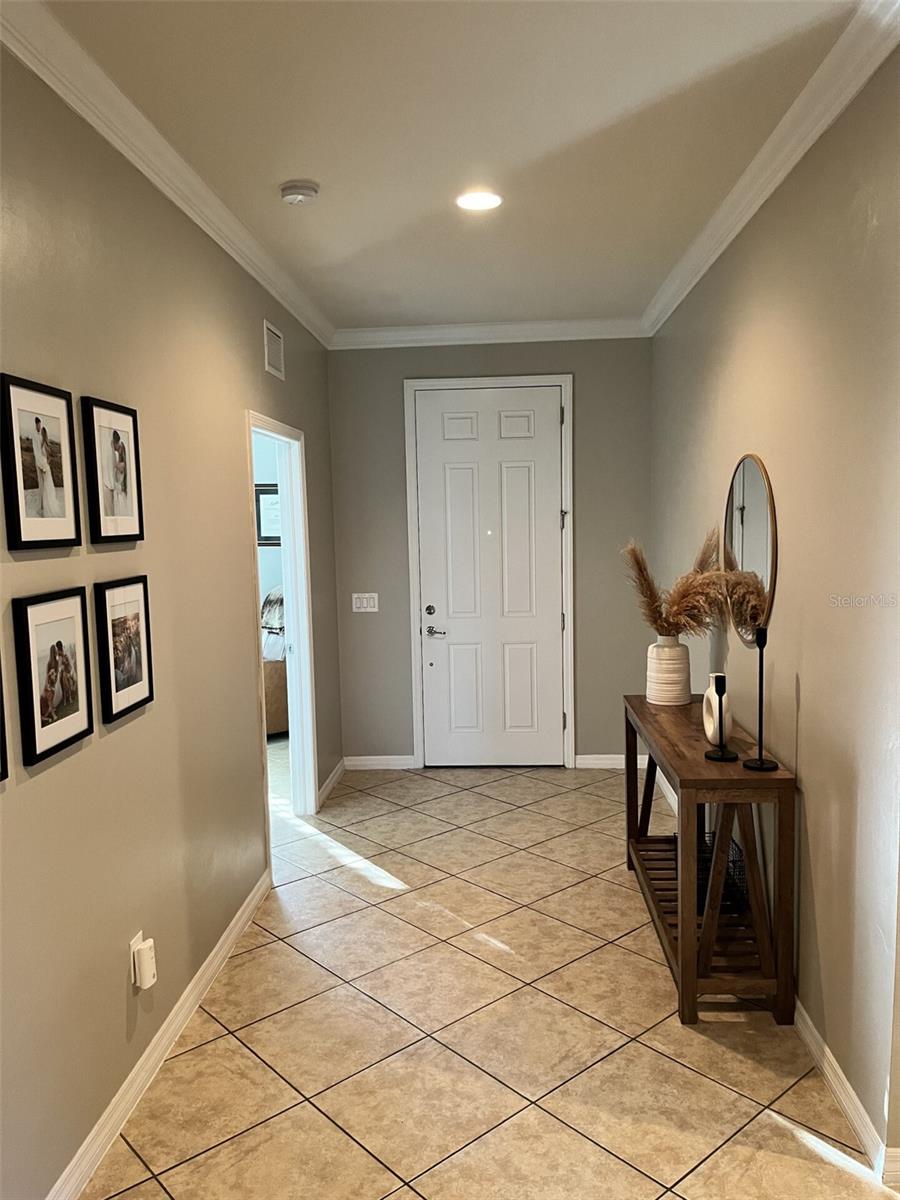 #NewYearNewHome Step into this perfect move-in ready home for the New Year! Nestled on a beautifully landscaped corner lot, this 4-bedroom, 2- bath gem offers a truly welcoming atmosphere from the moment you pull up. With its meticulously maintained exterior, paver driveway, and a fenced backyard that overlooks a serene preserve, you’ll feel right at home. As you enter through the large foyer, you’re greeted with recessed lighting, crown molding, and 18-inch tile laid diagonally, creating a bright and open feel throughout. The spacious, open-concept living area flows seamlessly into a gourmet kitchen featuring stainless steel appliances, a huge island, granite countertops, under-cabinet lighting, and ample pantry space. Plus, with oversized upper cabinets and slide-out drawers in the lower cabinets, storage and organization are a breeze. The master suite is a true retreat, offering a generous walk-in closet and a luxurious master bath with granite counters, dual sinks, and a huge walk-in shower. The 2nd and 3rd bedrooms are separated by a linen closet and share a large bath with granite countertops and dual sinks. The 4th bedroom at the entrance of the home offers flexibility—ideal for a den, office, or guest room. The laundry room features cabinets, utility sink and included washer/dryer for added convenience. Relax and unwind in the screened lanai, complete with pavers and stunning views of the pond, where you can watch birds and wildlife roam freely. The oversized 2-car garage includes a workbench, wood storage cabinets, and a utility sink, making it as functional as it is spacious. This home is hurricane-ready with impact glass throughout (no need for shutters), and is designed to be handicap accessible, with easy-maintenance tile in the main areas and wood laminate floors in the bedrooms. Plus, the home boasts a NEW Trane A/C unit installed in July 2023 for added peace of mind. Set in a highly sought-after neighborhood with low HOA fees, residents enjoy access to a playground, basketball court, and close proximity to Braden River High School and other top-rated schools. A dog park is conveniently located just outside the neighborhood. Shopping, dining, and entertainment are just minutes away at the UTC Mall area, and with I75 nearby, you’ll have quick access to all that Sarasota and the surrounding areas have to offer, including the stunning Gulf Coast beaches of Siesta Key, Lido Beach, and Anna Maria Island. Start the new year right in a home that combines luxury, comfort, and convenience—don’t miss your chance to make this stunning property yours!