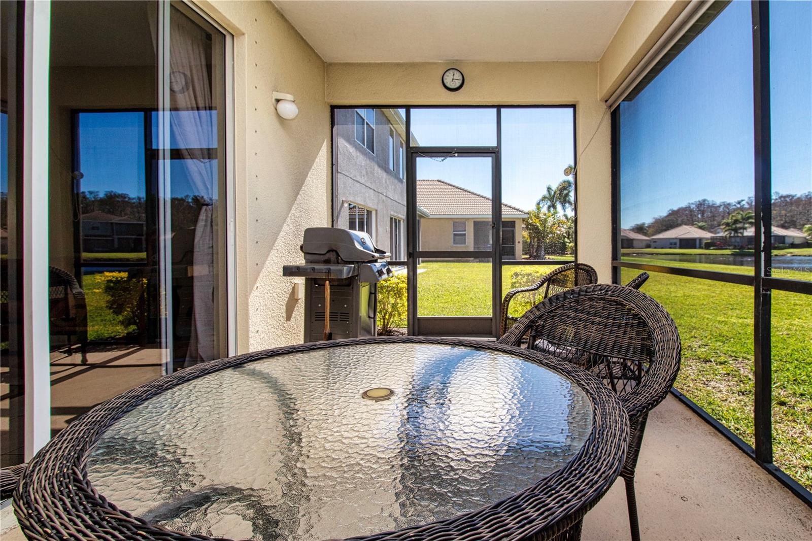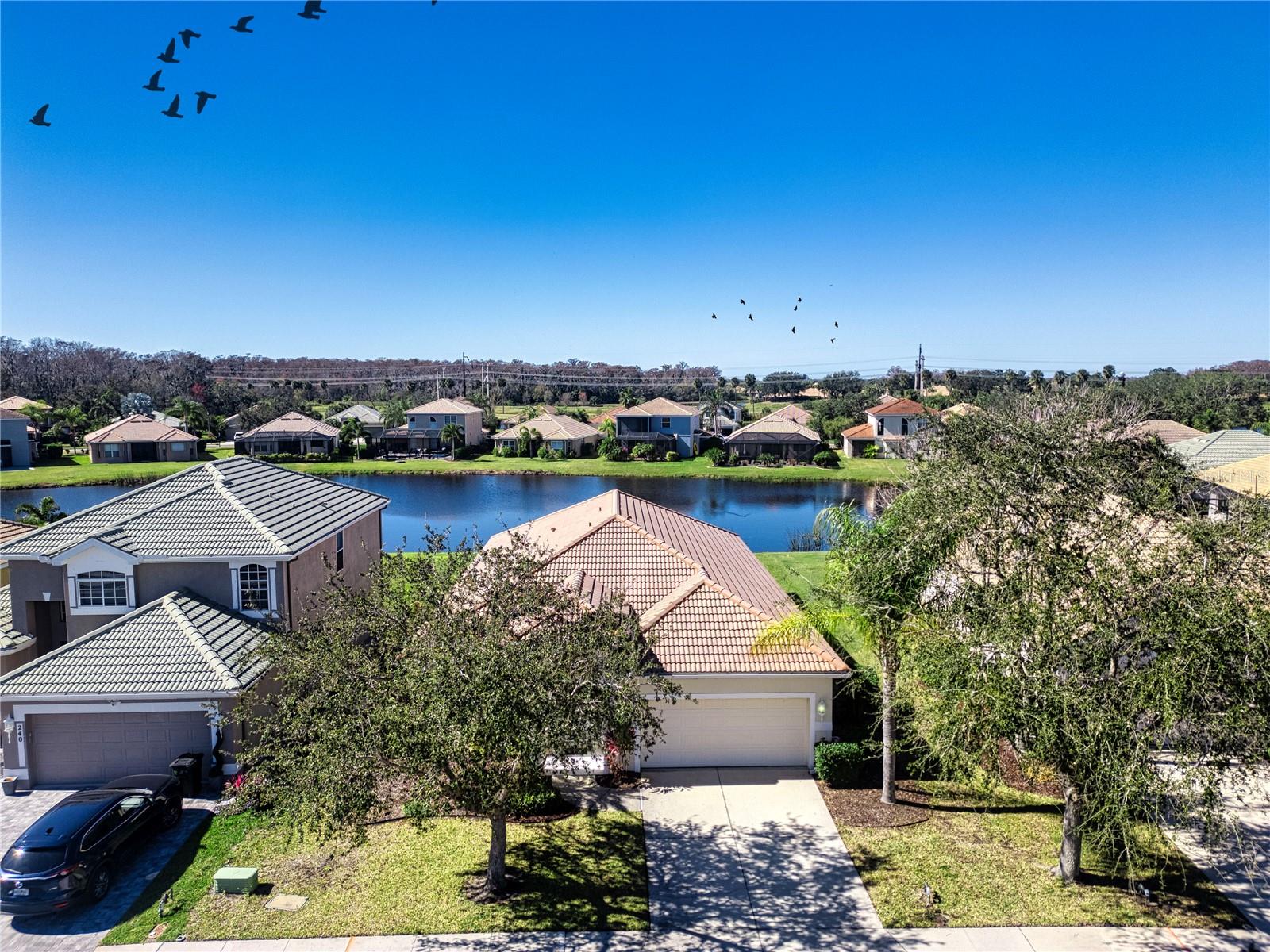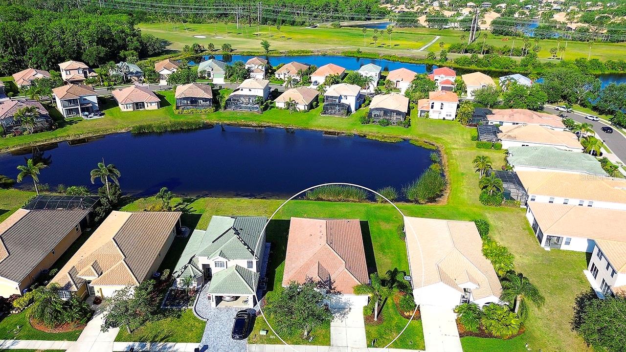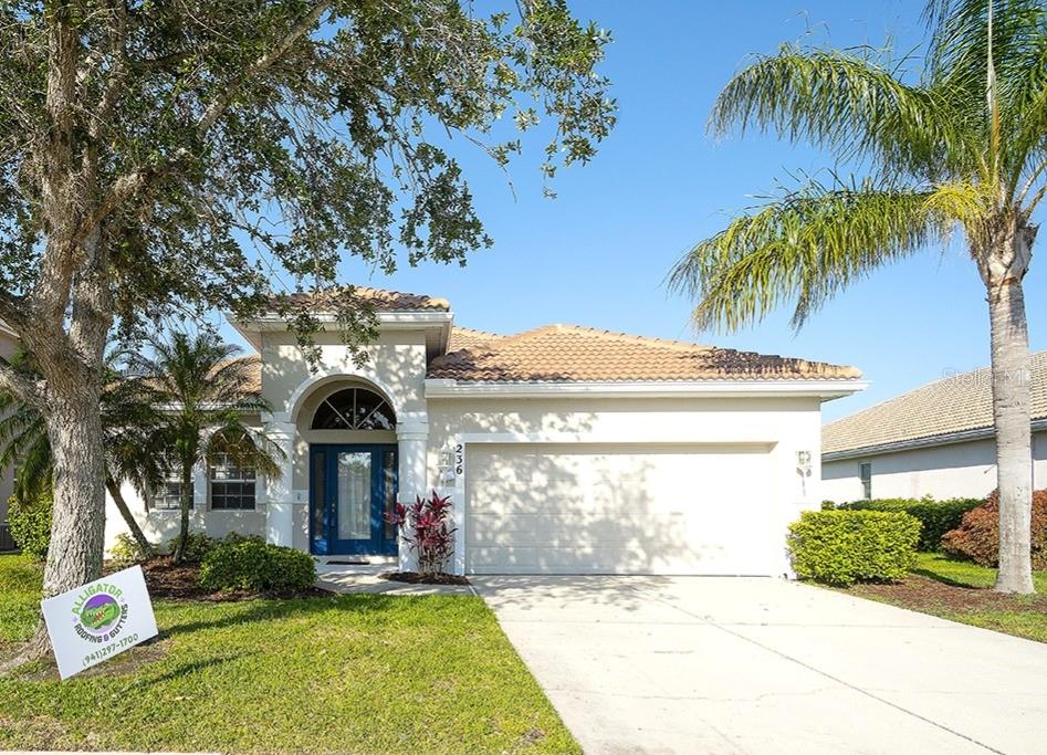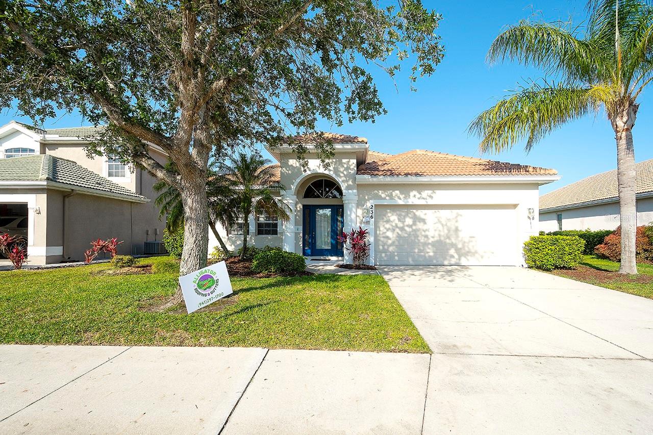 Look No Further! This Home has a BRAND NEW BARREL TILE ROOF! Also, freshly painted exterior! Beautiful 3 BR, 2 bath plus Den home in sought after Stoneybrook Golf Community! Amazing Lake View! Plenty of room for a pool if desired. This well cared for home has New AC system-18 seer w/10yr transferrable warranty (12/23), house has been completely replumbed with new PEX plumbing (2018), new ceiling fans, fresh paint in and out, front gutters, barrel tile roof and more! Open floor plan with generous front living and dining rooms, kitchen open to family room and 3 bedrooms plus office/den. Den has new hurricane rated window. Wonderful Family Room with sliders to lanai and view of lake. Kitchen has center island and breakfast bar, new SS sink, new SS appliances including double oven and maple cabinets. Primary bedroom has attached office/den area, huge walkin closet, ceiling fan, large vanity with dual sinks and tiled shower. Spare bedrooms are spacious with ceiling fans. Enjoy relaxing on your screened lanai with peaceful lake view. Very short walk to community center! RESORT STYLE LIVING with 18 hole public golf course with memberships available or pay as you play, restaurant, heated pools and spa, tennis/pickleball, fitness center, basketball courts, beach volleyball, dog parks, bocce, corn hole, rec center with activity director, playgrounds, ball fields, large lake with pier and walking path. Live like your on vacation year round! Close to the beautiful world famous beaches of Anna Maria Island and Siesta Key, plenty of shopping and restaurants, downtown Sarasota and Lakewood Ranch, Tampa, I75 and events galore! Welcome To Paradise! Note: CDD fee in taxes
