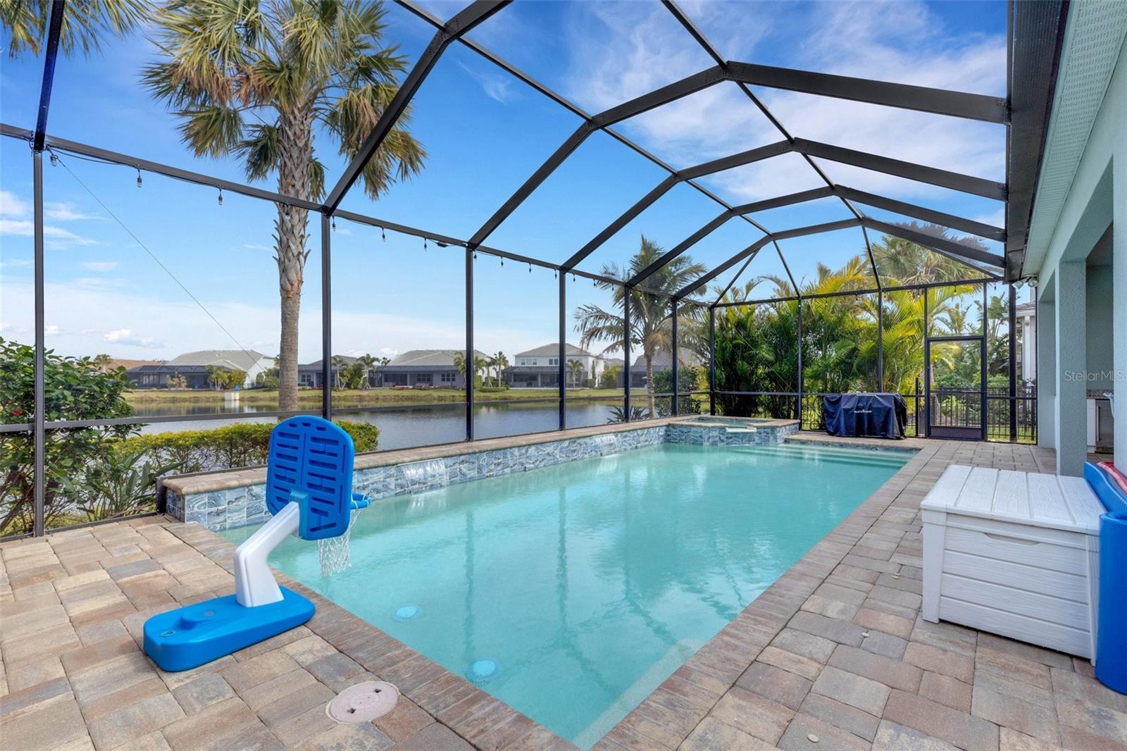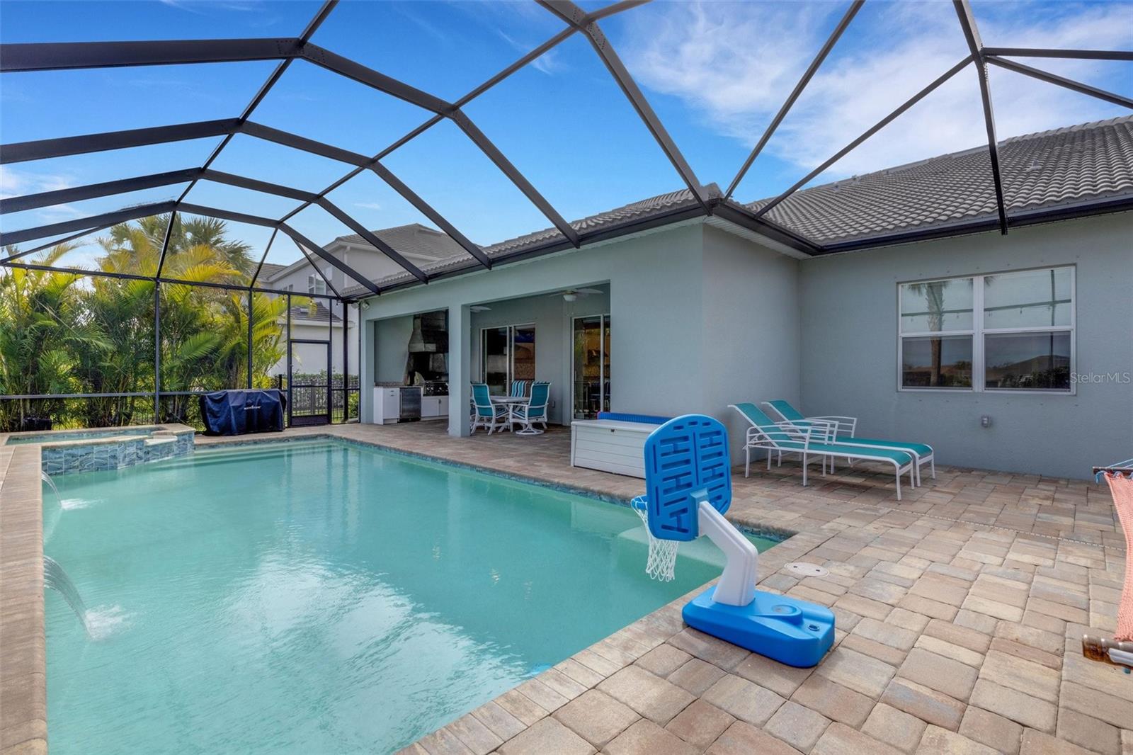 RARELY available, stunning Vanderbilt model by DiVosta, a Spacious two-story home in Mallory Park, one of Lakewood Ranch’s most sought-after villages! With over 3,400 square feet of thoughtfully designed living space, this home offers beautiful WATER VIEWS and is surrounded by mature landscaping in a secure GATED community. The Seller spared no expense in enhancing this home with PREMIUM Features, including an extended kitchen counter, finished closets, an extended garage, EXTRA STORAGE throughout, a brand-new washer and dryer installed in 2024, a POOL BATH ADDITION, and a fully fenced DOG RUN. Downstairs, the thoughtfully designed layout includes the primary suite and ensuite, an office/den, and an additional workspace conveniently located at the stairway. A guest bath and a spacious walk-in laundry room add further functionality to the main level. Upstairs, you’ll find an inviting loft, three guest bedrooms, a Jack and Jill bathroom, and an additional full bath, providing ample space for family and visitors. The outdoor area is an entertainer’s dream, featuring a Custom OUTDOOR KITCHEN with a fridge and sink, as well as a Saltwater Pool and Spa spanning 34 x 14 feet. Whether relaxing by the pool or hosting gatherings, this home is the perfect retreat. Mallory Park offers an exceptional lifestyle with resort-style amenities, including a swimming pool, fitness center, pickleball and basketball courts, barbecue areas, and cozy fire pits. Located just steps from Bob Gardner Park, residents enjoy access to playgrounds, a zip line, a dog park, walking trails, ball fields, and even disc golf. Families will love the private walking path leading directly to top-rated Lakewood Ranch schools, ensuring both convenience and peace of mind. This Vanderbilt model blends luxury, functionality, and community living in one of Lakewood Ranch’s premier gated neighborhoods. Schedule your private showing today to experience all this exceptional home has to offer!