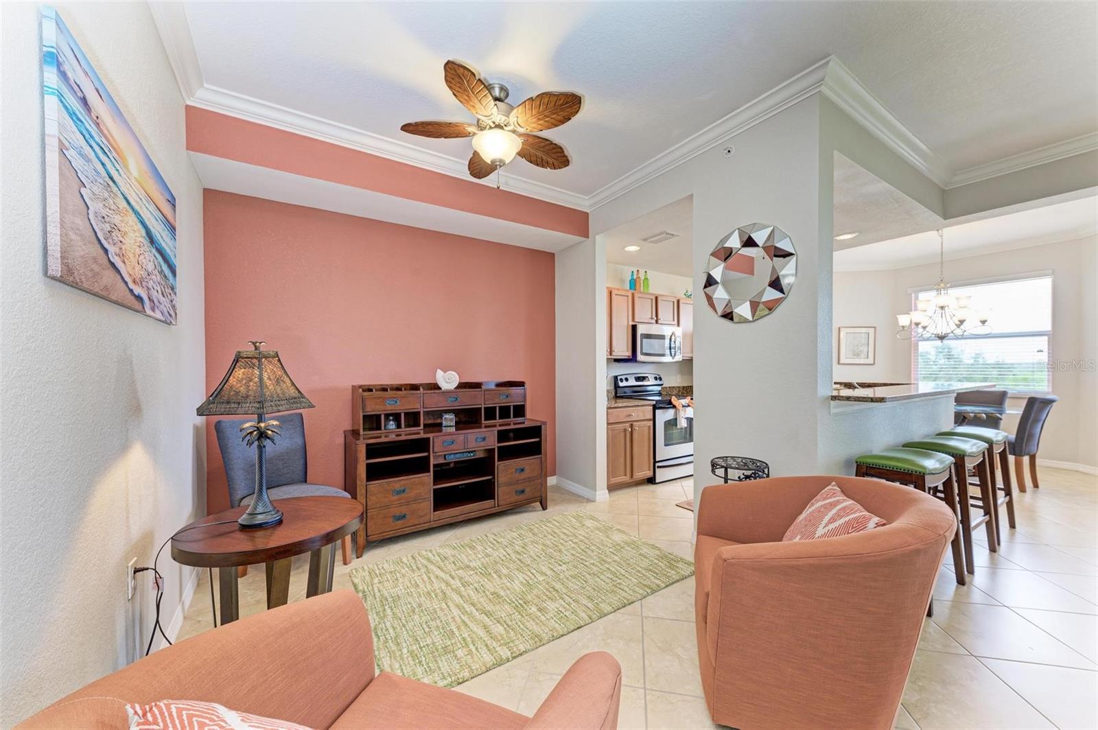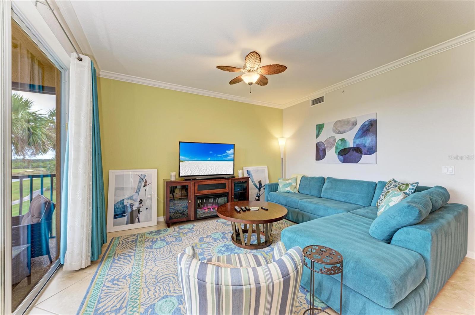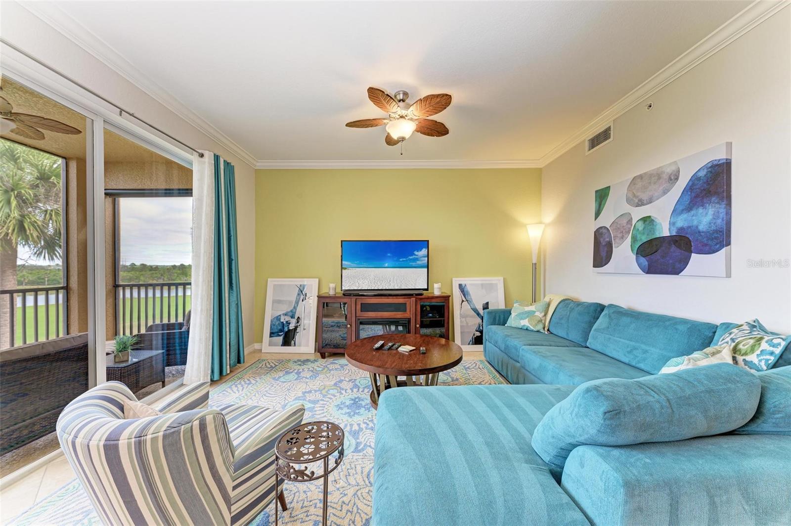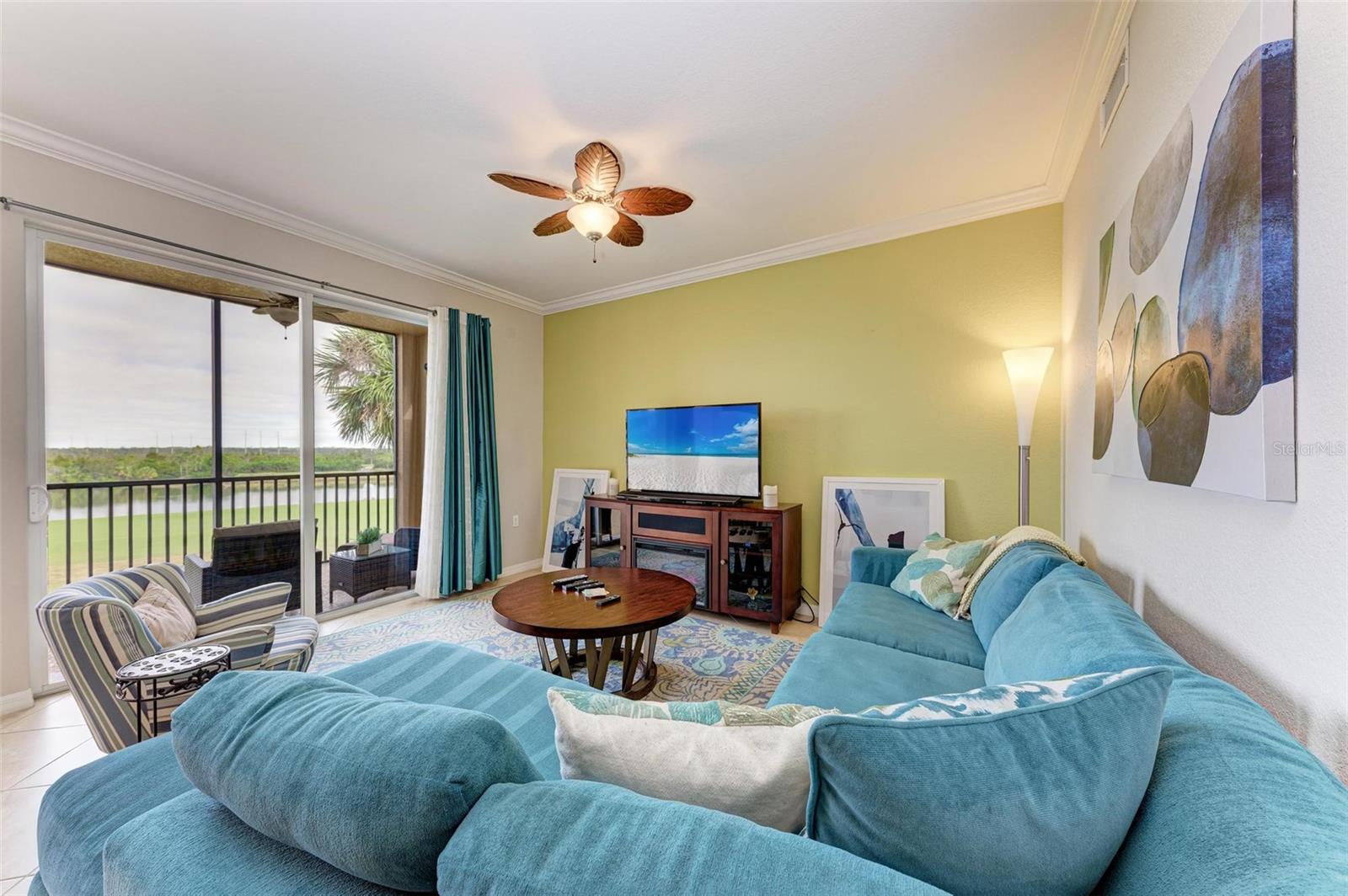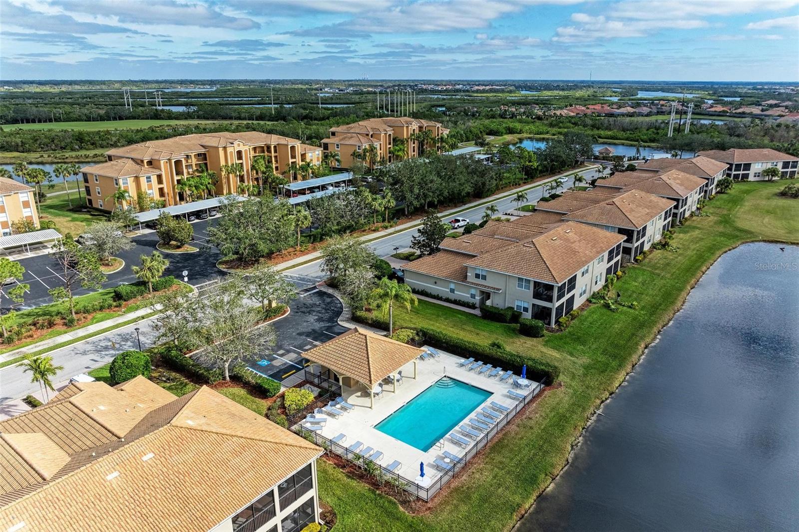 NEW PRICE REDUCTION!! SELLER MOTIVATED!! BRING OFFERS!! START YOUR FLORIDA LIFE in this THIRD FLOOR, TURNKEY FURNISHED Condominium home in the gated resort community of River Strand Golf & Country Club! Decorated in bright and vibrant custom paint and furnishings, this residence will make you smile each time you walk in the door! MOVE IN READY and GOLF DEEDED, this is the one you can make your primary residence, or second home AND it has great rental potential as well! Featuring FANTASTIC WATER, PRESERVE and GOLF VIEWS off of the private screened lanai, sit back, relax and take in the vistas and pristine golf course views that River Strand is known for! With an OPEN FLOOR PLAN, and a design that is both versatile and functional this model is a favorite. The eat-in kitchen overlooks the great room with fireplace and a flex/dining space adjacent is perfect for a desk, additional dining area or additional guests. The primary offers a large walk-in and en suite and guests and family will enjoy their own guest room with a guest bath adjacent. A generous storage room and a designated covered carport complete the property. River Strand truly has it all with 27 holes of recently redesigned Arthur Hills golf, clubhouse with RESTAURANT and grille room, 2 community pools and spas, 6 satellite pools, tennis and pickle ball courts, 2 fitness centers and social and fitness events and activities year round! Perfectly located minutes to I-75 and the new Marketplace and close to the beautiful beaches of the Gulf Coast! So make this year your best yet and come and experience River Strand at it's best, you may never want to leave!