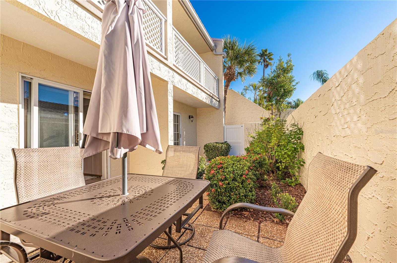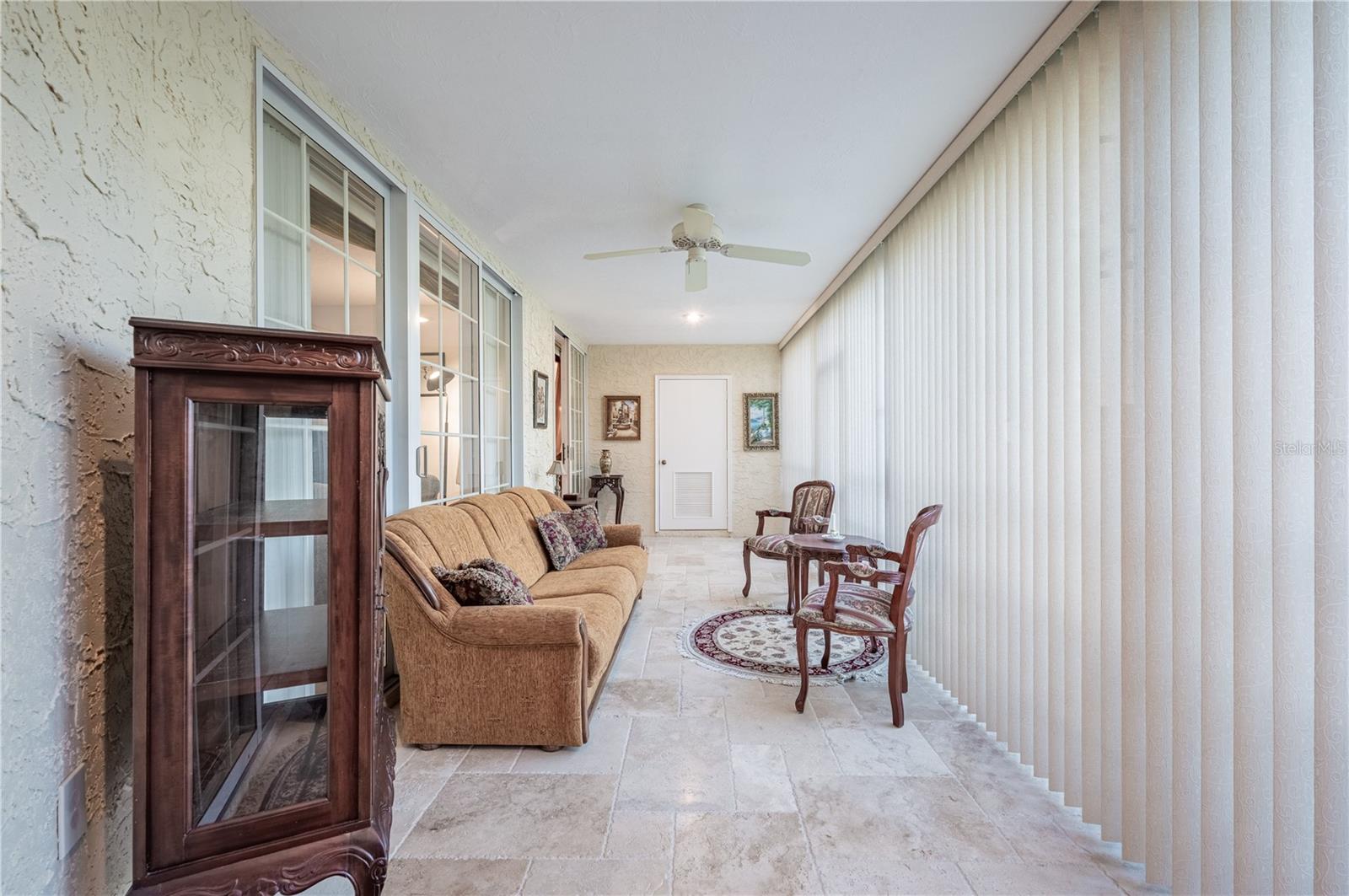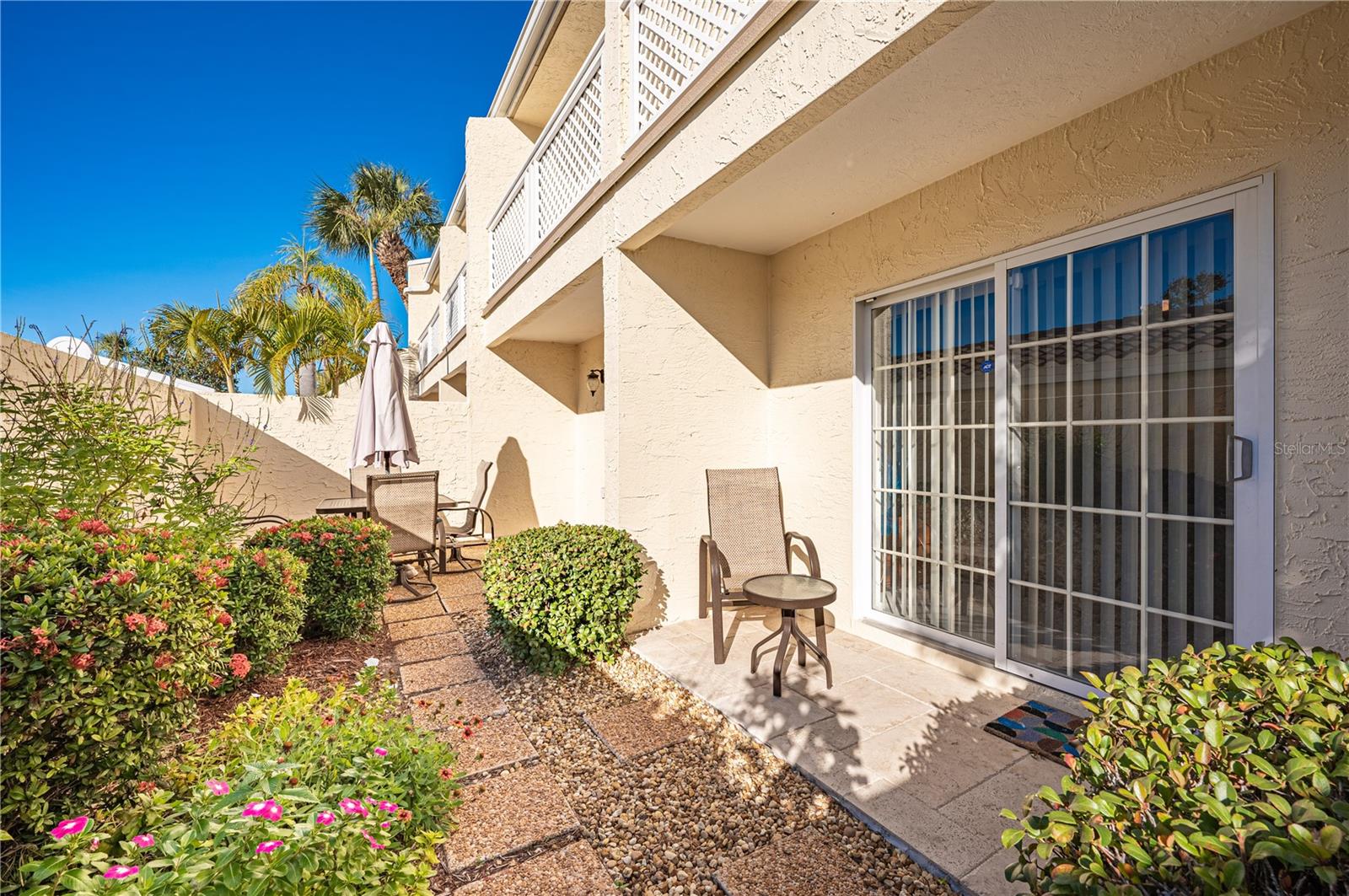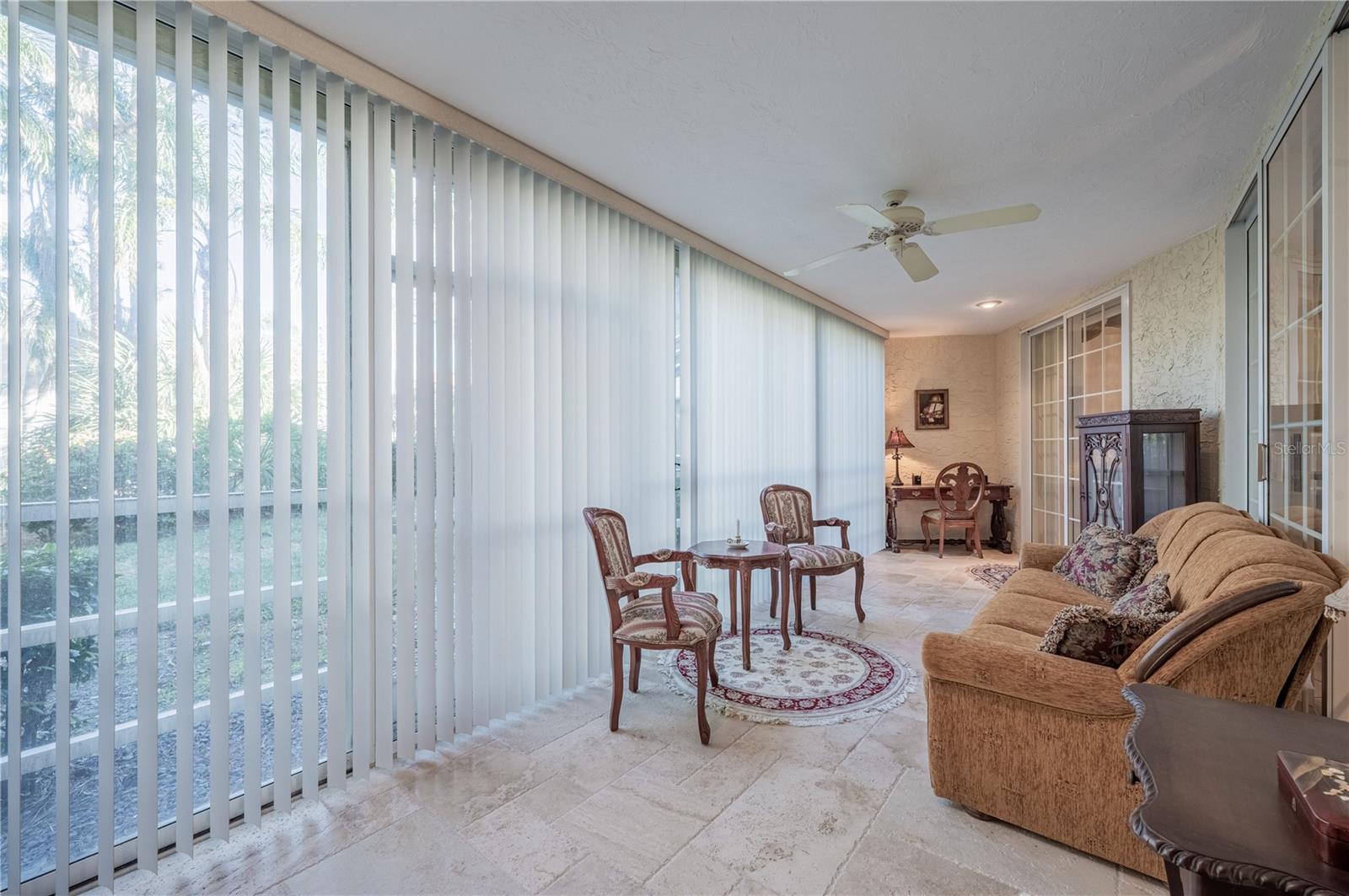 Welcome to the amazing first floor gem in Vizcaya. A Spanish style mediterranean gated community in the heart of Bradenton. The property has 4 sparkling lakes and well landscaped and maintained grounds with luscious vegetation. An enormous pool is by a full size club house that has a gym, function rooms and a full size kitchen. The heated pool is available year around. This 2 bedroom, 2 bath first floor condo is immaculate, one owner. Updated look and has neutral colors throughout. Remodeled European kitchen and bathroom, newer appliances, washer and dryer from 2024. In addition, there is a separate storage room. The condo has never been rented. It also doesn't have any damage from any hurricanes in the past 20 years. It is being sold turn key, furnished and includes upgrades of approximately $70K throughout the condo. Enclosed glass Florida room with natural stone in the back of the house, as well as beautifully maintained patio in the front of the house. Viscaya is conveniently located close to IMG Academy Sports center, downtown Sarasota, downtown Bradenton, Sarasota/Bradenton airport as well as sandy beaches of Anna Maria Island, Longboat Key and #1 in America Siesta Key beach. Fabulous community that organizes resident events, such as card games, exercise programs, card games and multiple other activities.