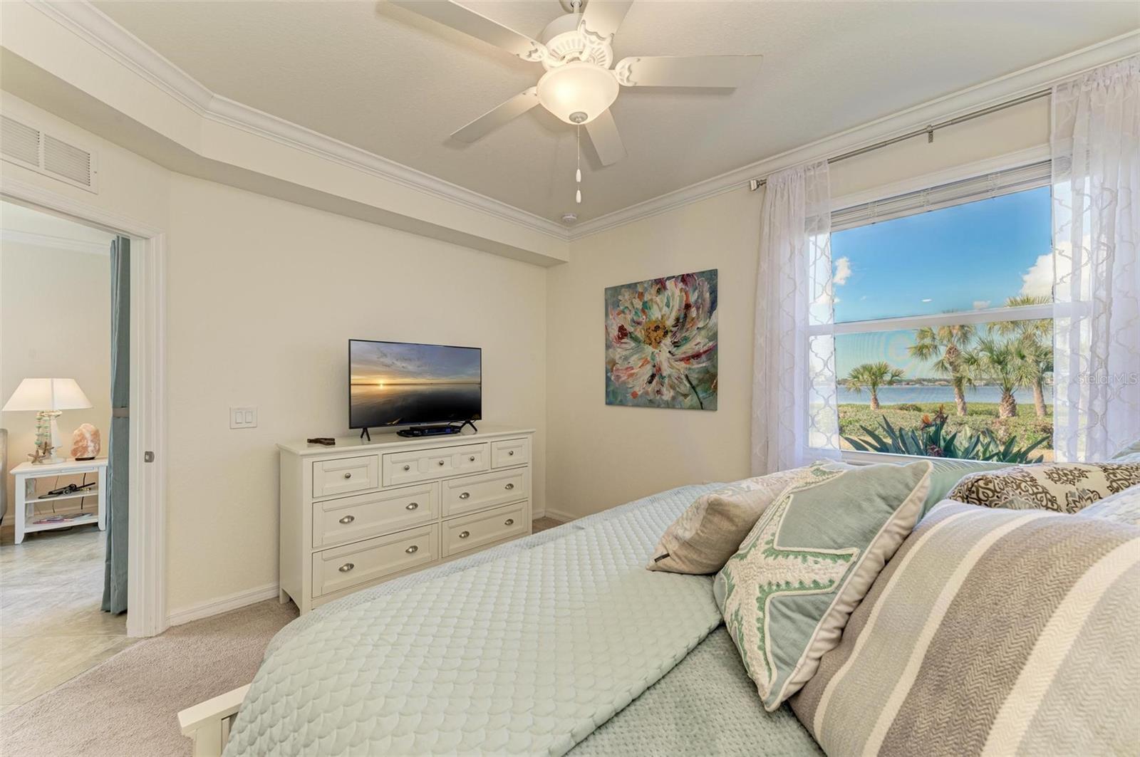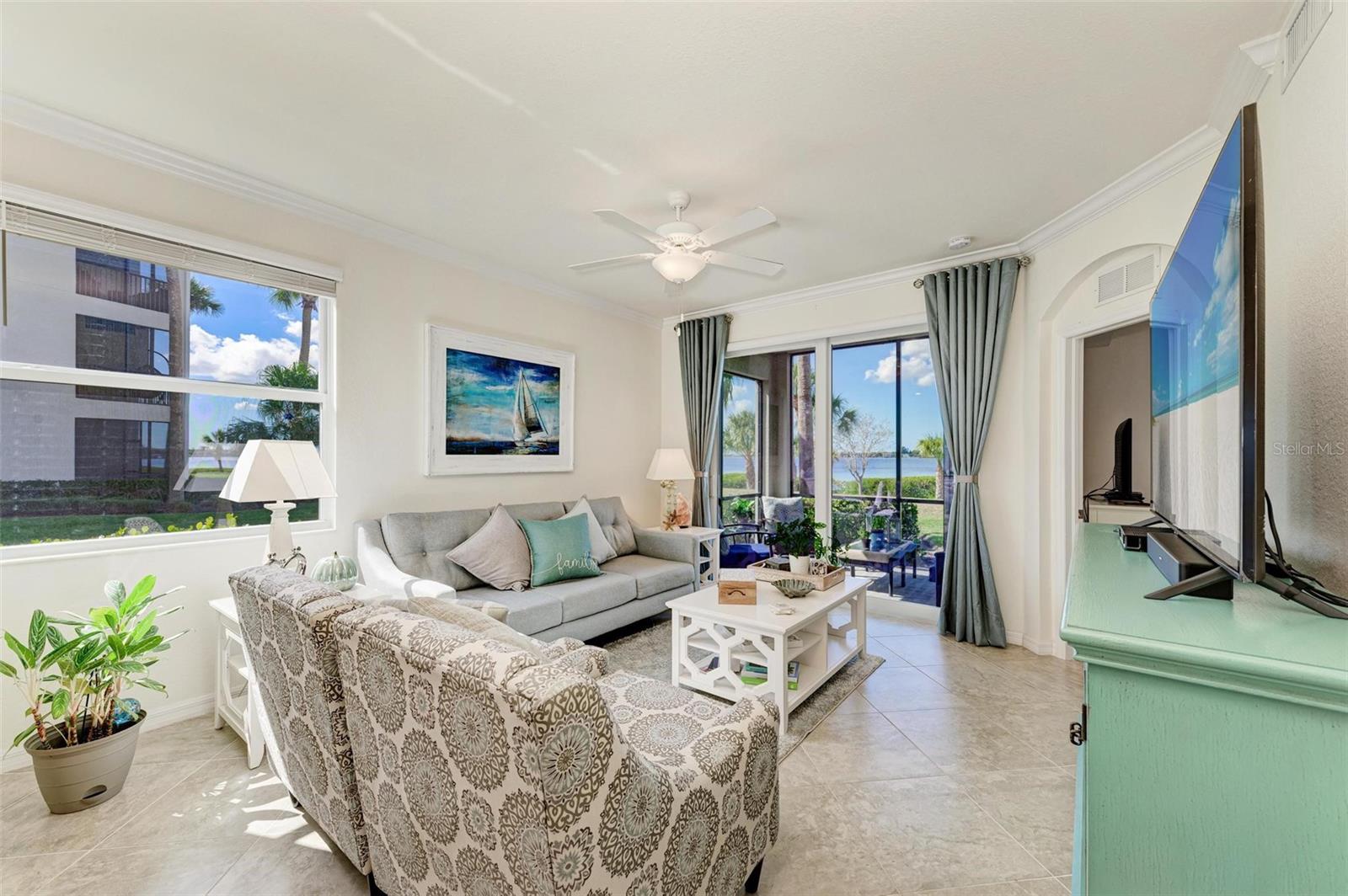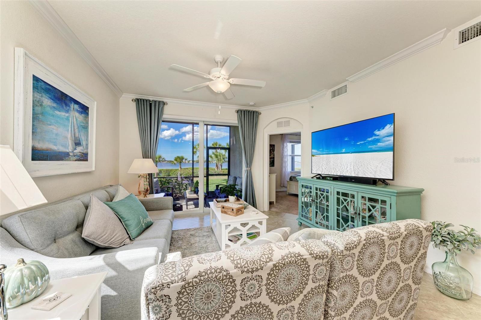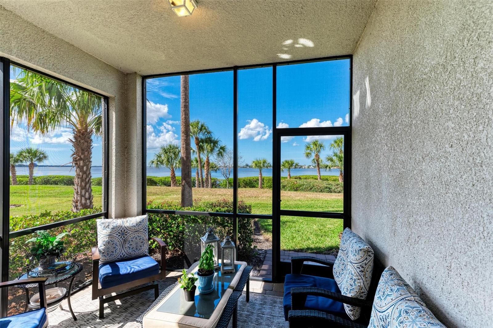 Experience the epitome of WATERFRONT LUXURY at Tidewater Preserve, where every day is adorned with breathtaking sunsets over the Manatee River. Nestled in a premier BOATING COMMUNITY with 24 hour GUARD GATE, this rare gem presents a rarely available Carolina floorplan, a 3-bedroom, 2-bath CORNER UNIT on the coveted 1st floor. The perfect blend of convenience and sophistication. Ideal for entertaining, this spacious kitchen boasts QUARTZ countertops, large island, shaker style SOLID WOOD CABINETRY, top-of-the-line STAINLESS STEEL APPLIANCES and DESIGNER PENDANT island lighting. GE SLIDE IN RANGE with front controls and the GE REFRIGERATOR are BOTH BRAND NEW. The kitchen flows seamlessly into the large dining area—a perfect setting for entertaining friends and family. The corner unit design floods the living areas with natural light, creating a warm and inviting ambiance. IMPACT WINDOWS and SLIDING DOORS for peace of mind and energy efficiency. Enjoy breathtaking sunsets over the Manatee River from your SCREENED LANAI, with easy access to the back yard for leisurely strolls with your pets. The ground floor unit is ideal for dog owners, with easy access to a backyard area. AUTOMATIC BLINDS on sliding door controlled by a remote for added privacy. Wake up to panoramic river views in the primary suite, featuring two walk-in closets, a spa-like en-suite bathroom with quartz countertops, and a large walk-in shower and linen closet. Second bathroom with private access from the guest room and hall access features a huge quartz countertop vanity with dual sinks, ample cabinetry, and a shower/tub combo. Versatile third room for guests, an office, craft room, den, or any flex space to suit your needs. Conveniently located laundry room with a full-size washer, dryer, and shelving. Assigned spacious STORAGE CLOSET and COVERED PARKING SPACE just steps from the front door. As a resident of Tidewater Preserve you also get to enjoy the array of resort style amenities including marina and boat lifts, 3 har-tru lighted tennis courts, 2 fitness centers, multiple resort pools, dog park, playground, canoe park, kayak launch, lodge with fireplace pool table, indoor and outdoor kitchens, conservation area with river front nature trails. Resort living at it’s finest all within minutes to everything you need for shopping, dining and entertainment. Boaters will love direct access to the Gulf of Mexico via the Tidewater Marina. Quarterly dues include building exterior, Spectrum cable, ground maintenance, high speed internet, building insurance, pest control and recreational facilities. Don't miss this opportunity to own a piece of resort-style living in Tidewater Preserve. Schedule a viewing today and make this riverfront oasis your new home!