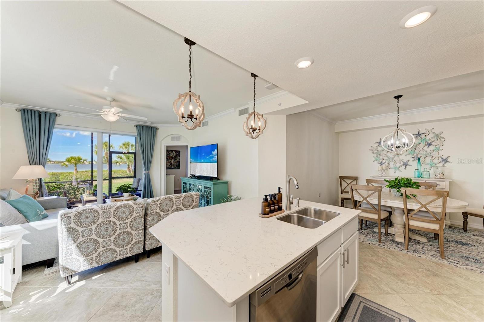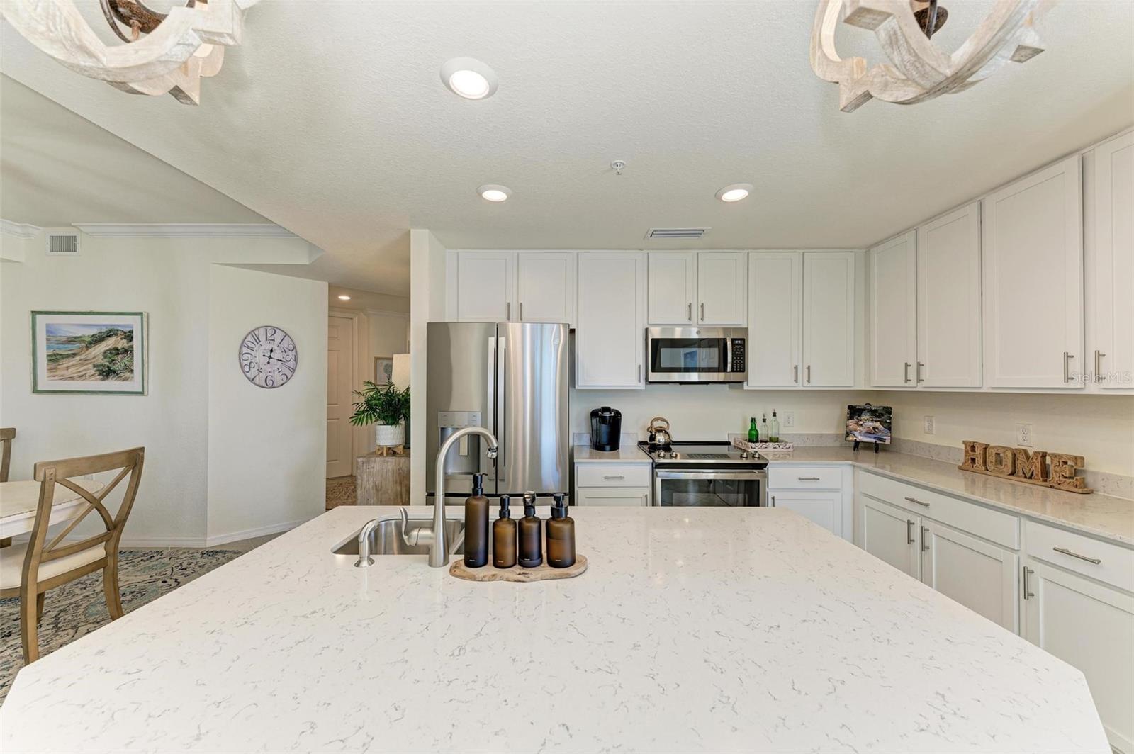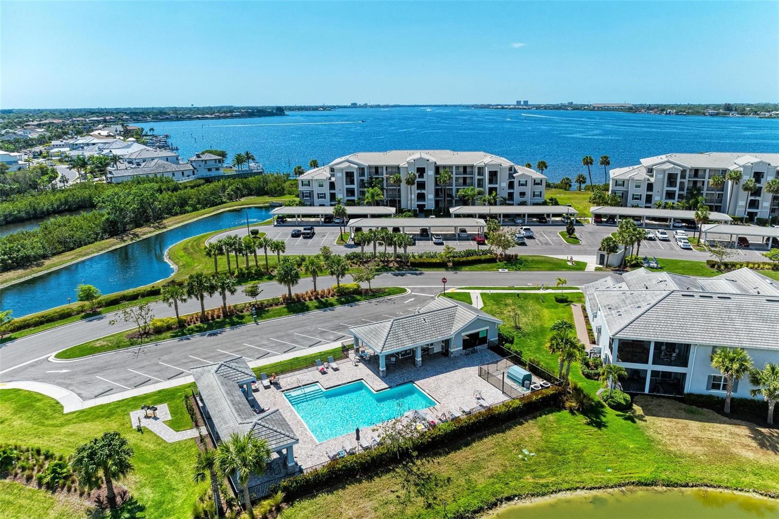 Experience the epitome of WATERFRONT LUXURY at Tidewater Preserve, where every day is adorned with breathtaking sunsets over the Manatee River. Nestled in a premier BOATING COMMUNITY with 24 hour GUARD GATE, this rare gem presents a rarely available Carolina floorplan, a 3-bedroom, 2-bath CORNER UNIT on the coveted 1st floor. The perfect blend of convenience and sophistication. Ideal for entertaining, this spacious kitchen boasts QUARTZ countertops, large island, shaker style SOLID WOOD CABINETRY, top-of-the-line STAINLESS STEEL APPLIANCES and DESIGNER PENDANT island lighting. GE SLIDE IN RANGE with front controls and the GE REFRIGERATOR are BOTH BRAND NEW. The kitchen flows seamlessly into the large dining area—a perfect setting for entertaining friends and family. The corner unit design floods the living areas with natural light, creating a warm and inviting ambiance. IMPACT WINDOWS and SLIDING DOORS for peace of mind and energy efficiency. Enjoy breathtaking sunsets over the Manatee River from your SCREENED LANAI, with easy access to the back yard for leisurely strolls with your pets. The ground floor unit is ideal for dog owners, with easy access to a backyard area. AUTOMATIC BLINDS on sliding door controlled by a remote for added privacy. Wake up to panoramic river views in the primary suite, featuring two walk-in closets, a spa-like en-suite bathroom with quartz countertops, and a large walk-in shower and linen closet. Second bathroom with private access from the guest room and hall access features a huge quartz countertop vanity with dual sinks, ample cabinetry, and a shower/tub combo. Versatile third room for guests, an office, craft room, den, or any flex space to suit your needs. Conveniently located laundry room with a full-size washer, dryer, and shelving. Assigned spacious STORAGE CLOSET and COVERED PARKING SPACE just steps from the front door. As a resident of Tidewater Preserve you also get to enjoy the array of resort style amenities including marina and boat lifts, 3 har-tru lighted tennis courts, 2 fitness centers, multiple resort pools, dog park, playground, canoe park, kayak launch, lodge with fireplace pool table, indoor and outdoor kitchens, conservation area with river front nature trails. Resort living at it’s finest all within minutes to everything you need for shopping, dining and entertainment. Boaters will love direct access to the Gulf of Mexico via the Tidewater Marina. Quarterly dues include building exterior, Spectrum cable, ground maintenance, high speed internet, building insurance, pest control and recreational facilities. Don't miss this opportunity to own a piece of resort-style living in Tidewater Preserve. Schedule a viewing today and make this riverfront oasis your new home!