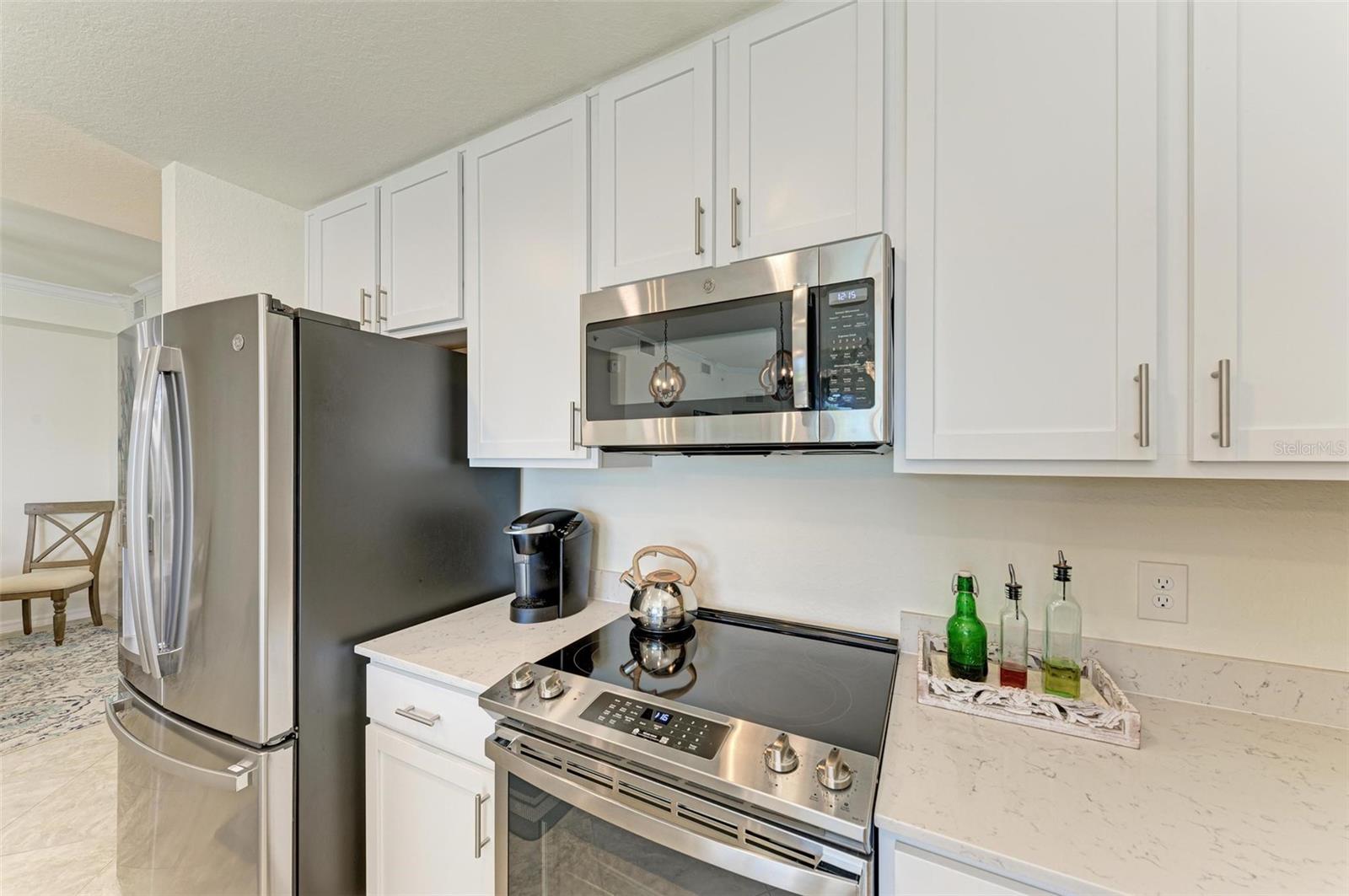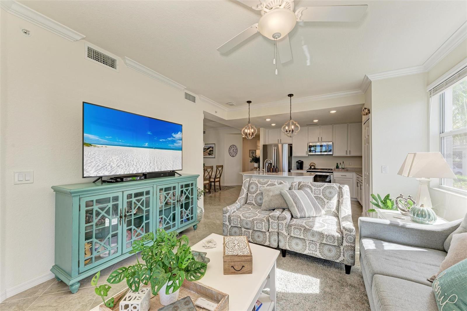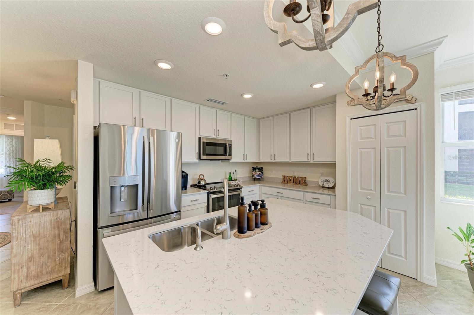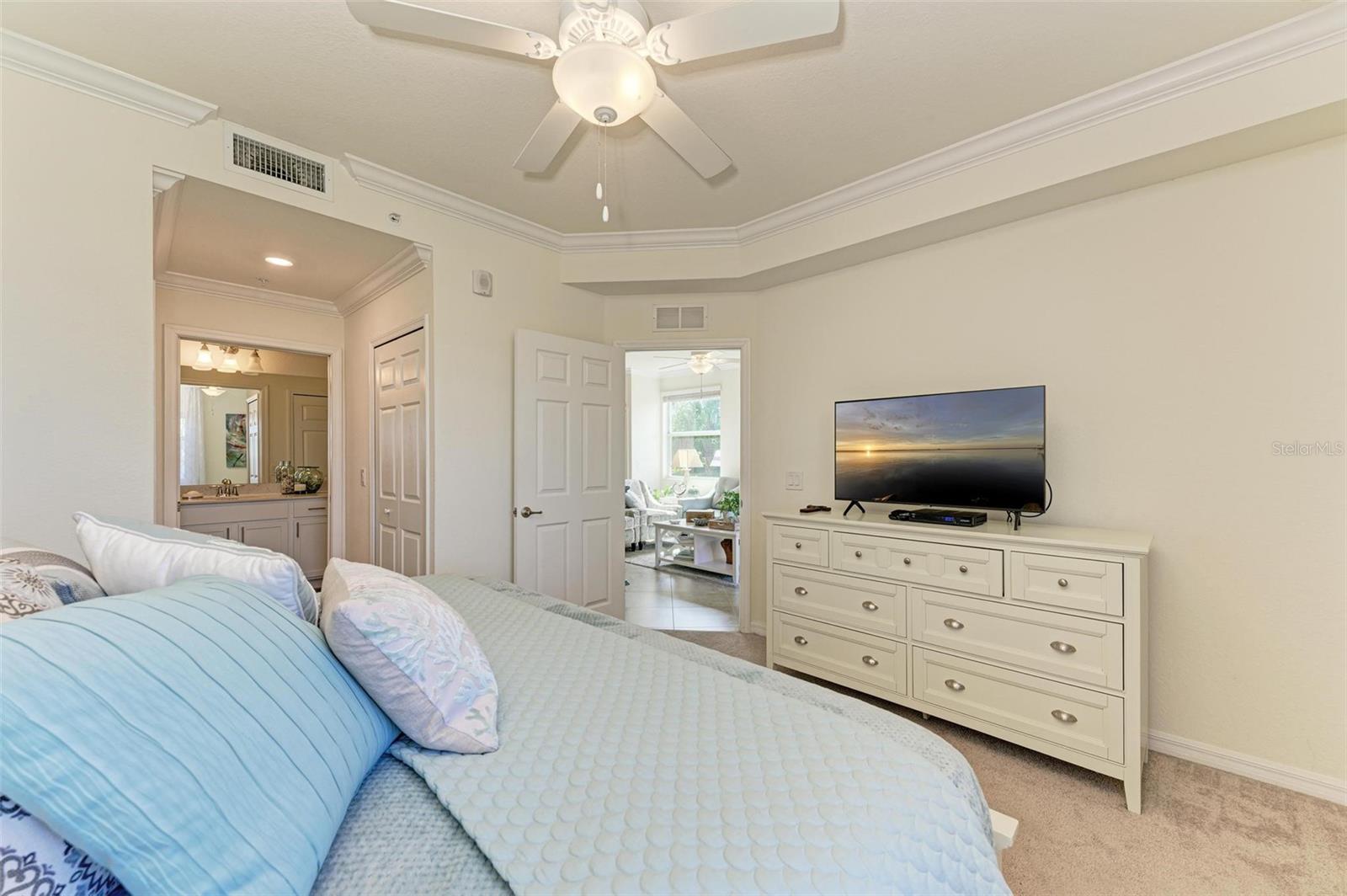 Experience the epitome of WATERFRONT LUXURY at Tidewater Preserve, where every day is adorned with breathtaking sunsets over the Manatee River. Nestled in a premier BOATING COMMUNITY with 24 hour GUARD GATE, this rare gem presents a rarely available Carolina floorplan, a 3-bedroom, 2-bath CORNER UNIT on the coveted 1st floor. The perfect blend of convenience and sophistication. Ideal for entertaining, this spacious kitchen boasts QUARTZ countertops, large island, shaker style SOLID WOOD CABINETRY, top-of-the-line STAINLESS STEEL APPLIANCES and DESIGNER PENDANT island lighting. GE SLIDE IN RANGE with front controls and the GE REFRIGERATOR are BOTH BRAND NEW. The kitchen flows seamlessly into the large dining area—a perfect setting for entertaining friends and family. The corner unit design floods the living areas with natural light, creating a warm and inviting ambiance. IMPACT WINDOWS and SLIDING DOORS for peace of mind and energy efficiency. Enjoy breathtaking sunsets over the Manatee River from your SCREENED LANAI, with easy access to the back yard for leisurely strolls with your pets. The ground floor unit is ideal for dog owners, with easy access to a backyard area. AUTOMATIC BLINDS on sliding door controlled by a remote for added privacy. Wake up to panoramic river views in the primary suite, featuring two walk-in closets, a spa-like en-suite bathroom with quartz countertops, and a large walk-in shower and linen closet. Second bathroom with private access from the guest room and hall access features a huge quartz countertop vanity with dual sinks, ample cabinetry, and a shower/tub combo. Versatile third room for guests, an office, craft room, den, or any flex space to suit your needs. Conveniently located laundry room with a full-size washer, dryer, and shelving. Assigned spacious STORAGE CLOSET and COVERED PARKING SPACE just steps from the front door. As a resident of Tidewater Preserve you also get to enjoy the array of resort style amenities including marina and boat lifts, 3 har-tru lighted tennis courts, 2 fitness centers, multiple resort pools, dog park, playground, canoe park, kayak launch, lodge with fireplace pool table, indoor and outdoor kitchens, conservation area with river front nature trails. Resort living at it’s finest all within minutes to everything you need for shopping, dining and entertainment. Boaters will love direct access to the Gulf of Mexico via the Tidewater Marina. Quarterly dues include building exterior, Spectrum cable, ground maintenance, high speed internet, building insurance, pest control and recreational facilities. Don't miss this opportunity to own a piece of resort-style living in Tidewater Preserve. Schedule a viewing today and make this riverfront oasis your new home!