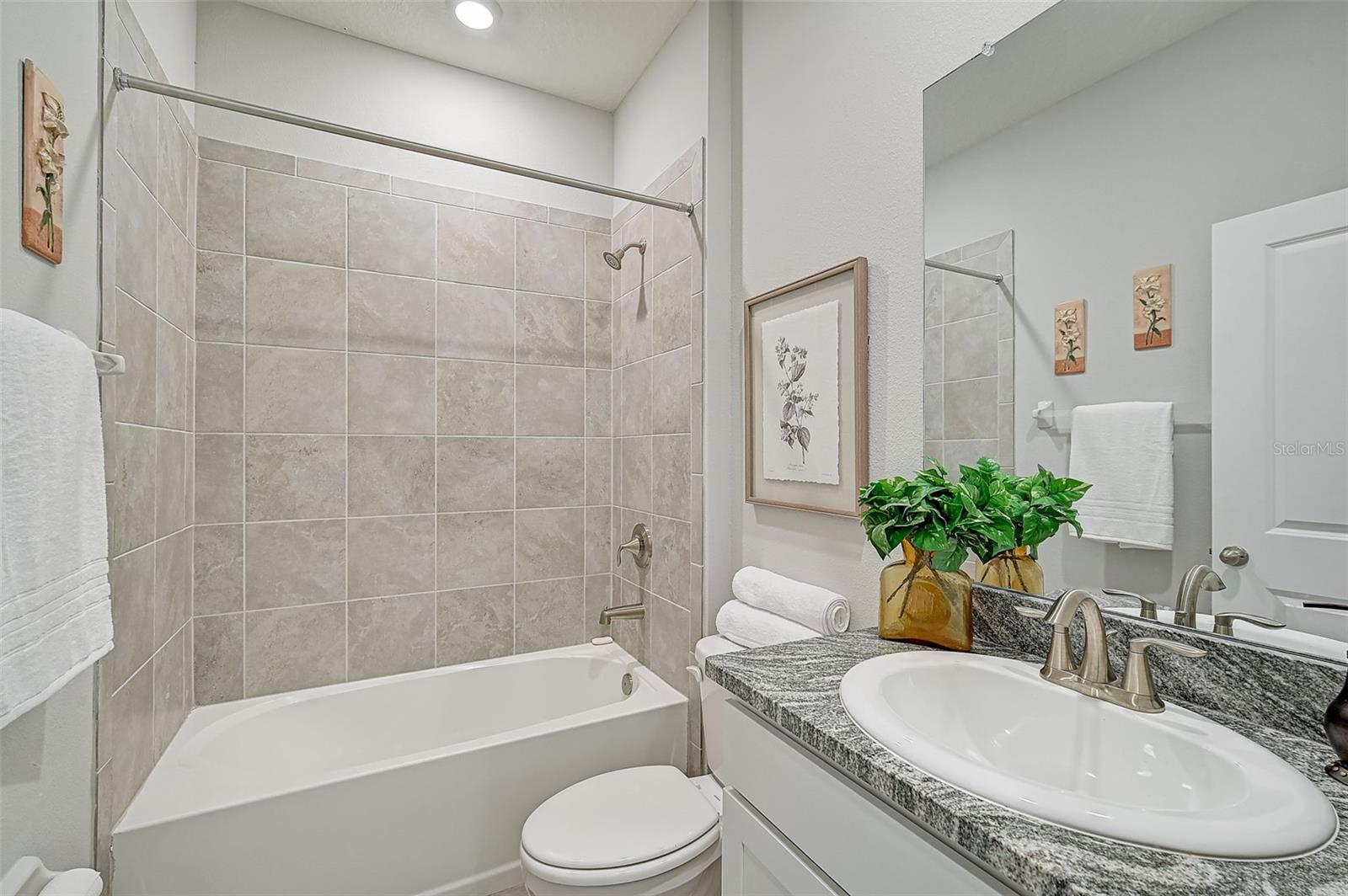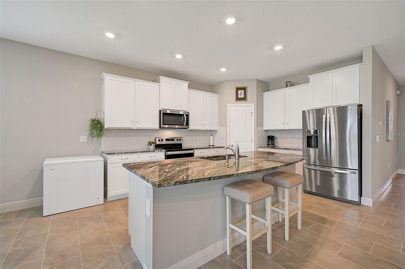 BETTER THAN NEW WITH THOUSANDS OF UPGRADES ALREADY DONE FOR YOU! SAVE THOUSANDS WITH AN ASSUMABLE 4.75% MORTGAGE AND LOW CLOSING COSTS! This well-maintained home, nestled in a vibrant and friendly community, offers a blend of comfort and convenience that caters to every facet of modern living. With a generously sized 2056 sq ft layout, this home features 4 bedrooms and 2.5 bathrooms, providing ample space for families, entertainers, and home office enthusiasts alike. The interior of the home is illuminated by natural light, showcasing the beautiful PLANTATION SHUTTERS that provide both privacy and style throughout. The attention to detail is immediately apparent, with high-value upgrades including a WHOLE HOUSE WATER FILTRATION SYSTEM, ensuring pristine water quality for you and your loved ones. The heart of the home is the kitchen, which boasts modern appliances such as a NEW WHIRLPOOL REFRIGERATOR, complemented by cabinets with crown molding, a walk-in pantry, tiled backsplash, and breakfast bar seating. It opens up to a spacious living area, complete with sliders that lead out to a SCREENED LANAI - the perfect setting for relaxation or entertaining guests and a FULLY FENCED BACK YARD. The primary suite is a true retreat, featuring a tray ceiling, recessed lighting, and an ensuite that promises to be your own personal spa. Additionally, the property enjoys the benefits of a maintenance-free yard, front gutters, a sink in the garage for convenience, and hurricane shutters for peace of mind. Living here means you’re also part of a fantastic community with access to a pool and playground, perfect for fun days without leaving the neighborhood. Don't miss the opportunity to create endless memories in this beautiful home, where every detail has been considered for your utmost comfort and convenience.