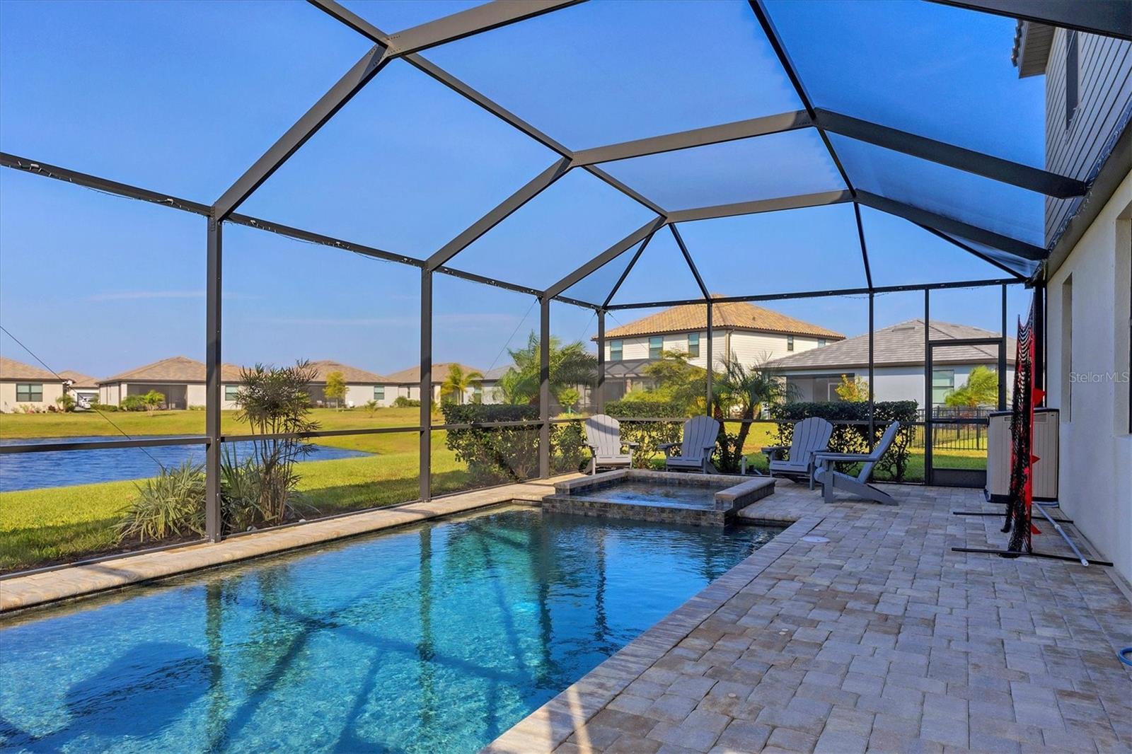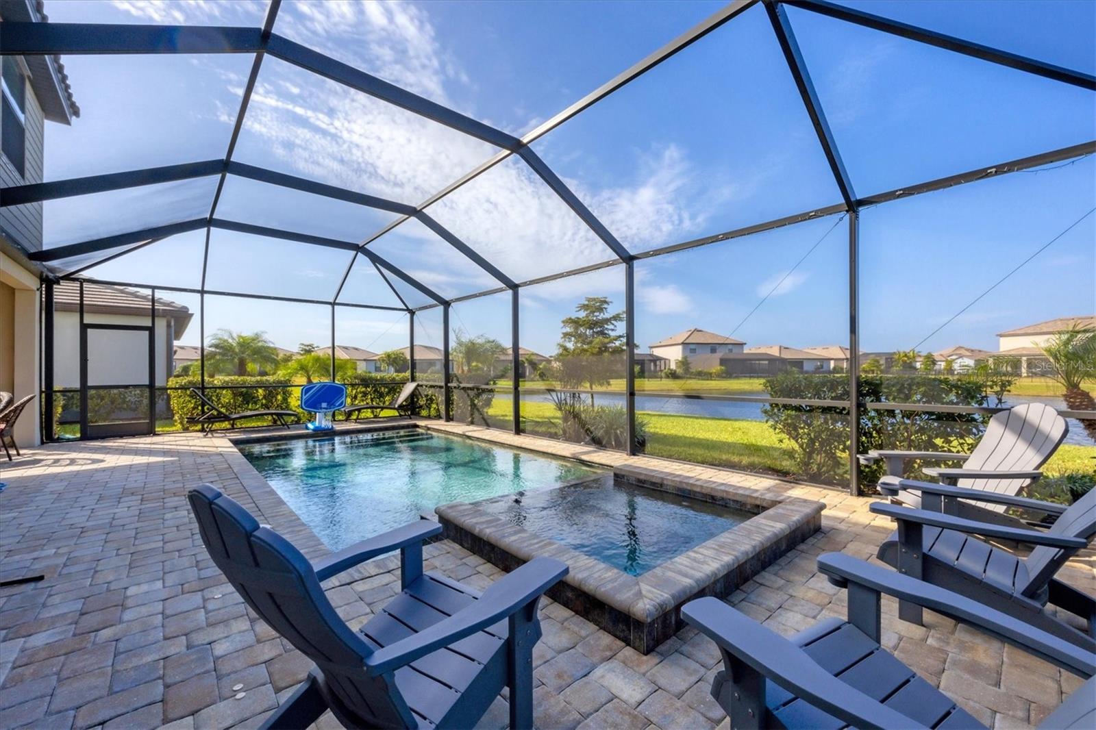 Welcome to your dream home in the amenity-rich community of Lorraine Lakes! Located in Lakewood Ranch, this stunning 3,200 sq/ft Monte Carlo model boasts 5 bedrooms, 3 bathrooms, a large bonus room, and a 3 car garage. The pool has been converted to salt water, and features a hot tub. Relax and entertain on the beautiful screened-in lanai overlooking the water. Built in 2021, this home features a spacious open floorplan with high ceilings and tons of natural light. Located in the sought-after Lorraine Lakes community, residents have access to the amenity center with two pools, a splash pad, indoor/outdoor bar and restaurant, pickleball, tennis, basketball, putting green, bocce ball, volleyball, arcade, café, fitness center, TRX room, playroom, sauna, community room, and a full-time lifestyle director. Enjoy a variety of events such as trivia nights, holiday brunches, luaus, wine tastings, country line dancing lessons, mixers, and more. With convenient access to major highways, gated entry with a 24-hour guardhouse, and a prime location not far from shopping, dining, and entertainment, this home offers the ultimate in luxury living. Don't miss out on this incredible opportunity to own a piece of paradise in Lorraine Lakes. All MLS information is to be confirmed by the buyer's agent/buyer during inspection period. **Motivated sellers.**