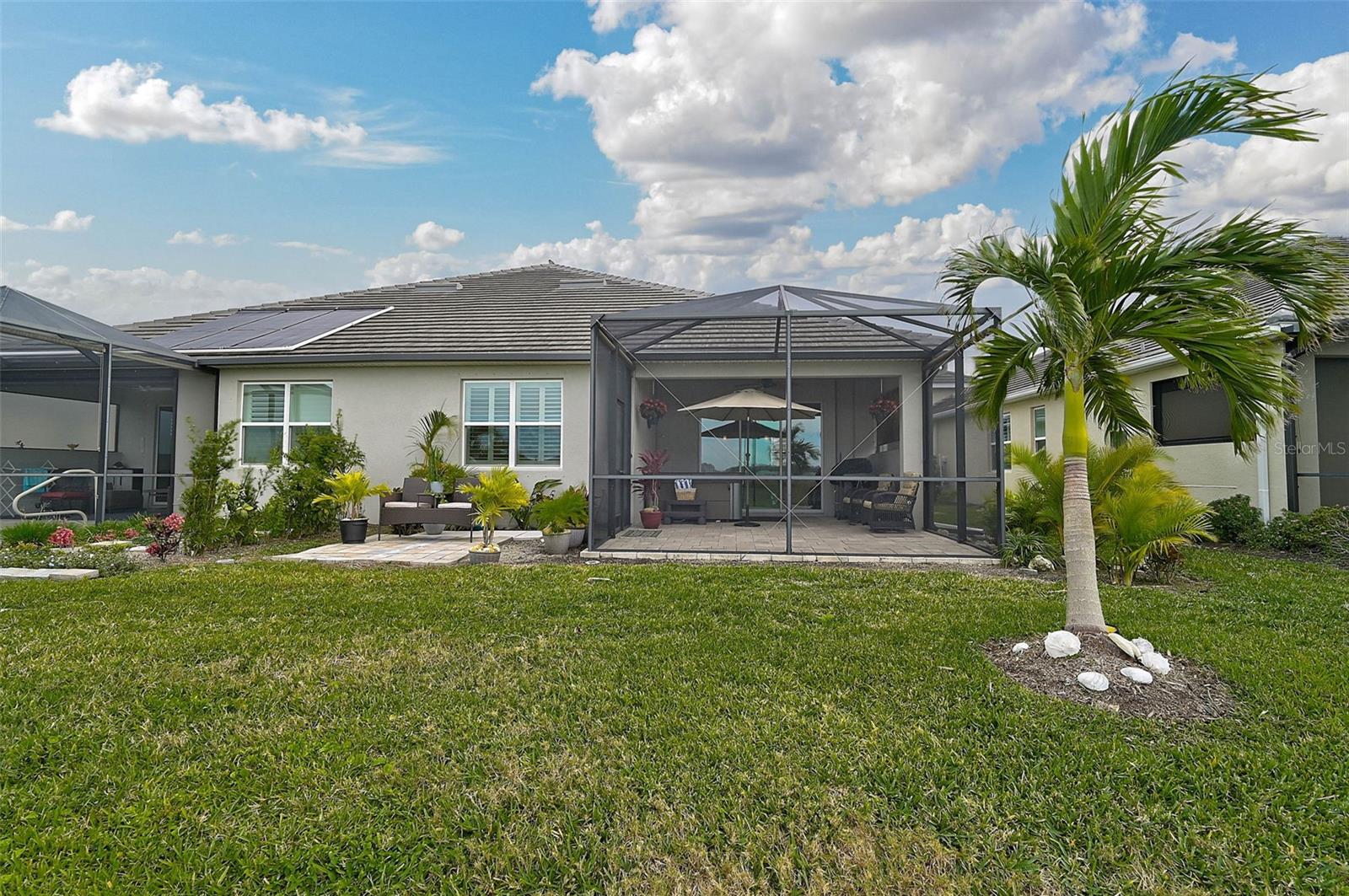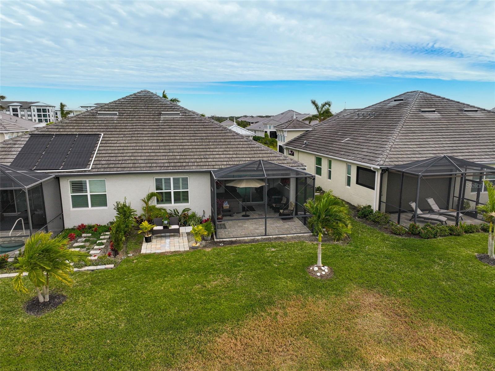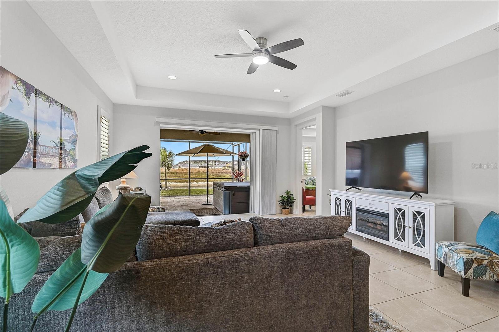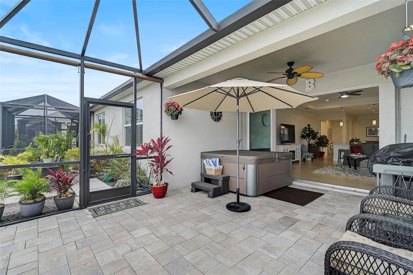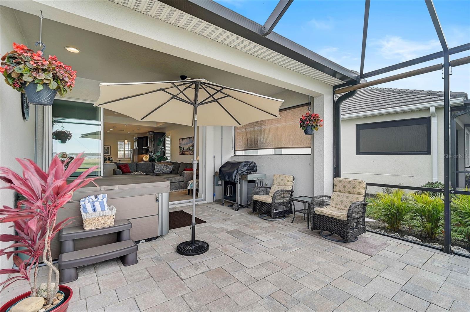 Welcome to this charming villa nestled in the sought-after neighborhood of Watercolor Place, where the owners have spared no expense on high-end updates and upgrades to create a truly luxurious living experience with most recent update of adding no-see-um screen enclosure to the front porch! This beautifully maintained home features 2 spacious bedrooms and 2 full bathrooms, offering a perfect blend of comfort and style. Step inside to an open and airy floor plan with tray ceilings that add a touch of sophistication to the living areas. The living room is perfect for gatherings, boasting ample natural light and a seamless flow into the kitchen and dining area. The gourmet kitchen is a chef’s dream, whether you're preparing a meal for family or hosting a dinner party, this space offers both functionality and style. Relax and unwind in the luxurious master suite with its own tranquil water views. The beautifully updated master bath features a spacious shower and dual vanities providing the perfect space to rejuvenate after a long day. Enjoy the Florida lifestyle to the fullest with an extended, paved lanai—ideal for outdoor entertaining. Soak in the hot tub as you take in the peaceful surroundings or host a gathering in this beautifully designed outdoor space. The home also boasts a pristine garage with epoxy flooring, offering both durability and a sleek, modern look. Don't miss the opportunity to own this spectacular home. Schedule your private showing today!