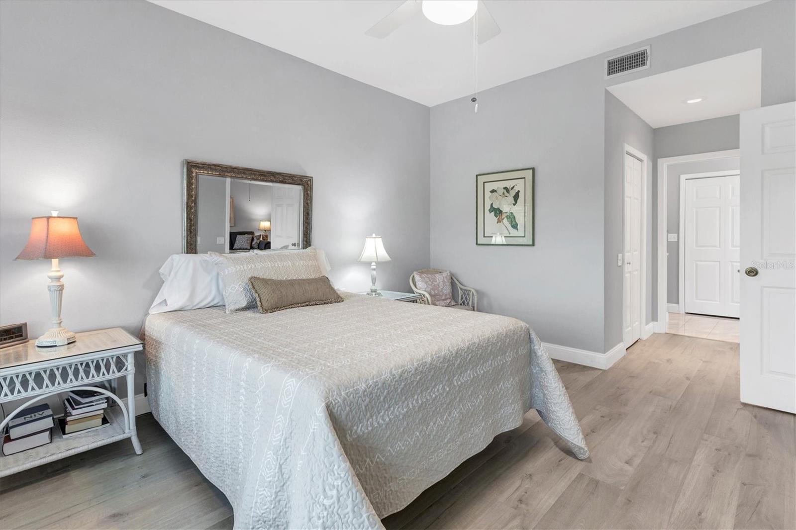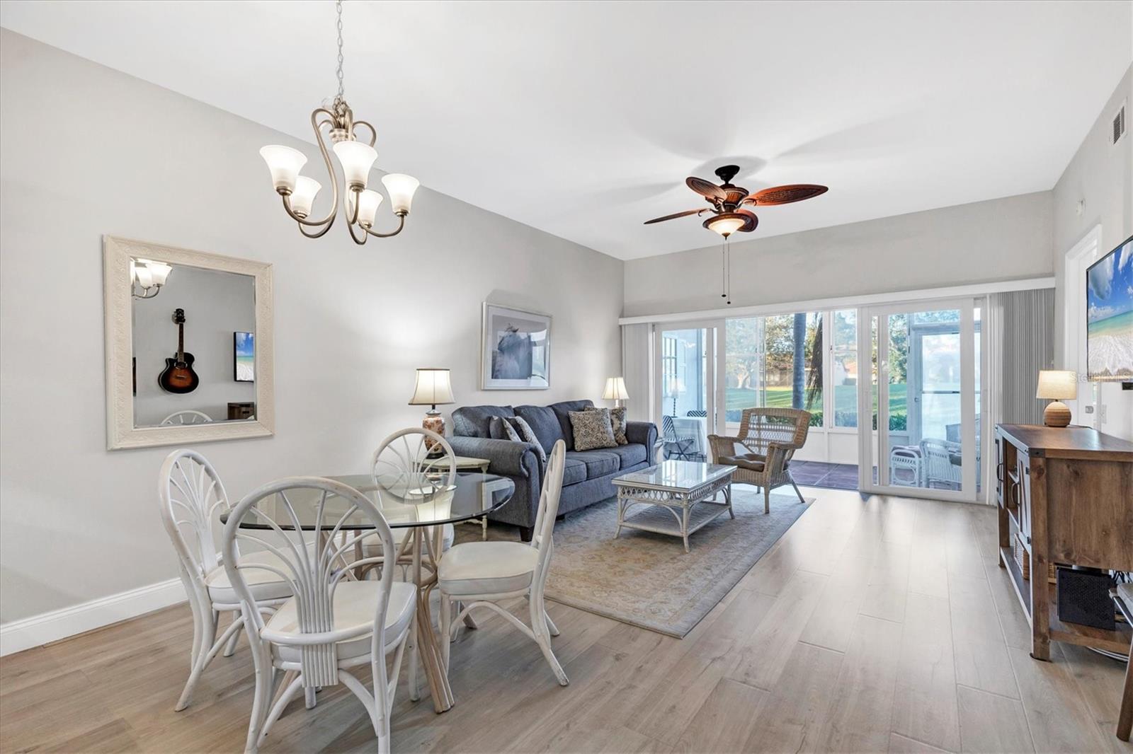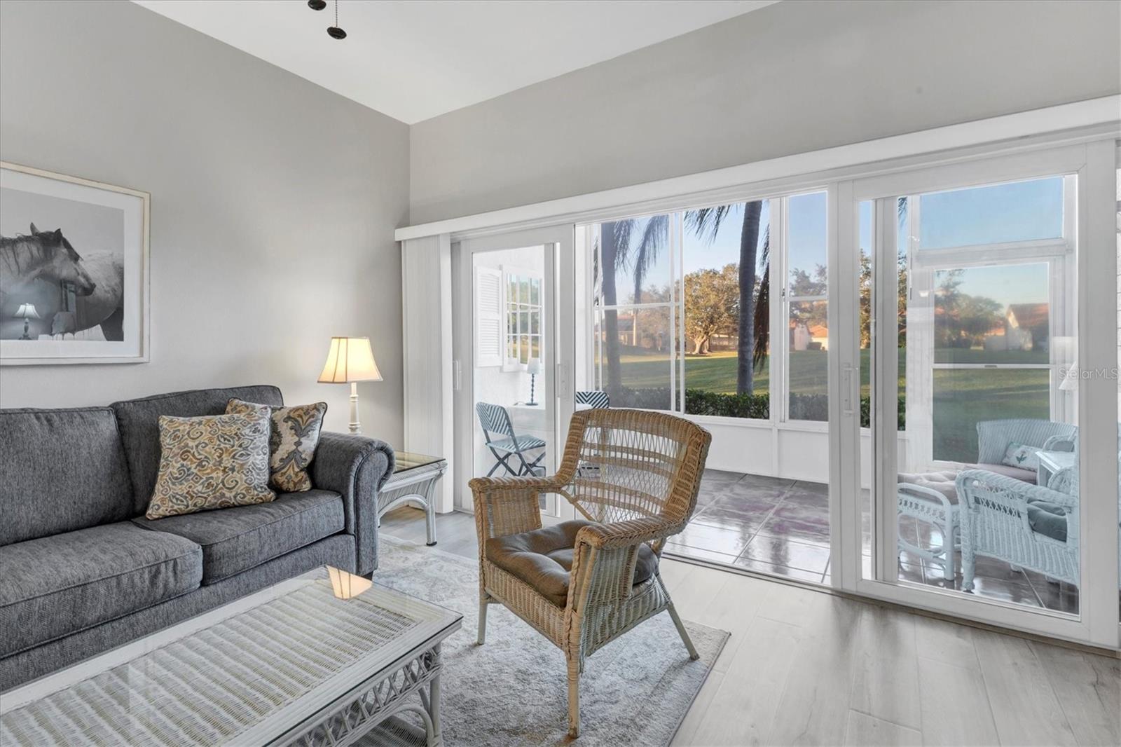 ****PRICE REDUCED****MOTIVATED SELLERS****This beautifully updated 2-bedroom, 2-bathroom condo in Fairway Trace at Peridia Golf and Country Club is an incredible value! Featuring all-new hurricane impact windows and slider, a recently replaced air conditioner, hot water heater, washer and dryer, this home is move-in ready and impeccably maintained. Say goodbye to popcorn ceilings and carpet—this condo boasts modern finishes and a light, relaxing atmosphere. Located on the first floor, with HIGH ceilings, it offers stunning golf course views and is ideal as a vacation getaway or full-time residence. The split floor plan provides ample space for entertaining or hosting guests, while the in-unit washer and dryer ensure laundry is hassle-free. A private garage with additional storage offers space for seasonal car storage or extra belongings. Fairway Trace residents enjoy exclusive access to their own pool and cabana area. The Peridia Golf and Country Club adds even more appeal with amenities such as pickleball, tennis, a heated pool, bocce ball, an executive 18-hole golf course, a pro shop, and an on-site restaurant and bar. Engaging social activities, including dances and mahjong, make it easy to connect with neighbors, all within walking distance of your home. Plus, this is not a 55+ community! Conveniently located just minutes from the University Town Center, Anna Maria Island beaches, Sarasota Airport, I-75, Riverwalk, and numerous parks, this condo offers the perfect blend of relaxation and accessibility.