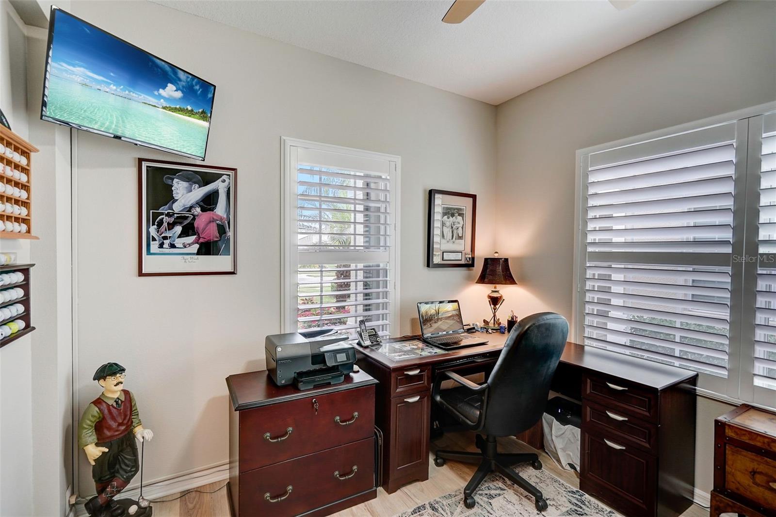 Incredible opportunity to own a wonderfully updated, villa in the maintenance-free, gated community of Fairfield with LOW HOA fees. A covered entryway greets you and is a great place to enjoy a morning coffee and chat with neighbors, and is made possible by a recently added remote-controlled roll-down screen installed above. Coming inside, you’ll first notice the beautiful high-end luxury vinyl plank flooring installed throughout the common areas. The home interior has been freshly painted with an in-vogue light gray. Nominally a full 2 bed 2 bath, a den space has been updated so it can be closed off and includes a murphy bed, making for a ready-made third sleeping area. An open kitchen comes outfitted with lovely granite countertops, a GAS stove, and plenty of cabinet space, including an awesome pull-out pantry. Tall ceilings allow for plenty of natural light and help accentuate the size of the kitchen/living space. Glass sliders lead out from the spacious living room to a private screened lanai, perfect for entertaining or taking in a beautiful Florida evening. All of the windows are outfitted with charming plantation shutters and the lanai slider can be closed up with an easy-to-use modern Vertiglide blind. The owner’s suite is a generously-sized room and comes complete with his-and-her closets. The master bath also comes with two vanities and a nice, large walk-in shower with the valve nicely situated right where you step in. Storage is no issue in this home: the laundry closet (equipped with two nice front loading LG units) has extra shelving and across the way the linen closet was expanded to add depth and space. This villa comes with a two-car garage outfitted with new shelving and cabinetry for extra storage. Other features of note include the addition of gutters around the house, high-end fan in the living room, and new screen for the front door. Fairfield is a quiet, friendly neighborhood where one can make use of a massive pool area that includes a jacuzzi and grilling area. A clubhouse and gym are also part of the amenities. The community is conveniently located near I-75 close to shopping and dining options, and an easy drive to Sarasota’s happening University Town Center. Being in a gated community where the HOA covers exterior maintenance (including the roof, landscaping, and exterior painting) and given it is turn-key furnished (“just bring your toothbrush”), this wonderful villa is absolutely picture perfect for snowbirds or retirees, anyone who is looking for their own slice of paradise without the hassle or the worry. It is a fantastic fit for any buyer: move-in ready and with low HOA fees, this is a great opportunity for anyone coming to enjoy the Florida life at an affordable price. Schedule your showing today!