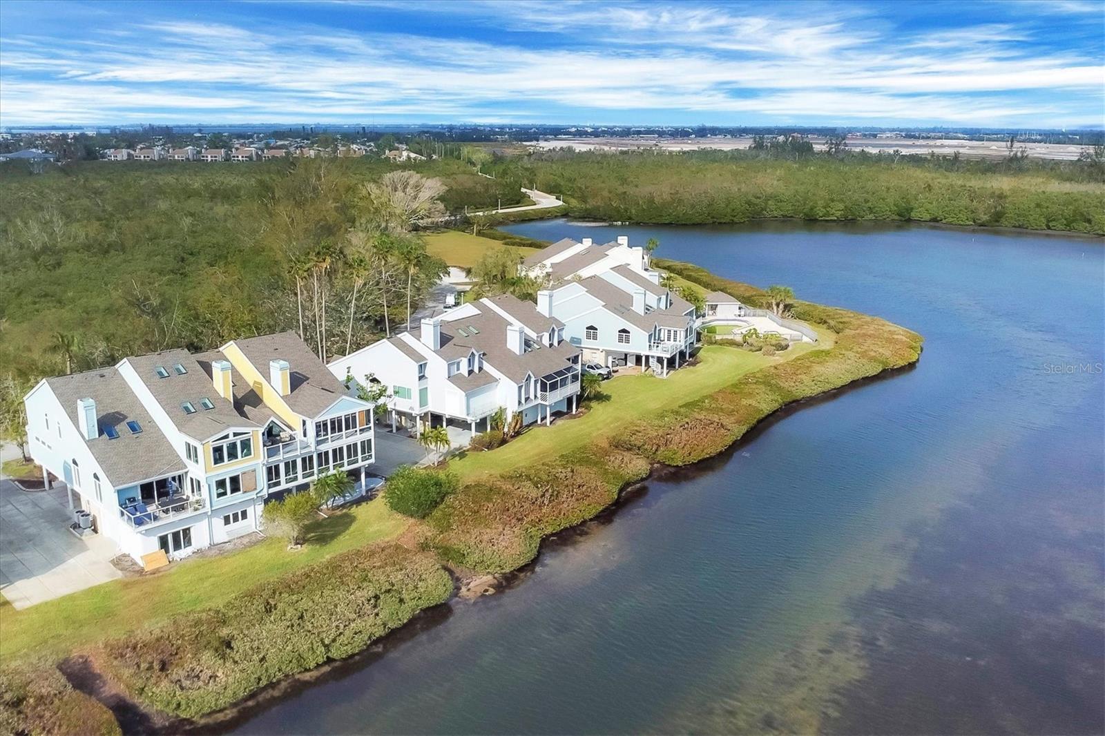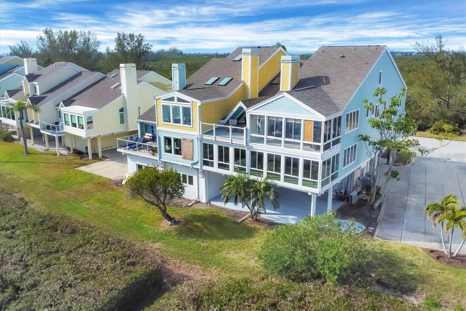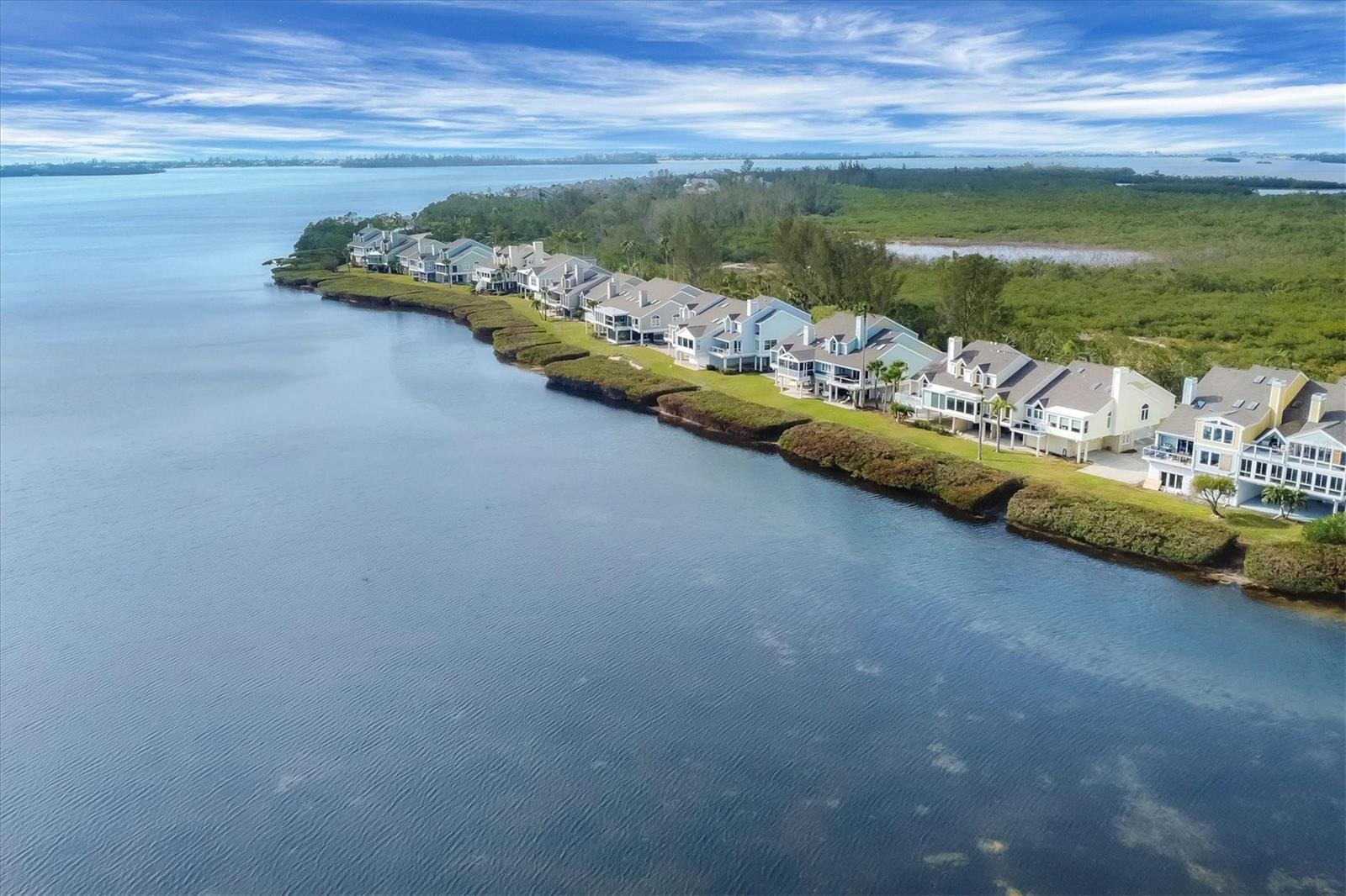 TRANQUIL, EXCLUSIVE, SECURE, AND VERY, VERY PRIVATE. Away from it all but not too far! Come home to Tidy Island and enjoy the best of two worlds. A tranquil, secure, private, residential lifestyle. And when you want them, a multitude of nearby cultural, educational, sport and recreational facilities. Plus quick access to fine dining, shopping, and the best beaches in the world, and a short run to the Sarasota-Bradenton Airport. Rarely available 3 bd/3.5 bath "Aerial" end unit with over 4100 sq ft. of waterfront living on Sarasota Bay. So many extras to list such as the Brazilian tigerwood flooring throughout the house and finished touches as river stone flooring and cherry wood Cabinets. Tidy Island is a 230 acre island and has a deep regard for preservation of the environment as 140 acres of the Island is dedicated as a bird sanctuary. Tidy Island also provides the best in amenities such as: 2-Mile waterfront panorama, 3100 sq ft rec. center, 2 swimming pools, hot tub, tennis courts, nature trail, historical museum, and 24-hour security. Schedule your private appointment and come home to your own private island and maintenance-free living.