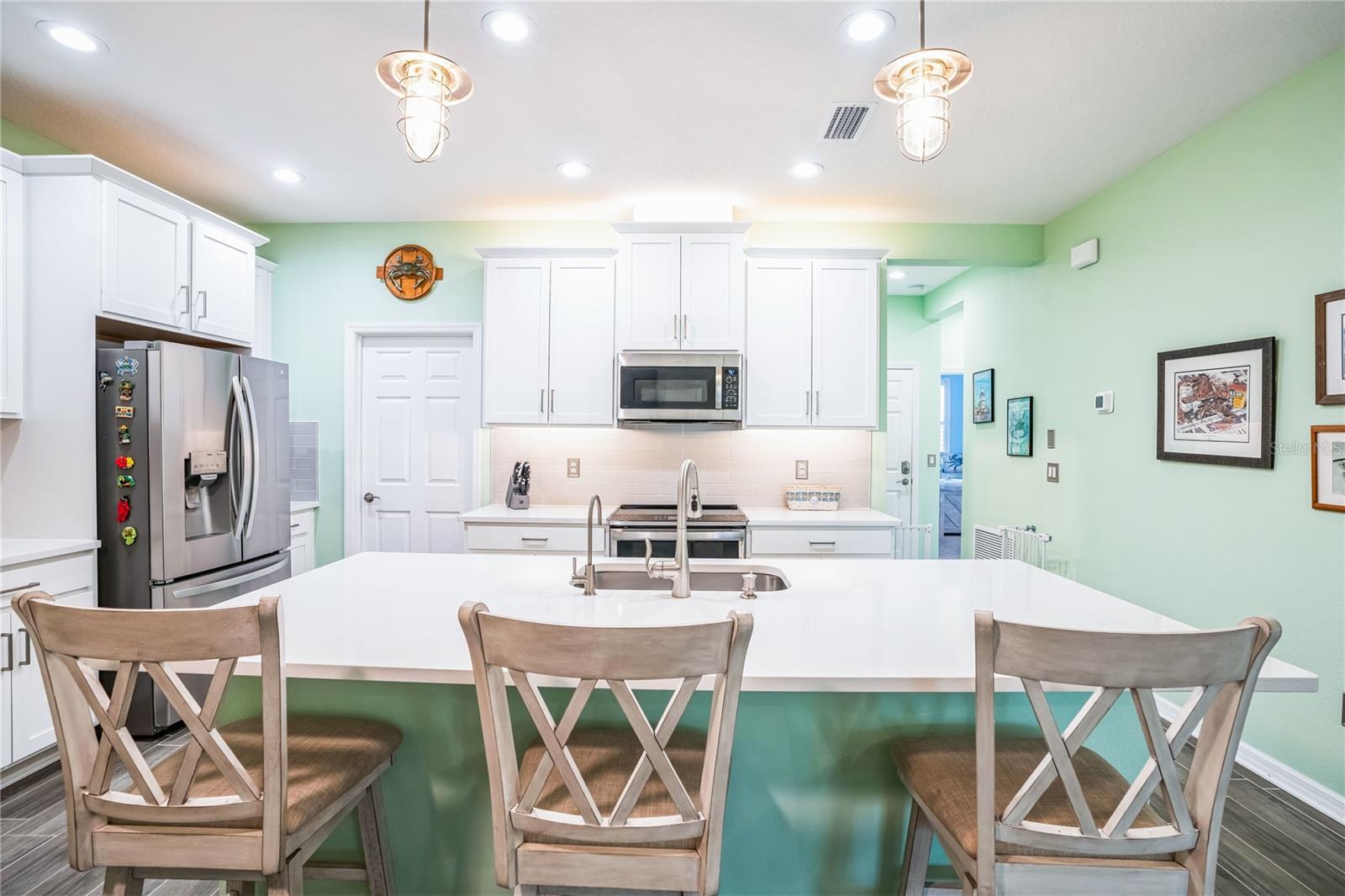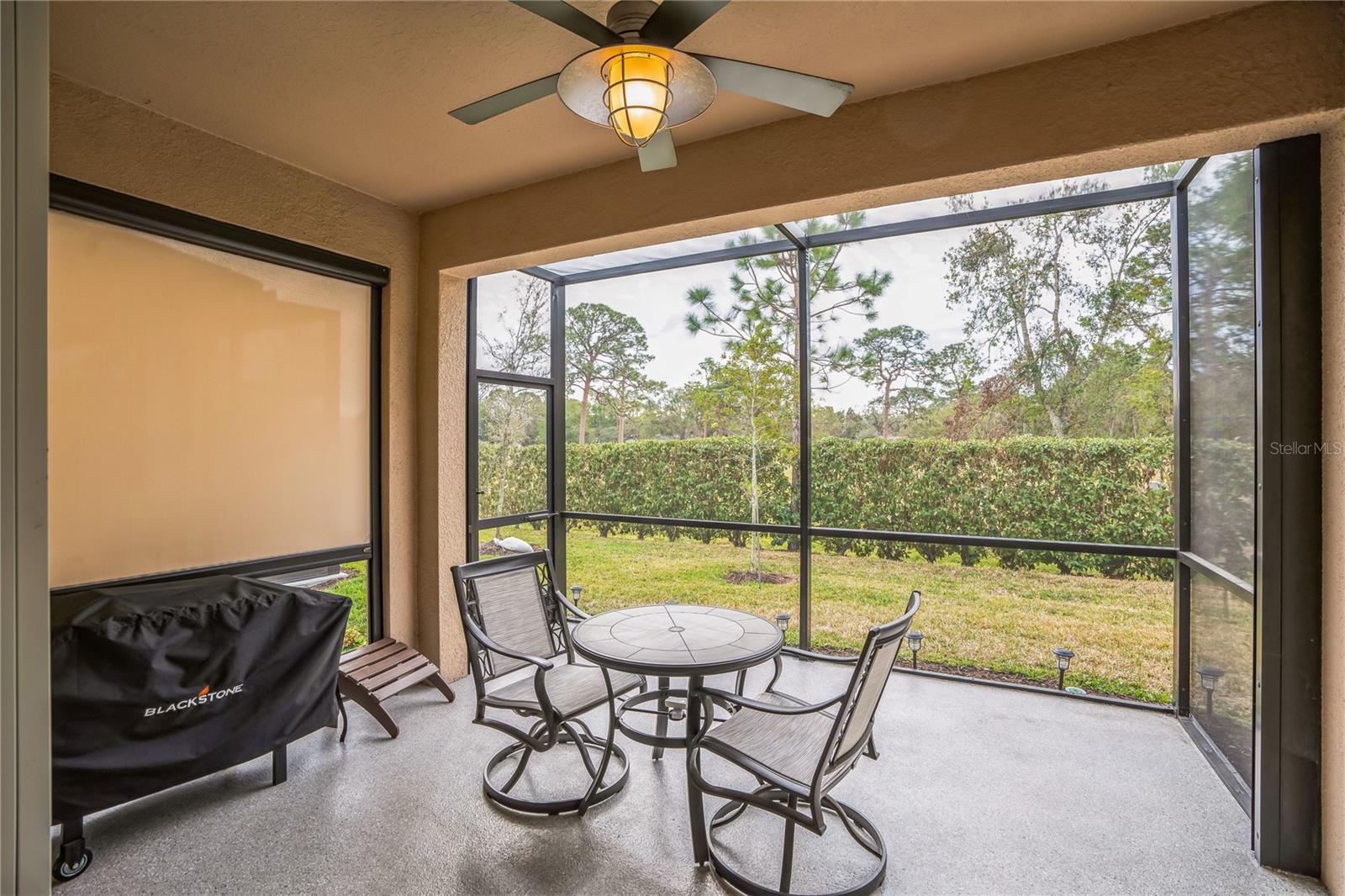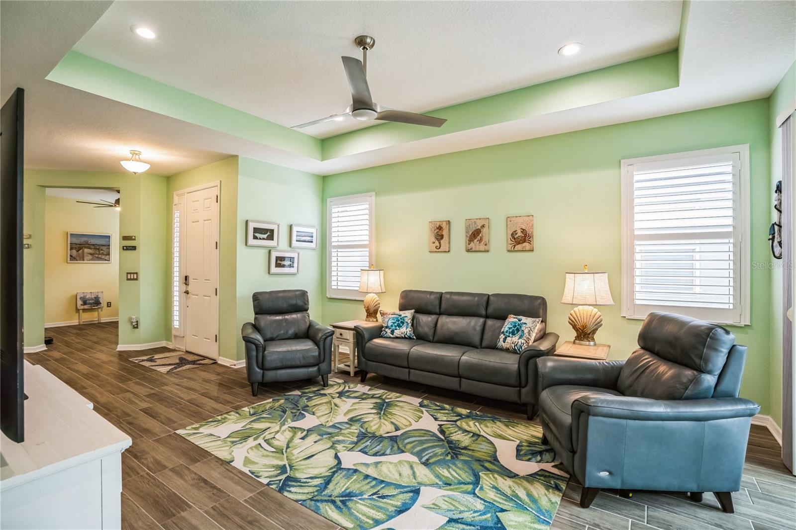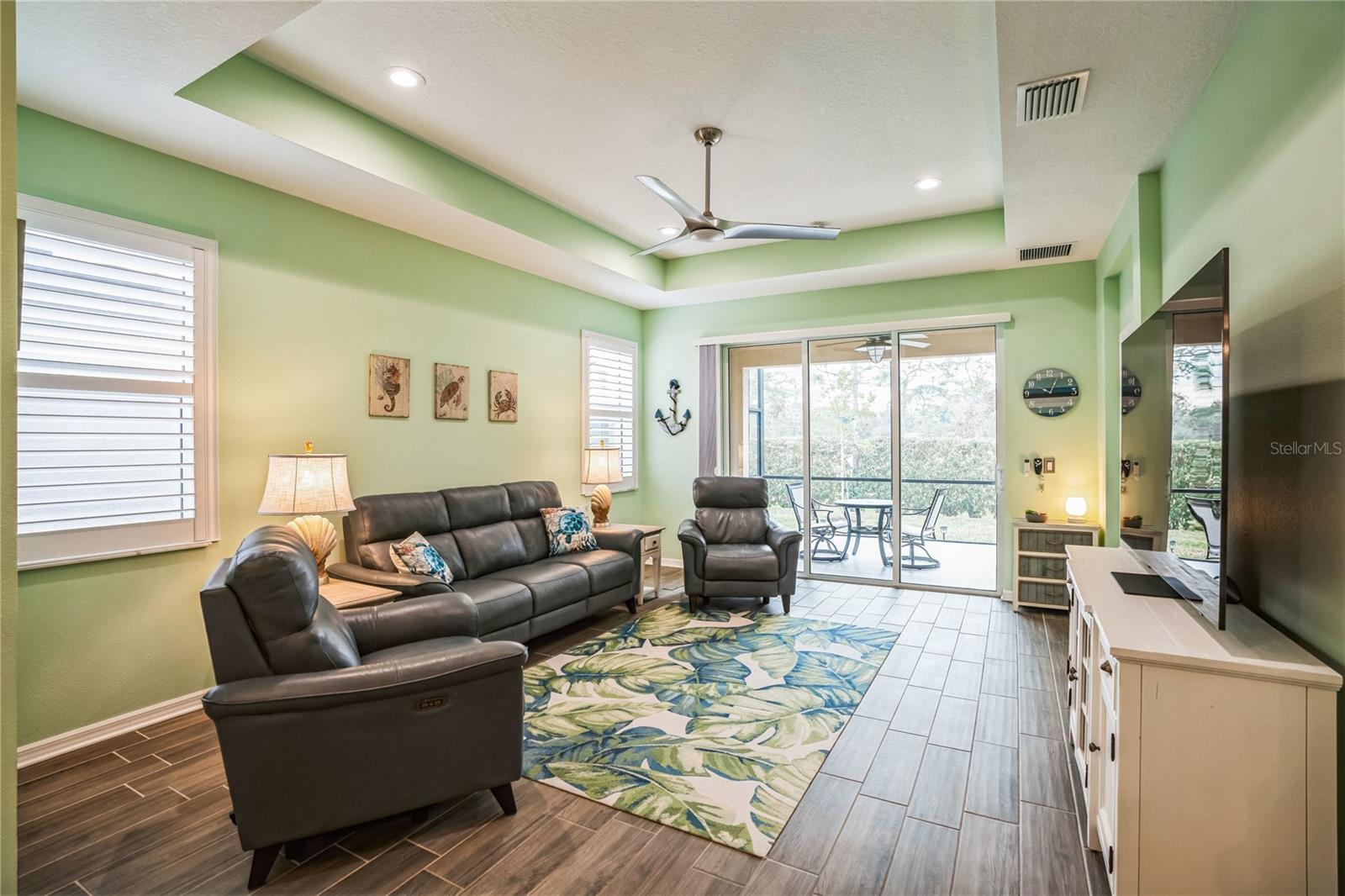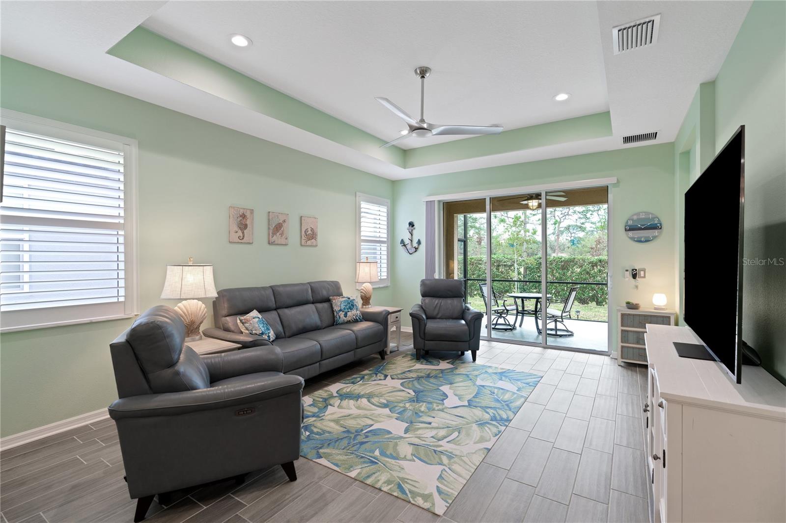 Reduced $10K! Experience the pinnacle of modern luxury living in this stunning residence built in 2022! This meticulously crafted home features an open floor plan that seamlessly combines style and functionality. Upon entering, you'll be greeted by the expansive living area, complete with high tray ceilings, elegant crown molding, and beautiful tile flooring throughout the great room and bathrooms, creating an atmosphere of spacious elegance. The chef’s kitchen is a true masterpiece, showcasing a spectacular quartz island that encourages culinary creativity and casual dining. Premium GE Profile stainless-steel appliances: Double oven, and convection microwave enhance your cooking experience by ensuring both beauty and efficiency, while a walk-in pantry and 42-inch soft-close wood cabinetry, reverse osmosis add luxurious details. Unwind in two generously sized bedrooms designed with a split floor plan, including a primary suite featuring a custom closet that maximizes organization and storage. The en suite bathroom offers a spa-like retreat, complete with a walk-in glass shower, herringbone tile, and a quartz shower seat. Should you need a dedicated workspace or workout room, the den provides an ideal setting for productivity or relaxation. The second full bathroom showcases a custom walk-in glass shower, herringbone tile flooring, and tile surrounding the ceiling for a polished look. Step outside to the expanded screened lanai with a 5-foot extension, where you can enjoy serene views of the natural surroundings. For added privacy, two electric retractable screen is a great feature. Convenience continues with a spacious two-car garage that includes an epoxy floor and an electric retractable screen door for ventilation while keeping unwanted pests outside. All wall mounted TV's will convey with the property. The HOA offers incredible value with low fees that cover amenities such as a community pool, lawn care, exterior power washing, pest control, and roof replacement. This is your chance to embrace luxury living in the highly desirable gated community of Amberly. The property is located in Flood Zone X, meaning the current owner does not have to pay for flood insurance. It’s approximately 12 miles to Sarasota Airport and 15 miles to Anna Maria Island, Bradenton Beach, and Holmes Beach, where you can even go horseback riding! Plus, you’ll be close to shopping and modern conveniences. Schedule your showing today and experience the best of contemporary living!