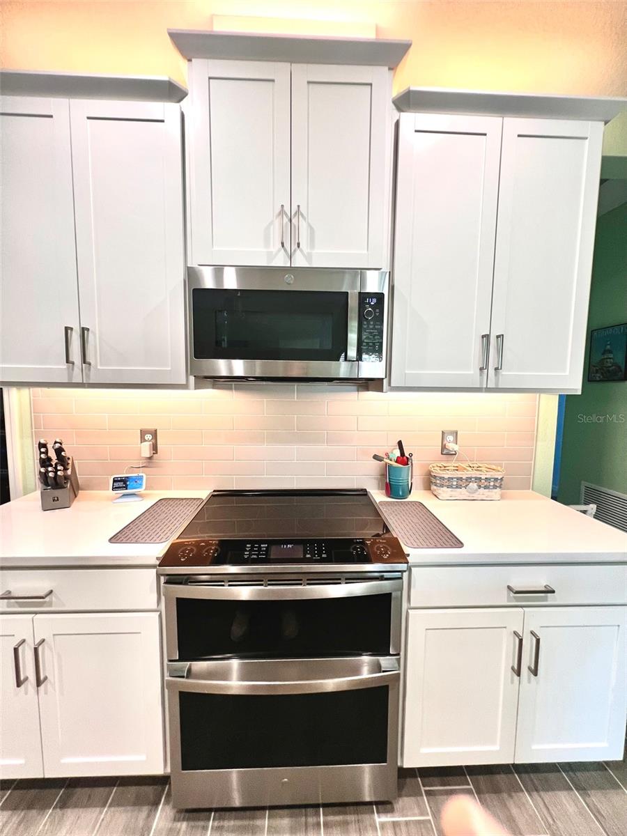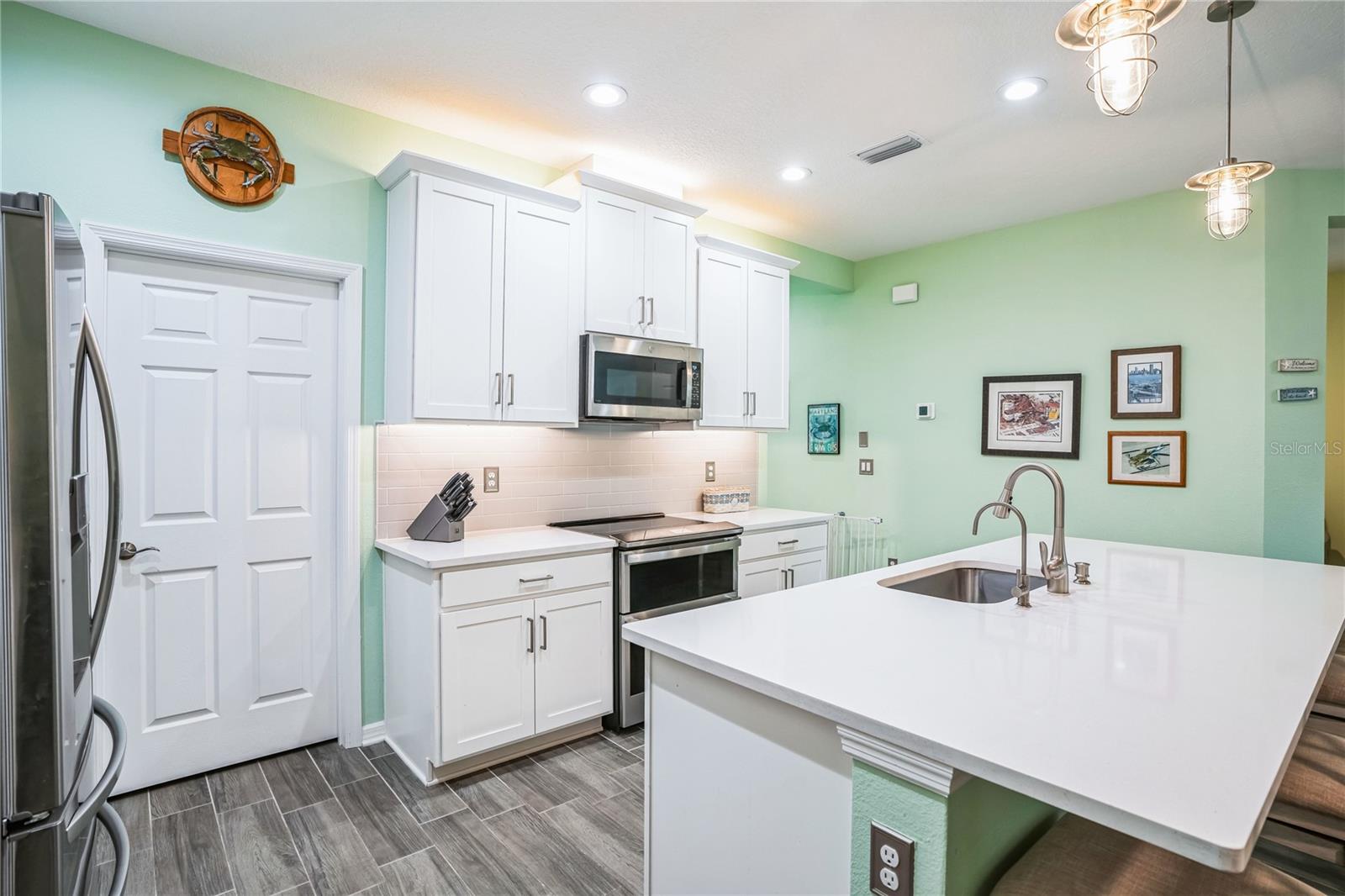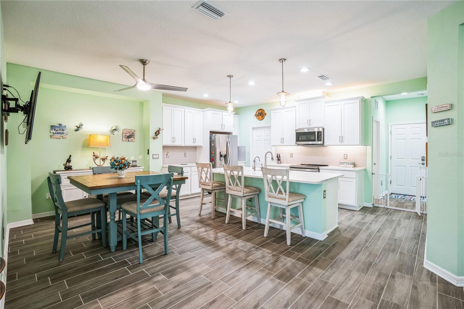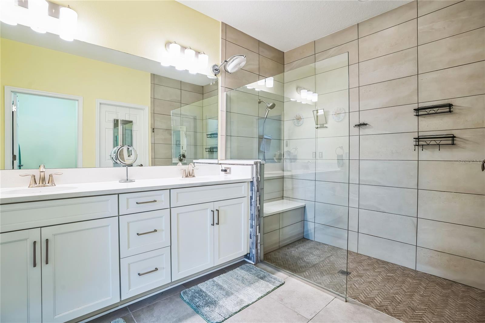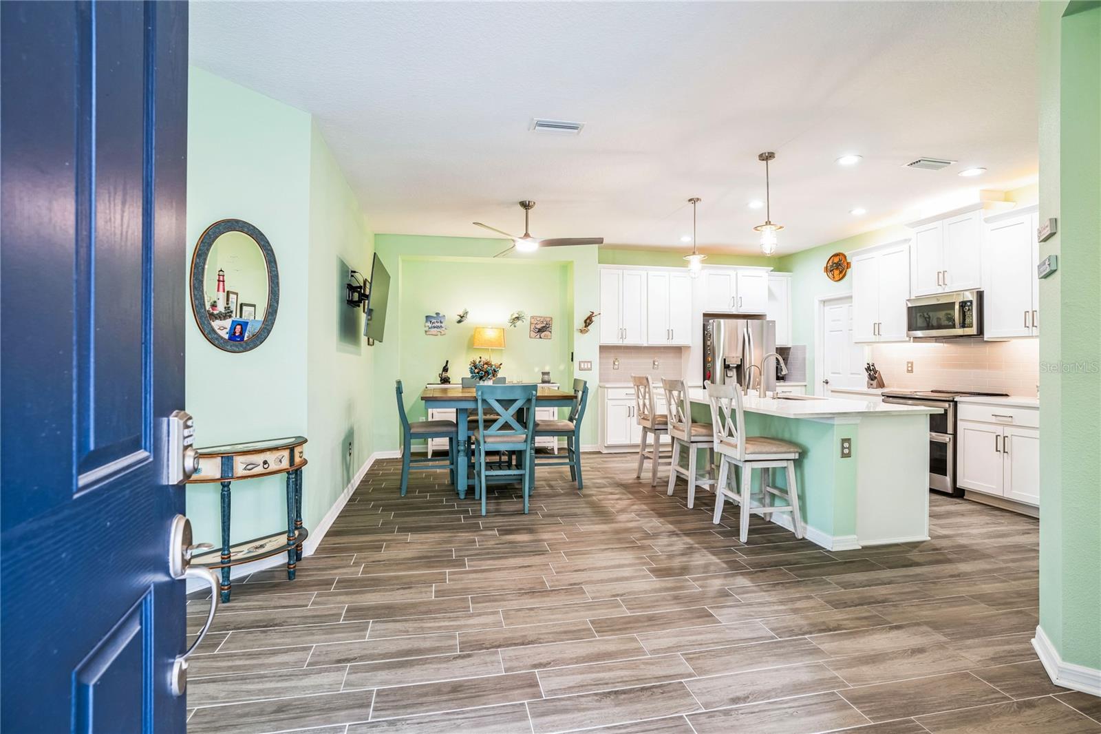 Reduced $10K! Experience the pinnacle of modern luxury living in this stunning residence built in 2022! This meticulously crafted home features an open floor plan that seamlessly combines style and functionality. Upon entering, you'll be greeted by the expansive living area, complete with high tray ceilings, elegant crown molding, and beautiful tile flooring throughout the great room and bathrooms, creating an atmosphere of spacious elegance. The chef’s kitchen is a true masterpiece, showcasing a spectacular quartz island that encourages culinary creativity and casual dining. Premium GE Profile stainless-steel appliances: Double oven, and convection microwave enhance your cooking experience by ensuring both beauty and efficiency, while a walk-in pantry and 42-inch soft-close wood cabinetry, reverse osmosis add luxurious details. Unwind in two generously sized bedrooms designed with a split floor plan, including a primary suite featuring a custom closet that maximizes organization and storage. The en suite bathroom offers a spa-like retreat, complete with a walk-in glass shower, herringbone tile, and a quartz shower seat. Should you need a dedicated workspace or workout room, the den provides an ideal setting for productivity or relaxation. The second full bathroom showcases a custom walk-in glass shower, herringbone tile flooring, and tile surrounding the ceiling for a polished look. Step outside to the expanded screened lanai with a 5-foot extension, where you can enjoy serene views of the natural surroundings. For added privacy, two electric retractable screen is a great feature. Convenience continues with a spacious two-car garage that includes an epoxy floor and an electric retractable screen door for ventilation while keeping unwanted pests outside. All wall mounted TV's will convey with the property. The HOA offers incredible value with low fees that cover amenities such as a community pool, lawn care, exterior power washing, pest control, and roof replacement. This is your chance to embrace luxury living in the highly desirable gated community of Amberly. The property is located in Flood Zone X, meaning the current owner does not have to pay for flood insurance. It’s approximately 12 miles to Sarasota Airport and 15 miles to Anna Maria Island, Bradenton Beach, and Holmes Beach, where you can even go horseback riding! Plus, you’ll be close to shopping and modern conveniences. Schedule your showing today and experience the best of contemporary living!