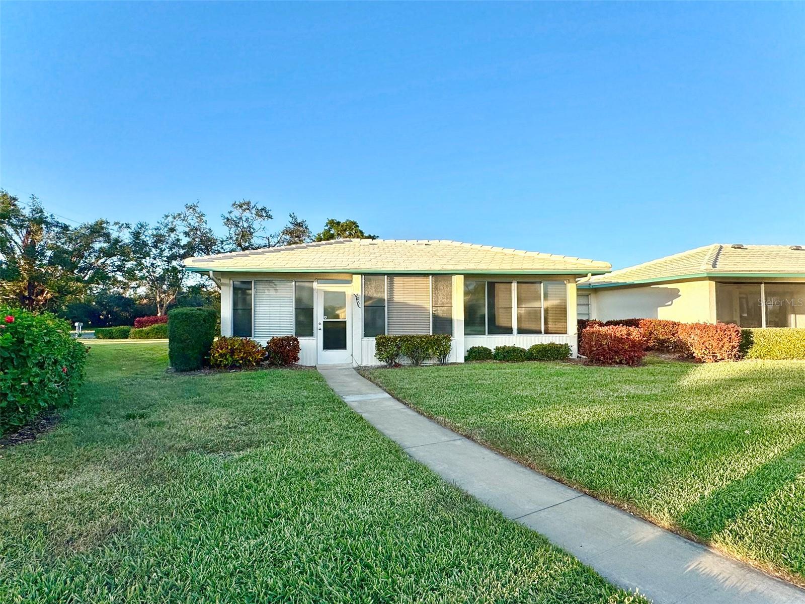 Nestled on a serene private cul-de-sac street lined with majestic trees and lush foliage, this delightful 2-bedroom, 2-bath Villa offers a relaxed lifestyle in the sought-after, pet friendly, 55+ community in Village Green of Bradenton. Located in a popular West Bradenton neighborhood, this home boasts proximity to IMG Sports Academy, State College of Florida, Blake Hospital, Anna Maria Island beaches, boat ramps, golf courses, GT Bray Park with lighted pickleball and tennis courts, as well as vibrant shopping and dining options. Nature enthusiasts will love the nearby Robinson Preserve, featuring kayak launches and miles of scenic walking trails. Step inside to discover a welcoming interior with a spacious eat-in kitchen, complete with updated cabinets, granite countertops, stainless steel appliances, and a convenient pantry closet. Adjacent to the kitchen, the impressive utility room boasts a stacked washer/dryer, ample cabinetry, granite countertops, and a utility sink, with direct access to the 1-car carport. The expansive living room flows seamlessly into a light and airy Florida room, fully air-conditioned and offering tranquil greenspace views. Step out the back door to a shuffleboard court or take a short stroll to the community pool for relaxation and socializing. The expansive living room flows into a light and airy Florida room, fully air-conditioned and offering tranquil greenspace views. Step out the back door to a shuffleboard court or take a short stroll to the community pool for relaxation and socializing. The master suite is a retreat of its own, featuring a walk-in closet, a linen closet, and an ensuite bathroom. Designed for comfort and ease, this home embodies the charm and tranquility of this quiet enclave. Don’t miss this opportunity to embrace a relaxed and vibrant lifestyle in Village Green of Bradenton. Property is being sold as/is. Room sizes are approximate & to be confirmed by buyer and/or buyer’s agent.