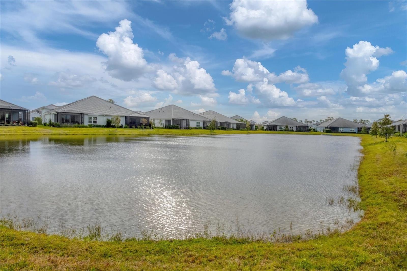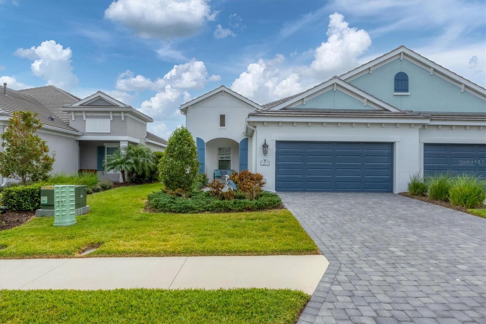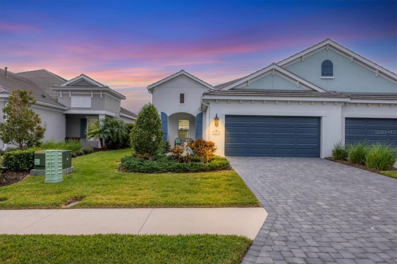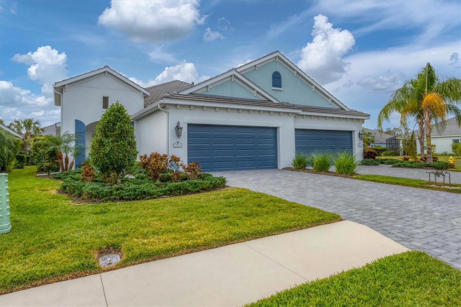 Feast your eyes on this stunning ''Sandcastle'' 2021 built villa that was constructed to the most recent HURRICANE building codes! This meticulously cared for villa boasts 3 bedrooms, 2 bathrooms, a generous sized study/den, indoor laundry room, large two-car garage and extended lanai with premium pavers! This home is situated next to a cul-de-sac AND an emergency only gate which makes this one of the quietest streets in the community. Your new villa also has ''smart home'' capabilities which allows you to remotely adjust your thermostat, open and close your garage as well as lock and unlock the front door! Rest assured your new villa is built strong and safe with its Insulated cinder block construction, concrete tile roof, HURRICANE IMPACT WINDOWS throughout AND desirable "X'' floodzone. Throughout the home you will find 5 1/4" deco baseboards, LED recessed lighting, 16-seer rated TRANE HVAC, crown molding, upgraded ceramic tile and much more! The luxurious master suite offers TWO oversized walk-in closets, separate his and hers vanities with quartz countertops AND a large walk-in shower with upgraded tile all the way up to the ceiling. The kitchen boasts a large Island with breakfast bar, custom pullouts for convenient storage, 5-burner natural gas stove, matching stainless steel appliances, custom porcelain backsplash and upgraded shaker cabinets that complement the premium granite countertops. The great room with its expansive tall ceilings with crown molding showcases a spacious environment with more than enough room to entertain guests. Open the large three paneled HURRICANE IMPACT sliders and be amazed at the amount of room the paver rich extended screened lanai provides which is truly a peaceful, undisturbed Florida retreat. Your new lanai also comes equipped with a builder grade gas line for a direct connection to your favorite grill OR your own new kitchenette. Indigo is an active community that features a full time on-site manager as well as a full time activities director that manages an extensive calendar of activities for all ages. A-Rated Gullett Elementary AND Mona Jain Middle School are right outside our gates too! You can also expect sidewalks on both sides of the street, ''Oasis'' pool/spa, resort style heated community pool/spa at the main clubhouse where you will find 5 cabanas with an abundance of seating, 4 pickleball courts, 2 bocce ball courts, 24-hour exercise gym, meeting room/banquet room and playground. Indigo is not only a community that takes care of all ground maintenance to include mowing, fertilizing, irrigation, shrubs and mulch but is right around the corner to a plethora of dining, banking, entertainment, public transportation and MORE!