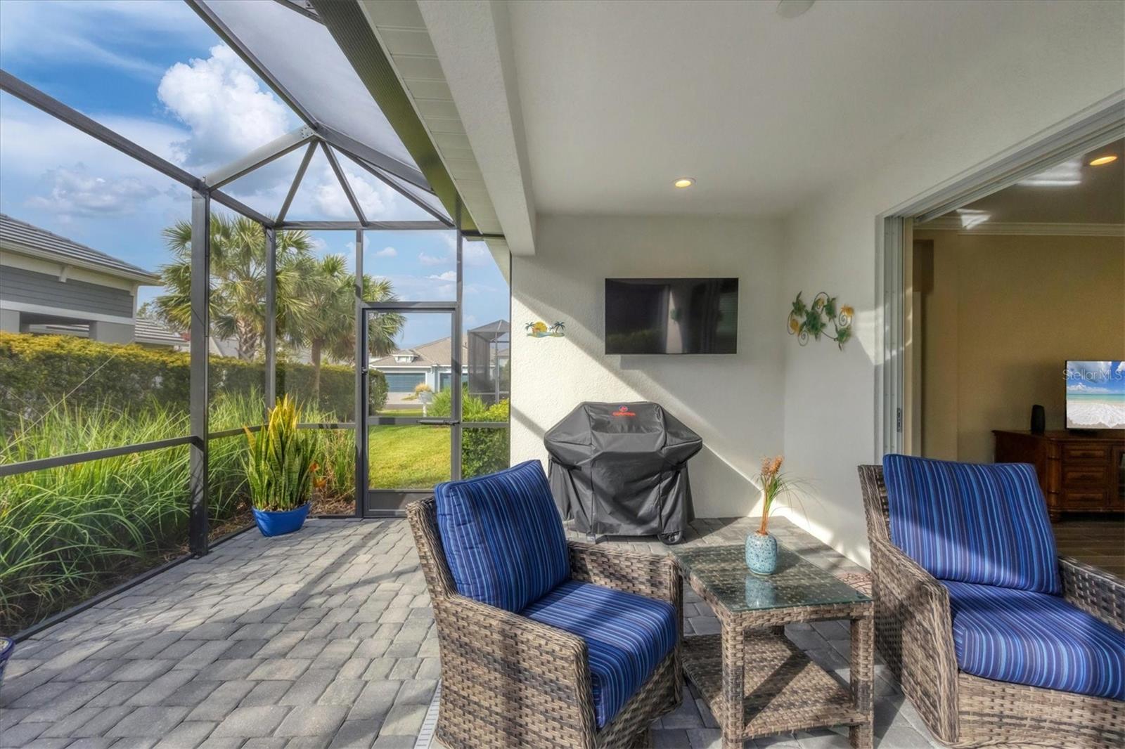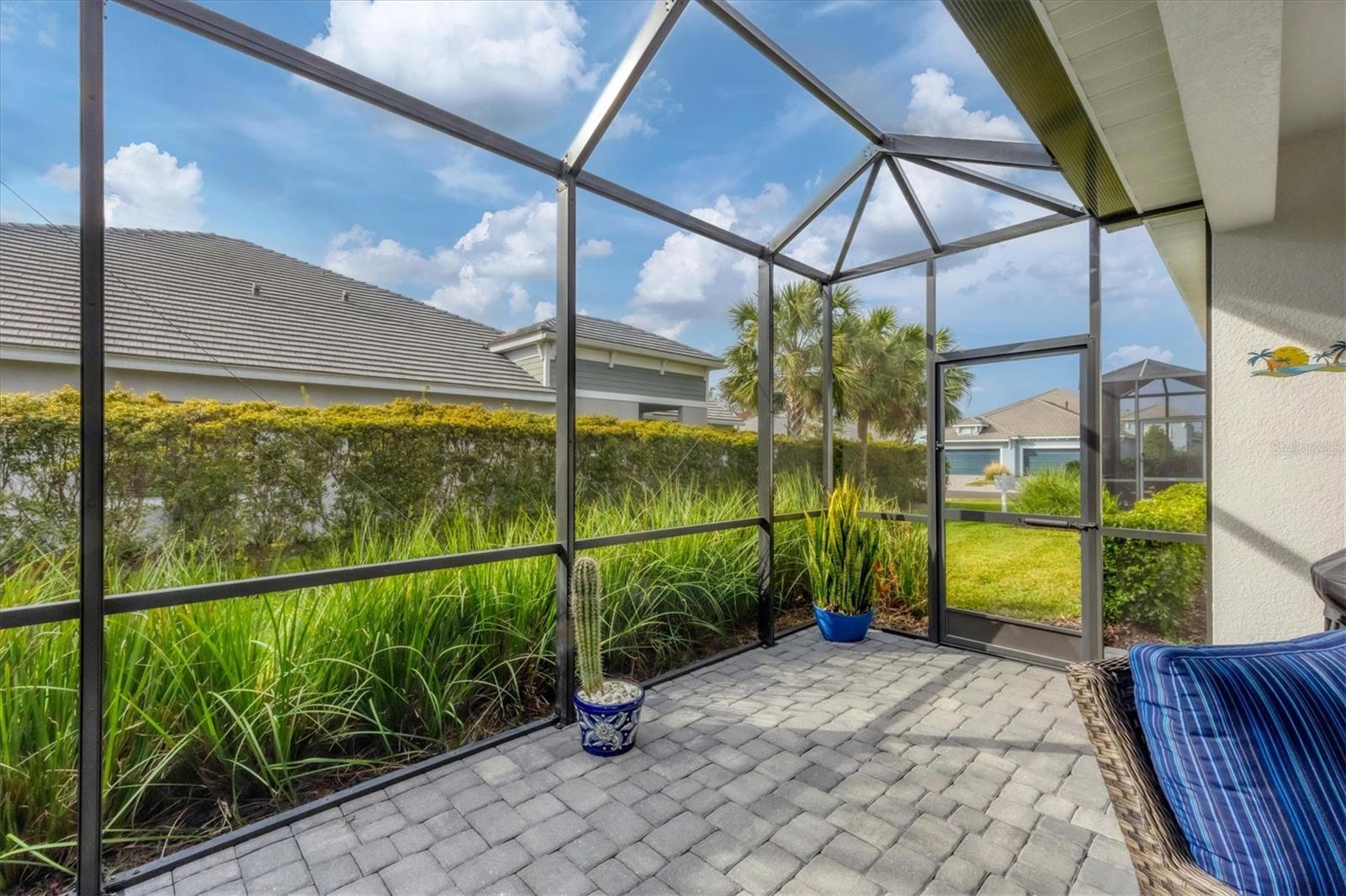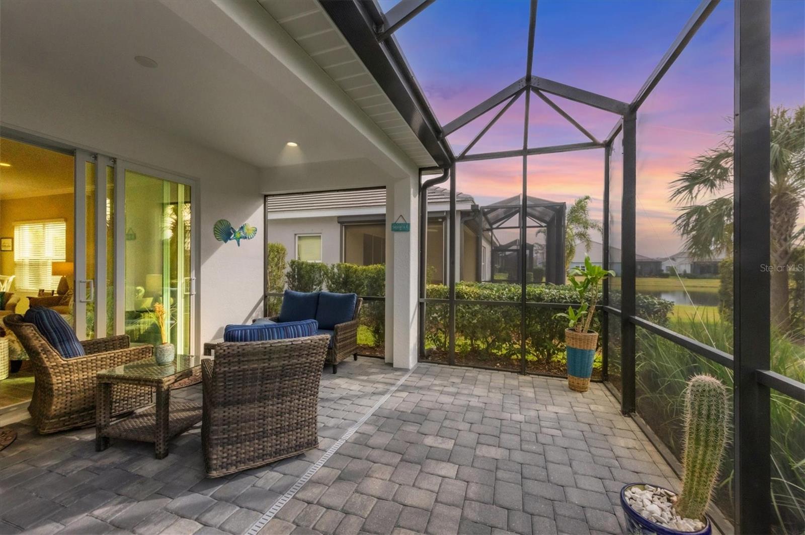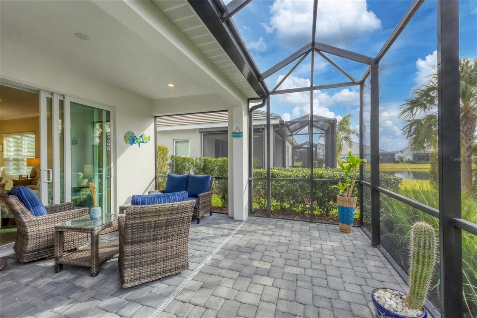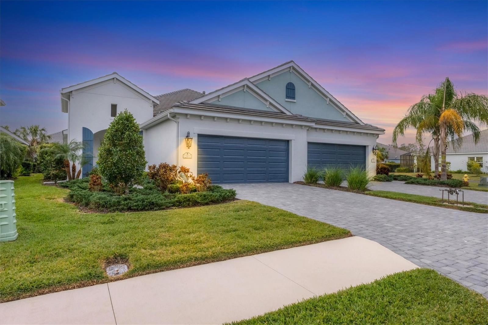 Feast your eyes on this stunning ''Sandcastle'' 2021 built villa that was constructed to the most recent HURRICANE building codes! This meticulously cared for villa boasts 3 bedrooms, 2 bathrooms, a generous sized study/den, indoor laundry room, large two-car garage and extended lanai with premium pavers! This home is situated next to a cul-de-sac AND an emergency only gate which makes this one of the quietest streets in the community. Your new villa also has ''smart home'' capabilities which allows you to remotely adjust your thermostat, open and close your garage as well as lock and unlock the front door! Rest assured your new villa is built strong and safe with its Insulated cinder block construction, concrete tile roof, HURRICANE IMPACT WINDOWS throughout AND desirable "X'' floodzone. Throughout the home you will find 5 1/4" deco baseboards, LED recessed lighting, 16-seer rated TRANE HVAC, crown molding, upgraded ceramic tile and much more! The luxurious master suite offers TWO oversized walk-in closets, separate his and hers vanities with quartz countertops AND a large walk-in shower with upgraded tile all the way up to the ceiling. The kitchen boasts a large Island with breakfast bar, custom pullouts for convenient storage, 5-burner natural gas stove, matching stainless steel appliances, custom porcelain backsplash and upgraded shaker cabinets that complement the premium granite countertops. The great room with its expansive tall ceilings with crown molding showcases a spacious environment with more than enough room to entertain guests. Open the large three paneled HURRICANE IMPACT sliders and be amazed at the amount of room the paver rich extended screened lanai provides which is truly a peaceful, undisturbed Florida retreat. Your new lanai also comes equipped with a builder grade gas line for a direct connection to your favorite grill OR your own new kitchenette. Indigo is an active community that features a full time on-site manager as well as a full time activities director that manages an extensive calendar of activities for all ages. A-Rated Gullett Elementary AND Mona Jain Middle School are right outside our gates too! You can also expect sidewalks on both sides of the street, ''Oasis'' pool/spa, resort style heated community pool/spa at the main clubhouse where you will find 5 cabanas with an abundance of seating, 4 pickleball courts, 2 bocce ball courts, 24-hour exercise gym, meeting room/banquet room and playground. Indigo is not only a community that takes care of all ground maintenance to include mowing, fertilizing, irrigation, shrubs and mulch but is right around the corner to a plethora of dining, banking, entertainment, public transportation and MORE!