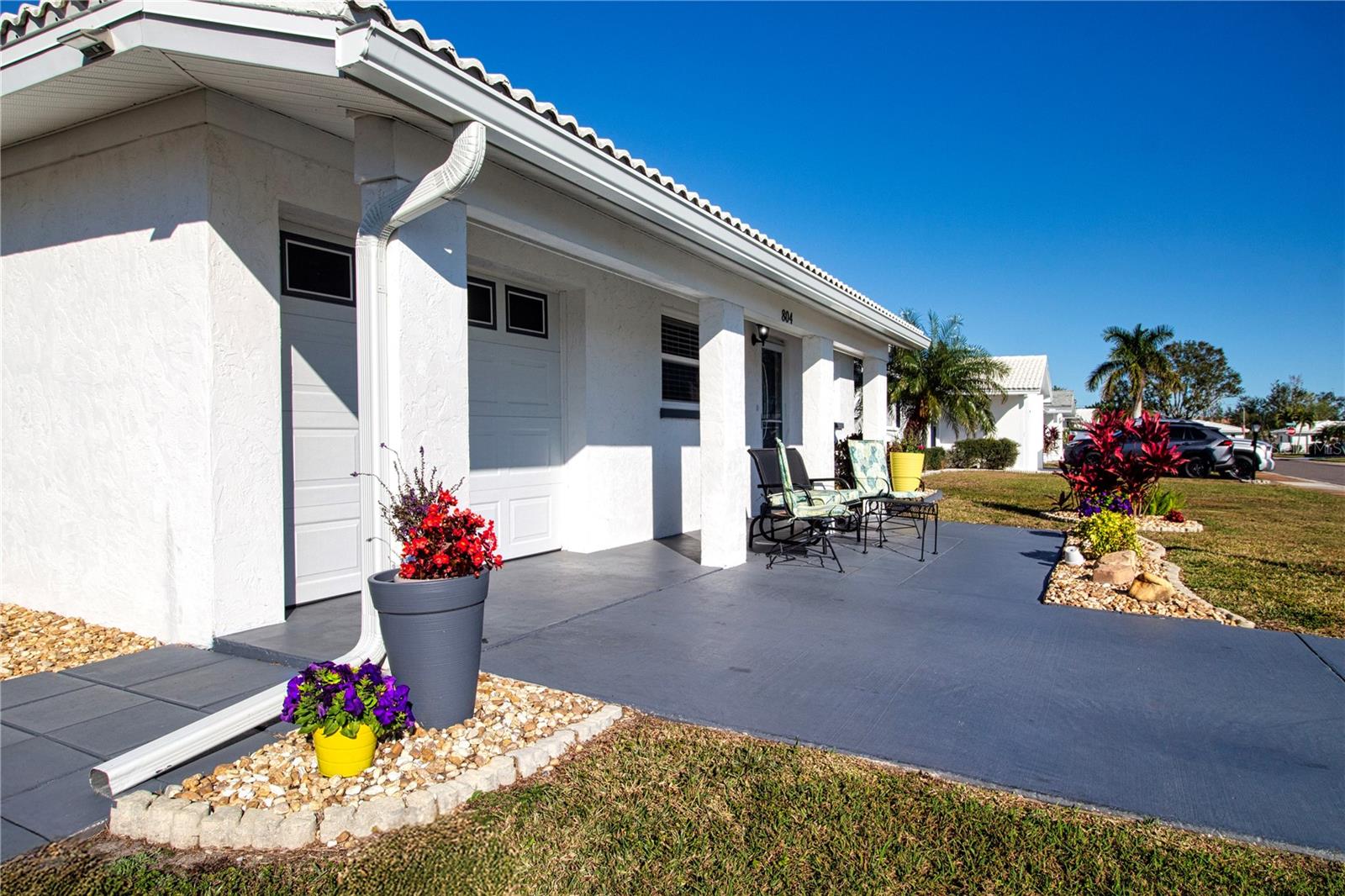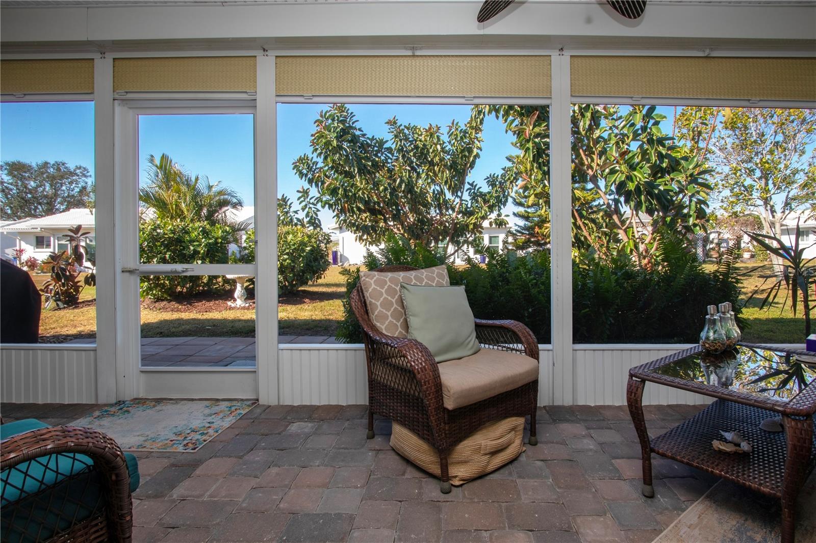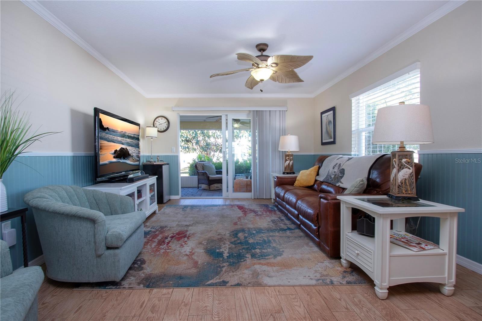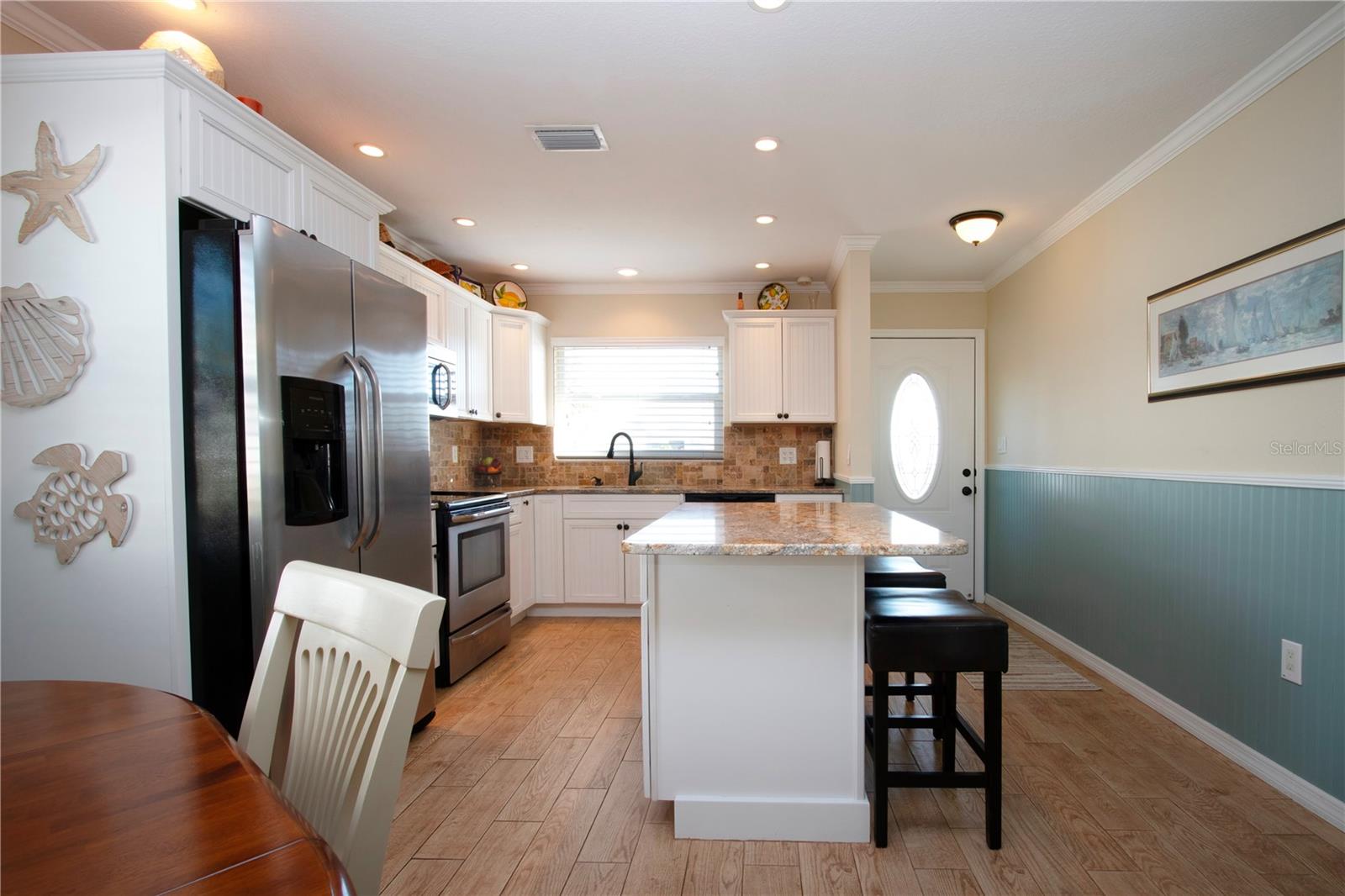 Looking for a vibrant community? River Isles is a highly desirable 55+, pet friendly, deed restricted, golf course community. Monthly HOA fees are $60. This is a charming turn key with 2 bedroom, 2 full bath home with open concept kitchen and living area. You will appreciate this well maintained and completely renovated home. Features include: ceramic plank flooring throughout, hurricane rated windows plus two 8' reversible sliding doors, upgraded electrical panel, newer HVAC ductwork, ceiling fans, upgraded lighting, beautiful granite counter tops throughout, travertine kitchen backsplash, light and bright solid wood cabinetry, island seating, New Samsung French door, bottom freezer refrigerator, and dishwasher. In addition, both full baths provide comfort height commodes and vanities, complimented by large framed mirrors. Lovely crown molding and fresh coastal paint colors throughout. Relax and admire the beautiful surroundings from the screened Lanai with roll down hurricane shutters. Also, an attached golf cart garage with pull down garage door and the 48 volt golf cart is included. The landscape provides both privacy and tranquility. Imagine sipping a sunrise cup of coffee on the front porch patio and/or grilling on the backyard patio. River Isles offers amenities such as clubhouse, shuffle board, library, billiards, fitness room, heated pool, and much more. River Isles Golf Club is a favorite spot for the golf enthusiasts - with a 9-hole executive golf course and an option to join a yearly membership with unlimited golf, making it an accessible and affordable option. In addition to the wonderful amenities offered in this community, River Isles is conveniently located with easy access to bus line, interstate 75, shopping centers, entertainment hubs, restaurants, airports, and medical facilities. If you are seeking a community that offers both a peaceful environment with amenities and activities, River Isles is the perfect place for you.