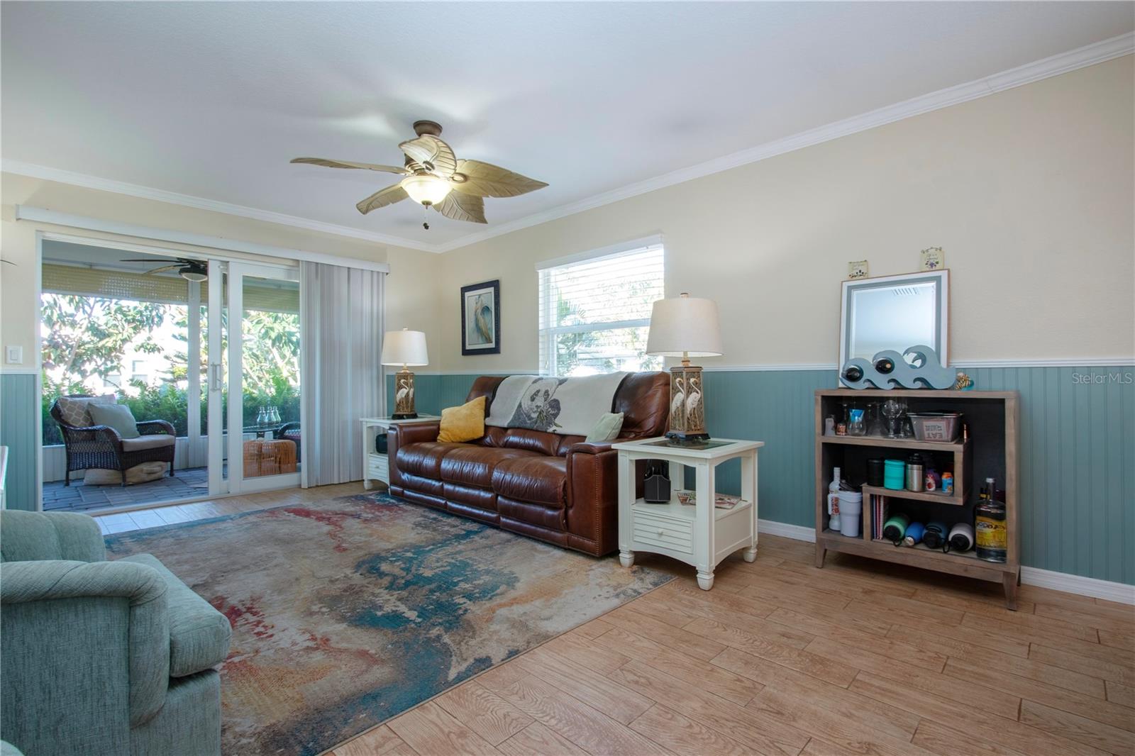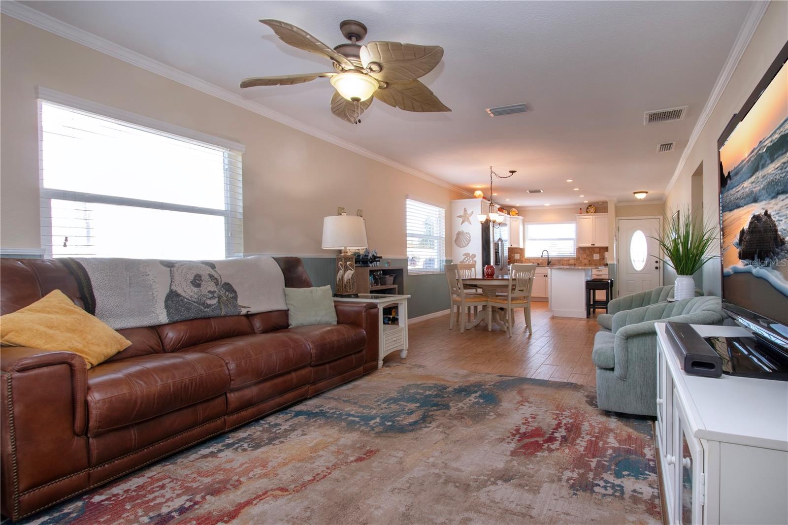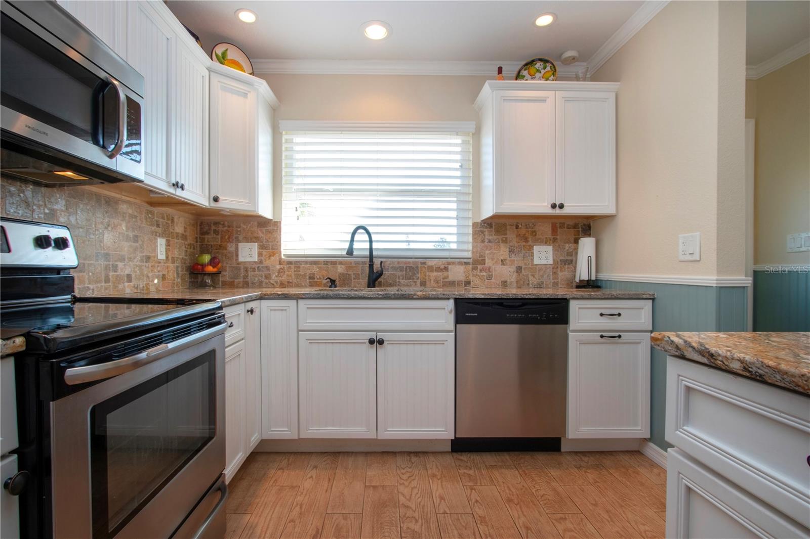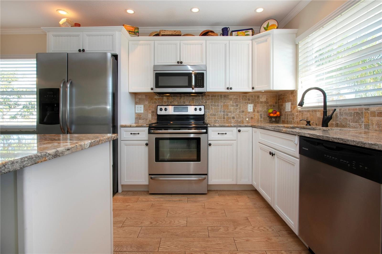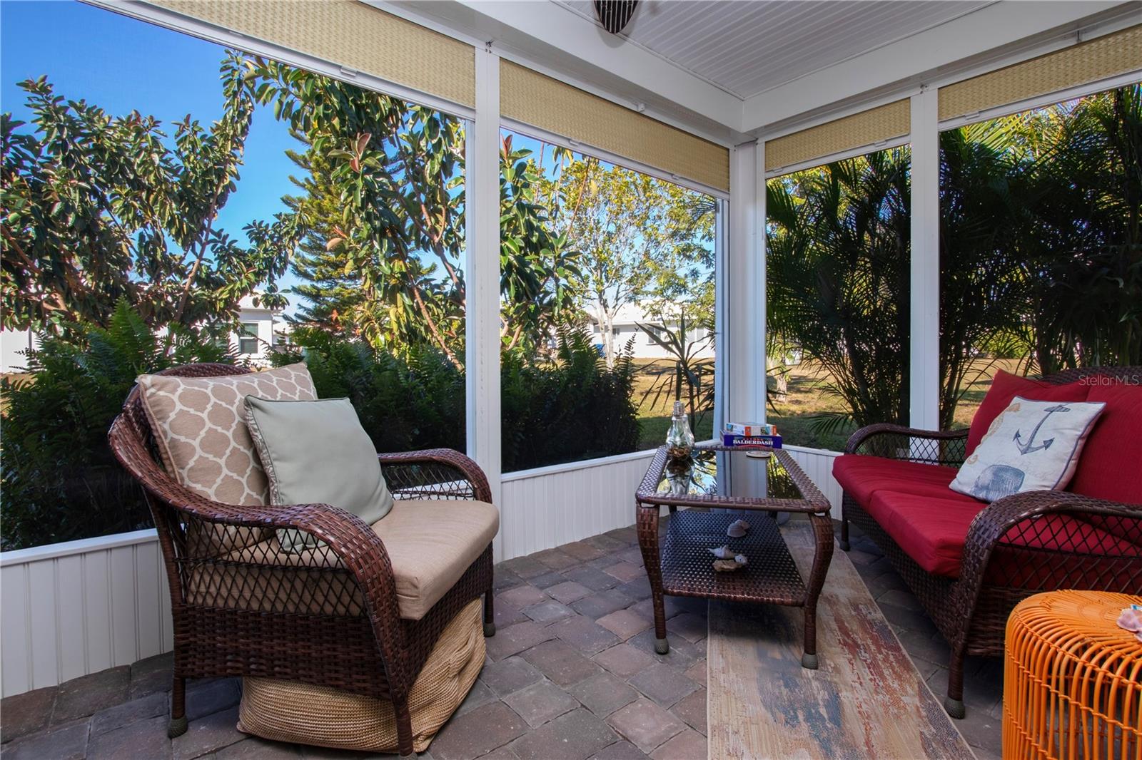 Looking for a vibrant community? River Isles is a highly desirable 55+, pet friendly, deed restricted, golf course community. Monthly HOA fees are $60. This is a charming turn key with 2 bedroom, 2 full bath home with open concept kitchen and living area. You will appreciate this well maintained and completely renovated home. Features include: ceramic plank flooring throughout, hurricane rated windows plus two 8' reversible sliding doors, upgraded electrical panel, newer HVAC ductwork, ceiling fans, upgraded lighting, beautiful granite counter tops throughout, travertine kitchen backsplash, light and bright solid wood cabinetry, island seating, New Samsung French door, bottom freezer refrigerator, and dishwasher. In addition, both full baths provide comfort height commodes and vanities, complimented by large framed mirrors. Lovely crown molding and fresh coastal paint colors throughout. Relax and admire the beautiful surroundings from the screened Lanai with roll down hurricane shutters. Also, an attached golf cart garage with pull down garage door and the 48 volt golf cart is included. The landscape provides both privacy and tranquility. Imagine sipping a sunrise cup of coffee on the front porch patio and/or grilling on the backyard patio. River Isles offers amenities such as clubhouse, shuffle board, library, billiards, fitness room, heated pool, and much more. River Isles Golf Club is a favorite spot for the golf enthusiasts - with a 9-hole executive golf course and an option to join a yearly membership with unlimited golf, making it an accessible and affordable option. In addition to the wonderful amenities offered in this community, River Isles is conveniently located with easy access to bus line, interstate 75, shopping centers, entertainment hubs, restaurants, airports, and medical facilities. If you are seeking a community that offers both a peaceful environment with amenities and activities, River Isles is the perfect place for you.