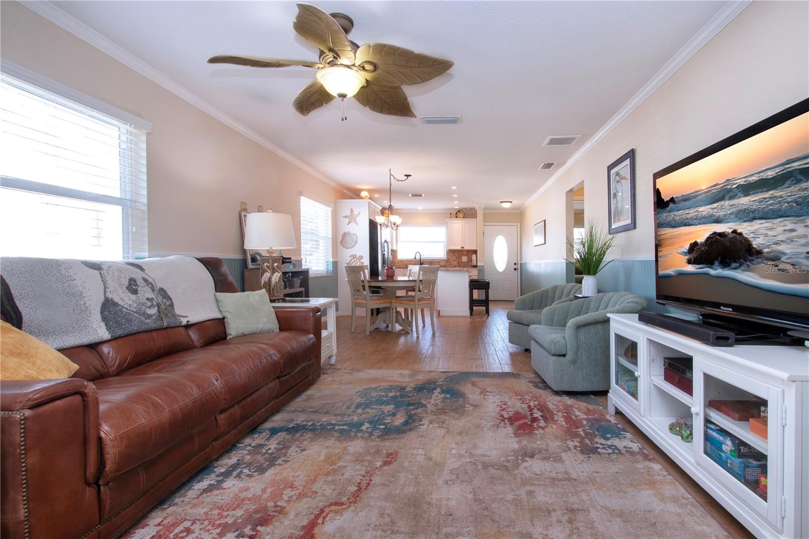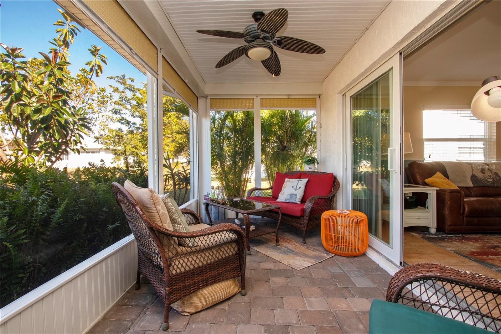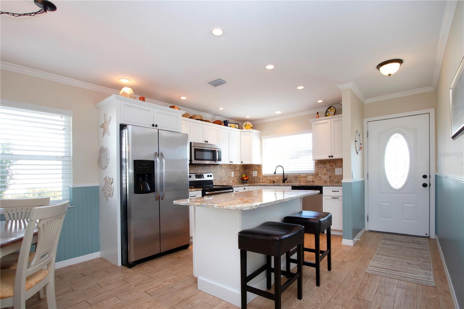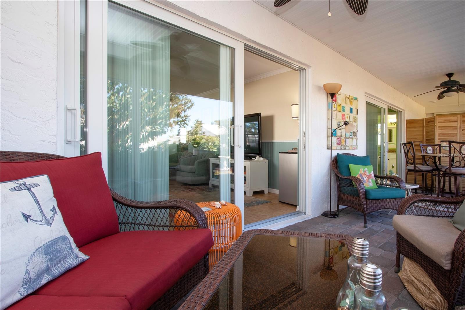 Looking for a vibrant community? River Isles is a highly desirable 55+, pet friendly, deed restricted, golf course community. Monthly HOA fees are $60. This is a charming turn key with 2 bedroom, 2 full bath home with open concept kitchen and living area. You will appreciate this well maintained and completely renovated home. Features include: ceramic plank flooring throughout, hurricane rated windows plus two 8' reversible sliding doors, upgraded electrical panel, newer HVAC ductwork, ceiling fans, upgraded lighting, beautiful granite counter tops throughout, travertine kitchen backsplash, light and bright solid wood cabinetry, island seating, New Samsung French door, bottom freezer refrigerator, and dishwasher. In addition, both full baths provide comfort height commodes and vanities, complimented by large framed mirrors. Lovely crown molding and fresh coastal paint colors throughout. Relax and admire the beautiful surroundings from the screened Lanai with roll down hurricane shutters. Also, an attached golf cart garage with pull down garage door and the 48 volt golf cart is included. The landscape provides both privacy and tranquility. Imagine sipping a sunrise cup of coffee on the front porch patio and/or grilling on the backyard patio. River Isles offers amenities such as clubhouse, shuffle board, library, billiards, fitness room, heated pool, and much more. River Isles Golf Club is a favorite spot for the golf enthusiasts - with a 9-hole executive golf course and an option to join a yearly membership with unlimited golf, making it an accessible and affordable option. In addition to the wonderful amenities offered in this community, River Isles is conveniently located with easy access to bus line, interstate 75, shopping centers, entertainment hubs, restaurants, airports, and medical facilities. If you are seeking a community that offers both a peaceful environment with amenities and activities, River Isles is the perfect place for you.