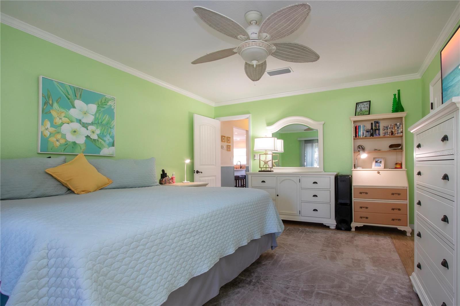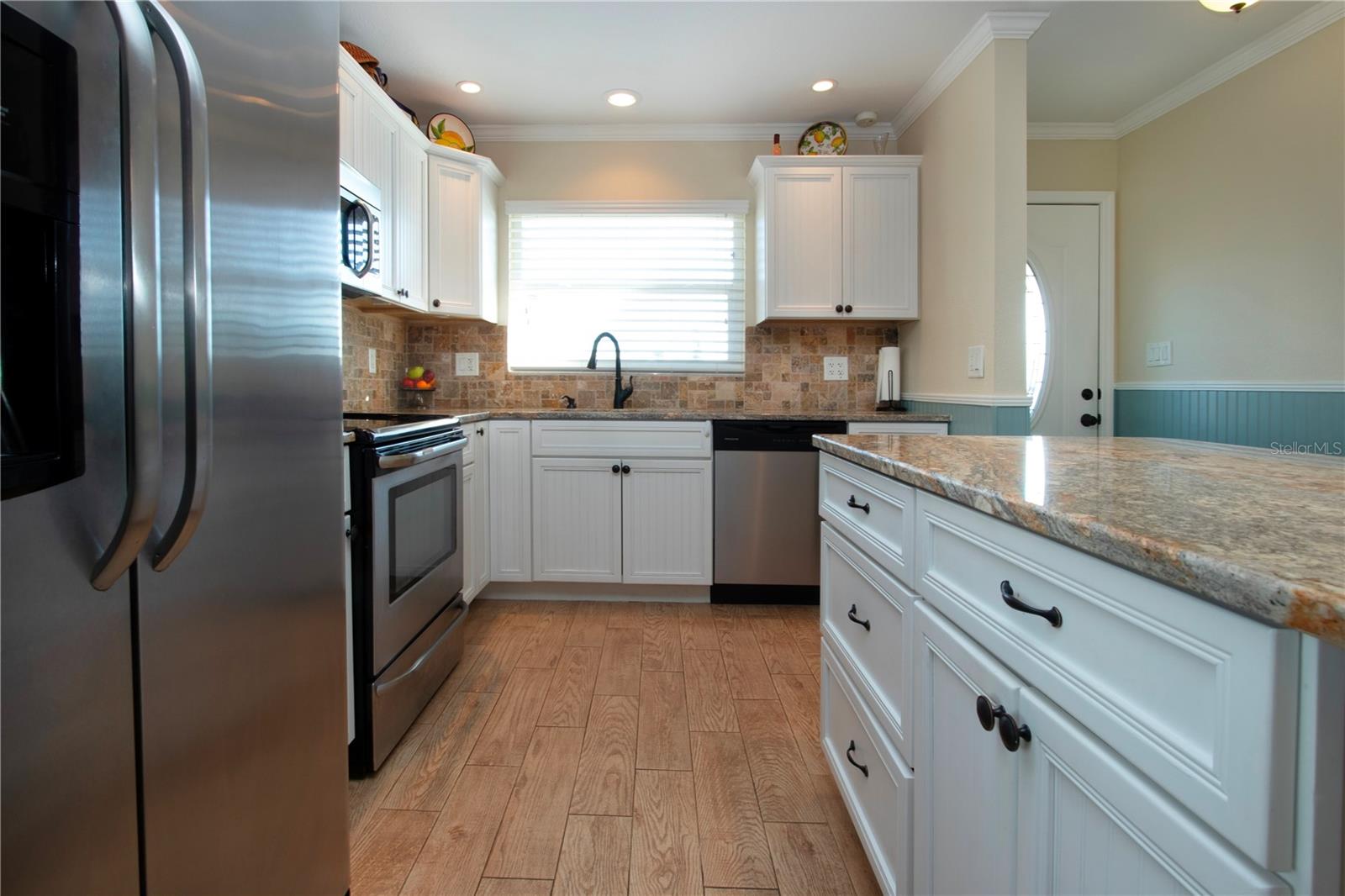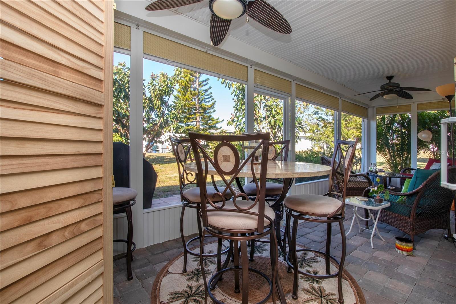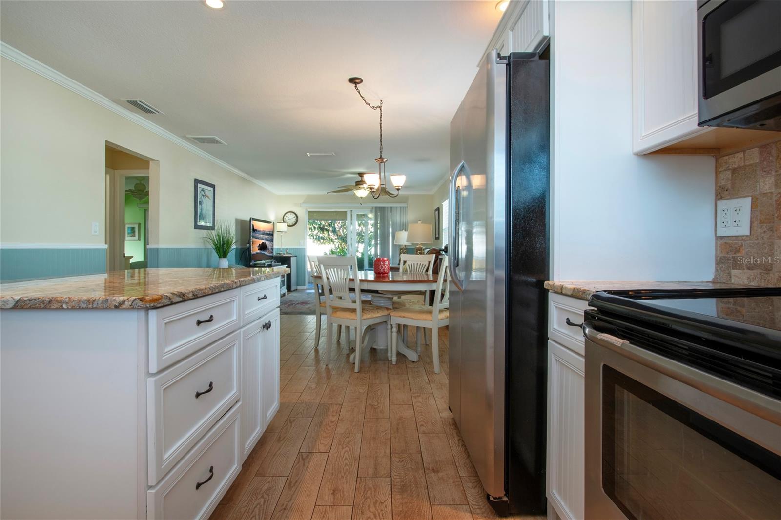 Looking for a vibrant community? River Isles is a highly desirable 55+, pet friendly, deed restricted, golf course community. Monthly HOA fees are $60. This is a charming turn key with 2 bedroom, 2 full bath home with open concept kitchen and living area. You will appreciate this well maintained and completely renovated home. Features include: ceramic plank flooring throughout, hurricane rated windows plus two 8' reversible sliding doors, upgraded electrical panel, newer HVAC ductwork, ceiling fans, upgraded lighting, beautiful granite counter tops throughout, travertine kitchen backsplash, light and bright solid wood cabinetry, island seating, New Samsung French door, bottom freezer refrigerator, and dishwasher. In addition, both full baths provide comfort height commodes and vanities, complimented by large framed mirrors. Lovely crown molding and fresh coastal paint colors throughout. Relax and admire the beautiful surroundings from the screened Lanai with roll down hurricane shutters. Also, an attached golf cart garage with pull down garage door and the 48 volt golf cart is included. The landscape provides both privacy and tranquility. Imagine sipping a sunrise cup of coffee on the front porch patio and/or grilling on the backyard patio. River Isles offers amenities such as clubhouse, shuffle board, library, billiards, fitness room, heated pool, and much more. River Isles Golf Club is a favorite spot for the golf enthusiasts - with a 9-hole executive golf course and an option to join a yearly membership with unlimited golf, making it an accessible and affordable option. In addition to the wonderful amenities offered in this community, River Isles is conveniently located with easy access to bus line, interstate 75, shopping centers, entertainment hubs, restaurants, airports, and medical facilities. If you are seeking a community that offers both a peaceful environment with amenities and activities, River Isles is the perfect place for you.