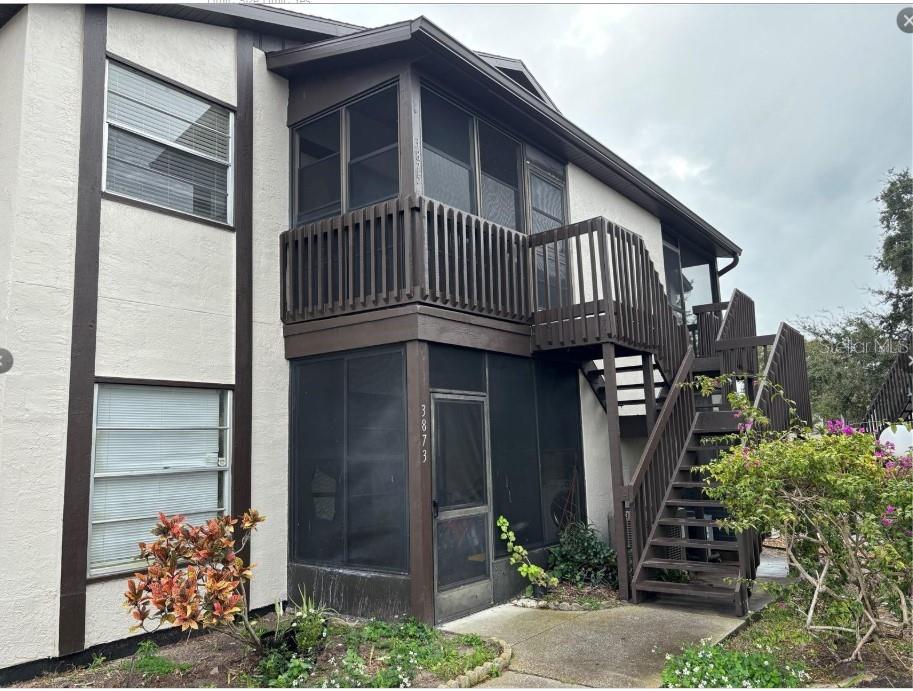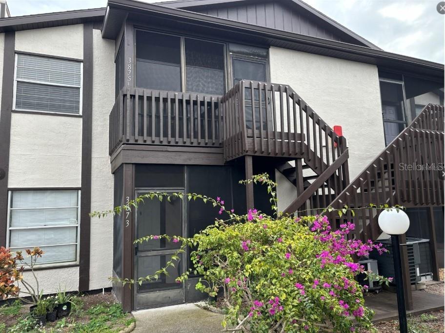This charming second-floor split-plan condo offers a modern and comfortable living space with a range of updated features. The unit includes two bedrooms and two bathrooms, with the main bedroom benefiting from an en-suite bathroom and spacious walk-in closet. The condo has been freshly painted throughout and boasts all-new light fixtures and ceiling fans. The kitchen has been tastefully updated with granite countertops, a breakfast bar, appliances and cabinets, providing an ideal setting for cooking and entertaining. The living room is bright and airy with vaulted ceilings and a cozy wood-burning fireplace. Both bedrooms are carpeted, while the rest of the condo is finished with tile flooring for easy maintenance. The second bathroom has also been updated with a new vanity and a tub/shower combo. The enclosed front porch is a great feature, complete with vinyl window coverings for added privacy. The unit also includes a new washer and dryer for convenience. Residents of the Mirror Lake community enjoy access to a variety of amenities, including a heated swimming pool and spa, tennis court, clubhouse, pickleball courts, and a gym. The condo's location is perfect for those who want to be close to key attractions such as IMG Academy, the State College
