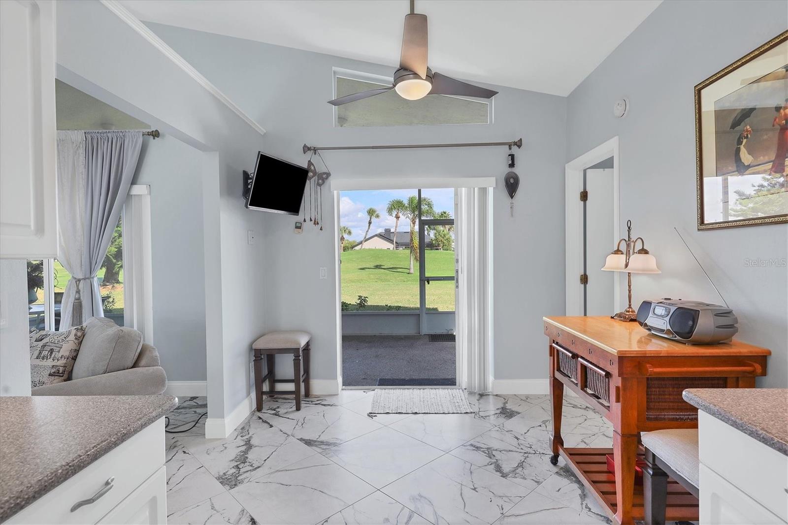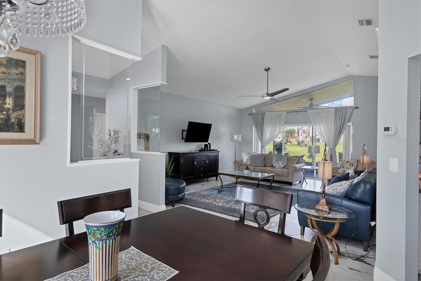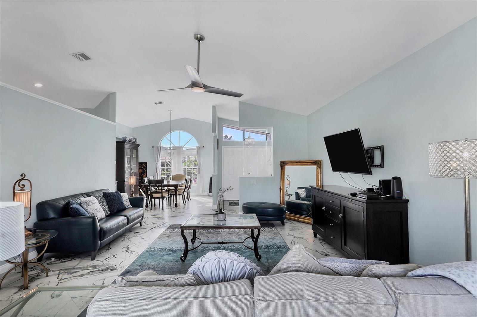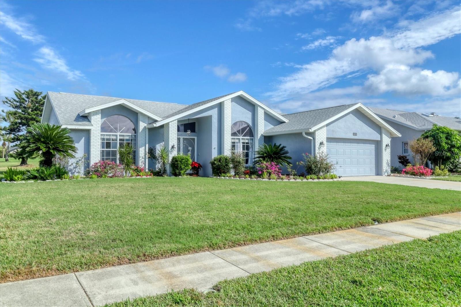 Nestled alongside the picturesque golf course of Peridia Golf & Country Club, this exceptional residence captivates with its charming landscaping and serene setting. A seamless blend of elegance and functionality, this 3-bedroom, 2-bath split-plan home offers expansive views of the manicured golf course from nearly every room. Step inside to discover meticulously re-painted interiors that set the tone for a refined living experience. The home features newer porcelain tile flooring and baseboards throughout, lending a touch of contemporary sophistication. The kitchen and bathrooms have been thoughtfully updated, showcasing modern design and comfort, creating a perfect blend of style and practicality. Enjoy the charm of indoor-outdoor living as you relax in rooms that frame lush greenery and stunning golf course vistas. This beautifully updated home is a testament to timeless luxury and modern comfort, with every detail carefully curated to enhance your lifestyle. As a resident, you’ll become a member of the Peridia Golf & Country Club, a vibrant community that balances relaxed living with engaging amenities. The clubhouse provides a welcoming atmosphere with a full-service restaurant and bar, catering to a variety of tastes and fostering a friendly environment. Spend leisurely afternoons at the Tiki Bar by the pool, which offers a laid-back setting for informal gatherings. Residents enjoy a 18-hole executive golf course, perfect for a fulfilling round of golf. Stay active with tennis and pickleball courts or join water aerobics classes for a dynamic fitness option. The community also offers a host of social activities, from Sunday brunch and Friday evening live music to games like Mah Jongg, Bridge, and Poker. Peridia Golf & Country Club takes pride in fostering a welcoming suburban lifestyle enriched by exceptional amenities and friendly service. Experience the perfect balance of relaxation, recreation, and socializing in this exceptional community—a place that feels just like home.