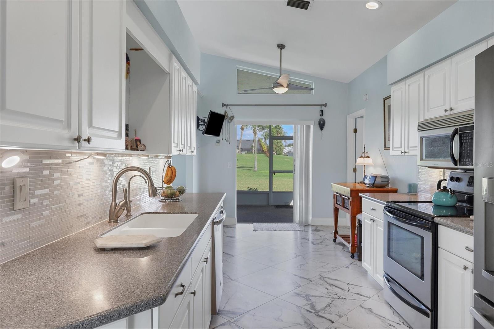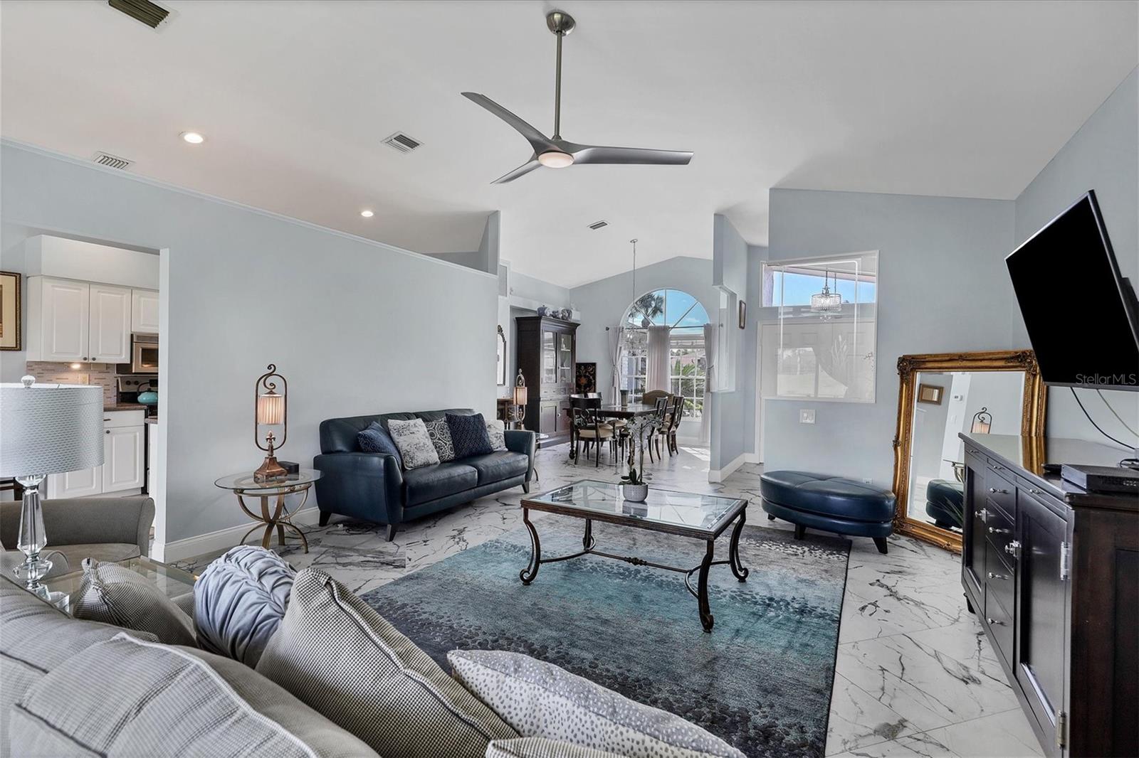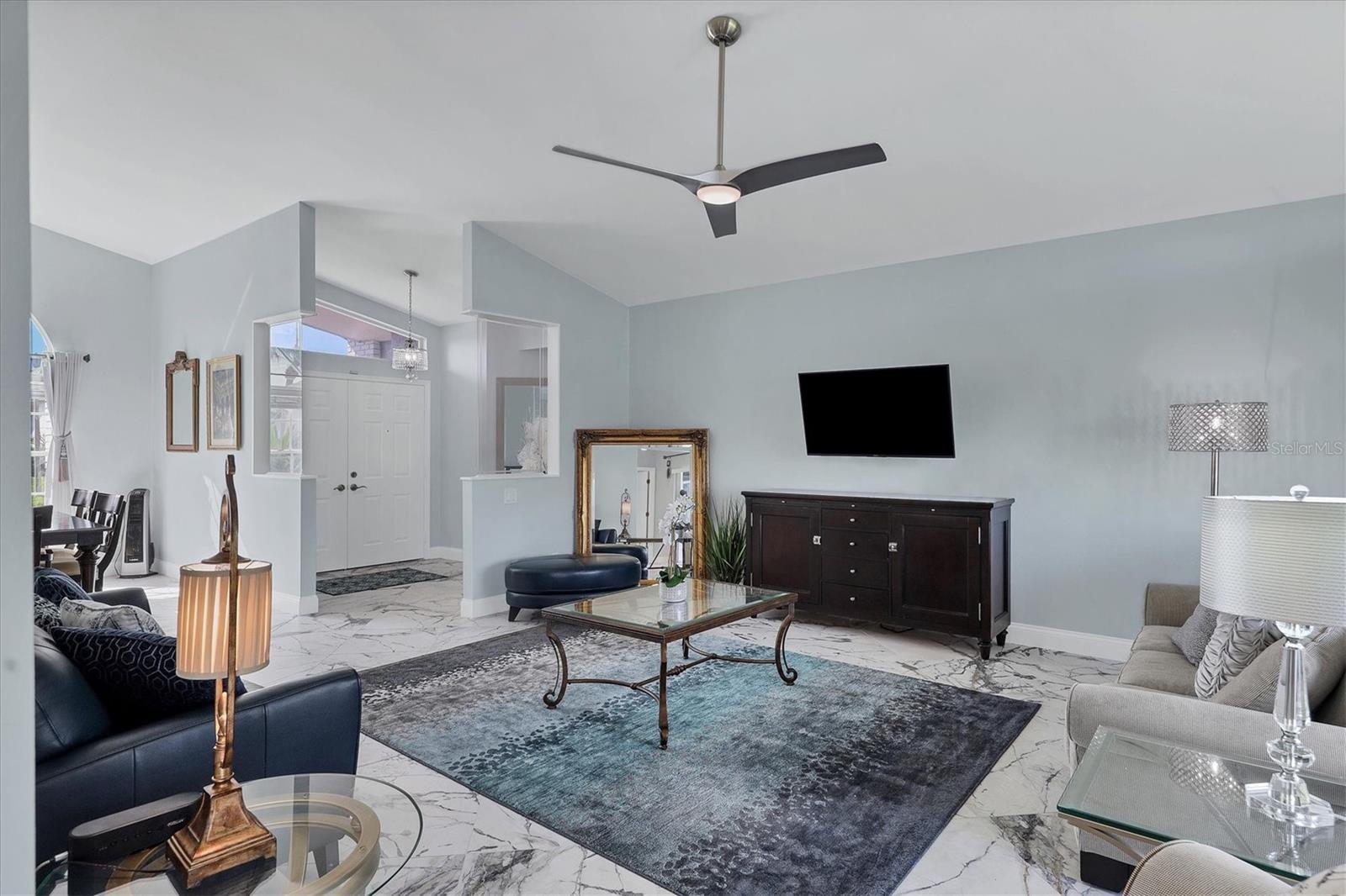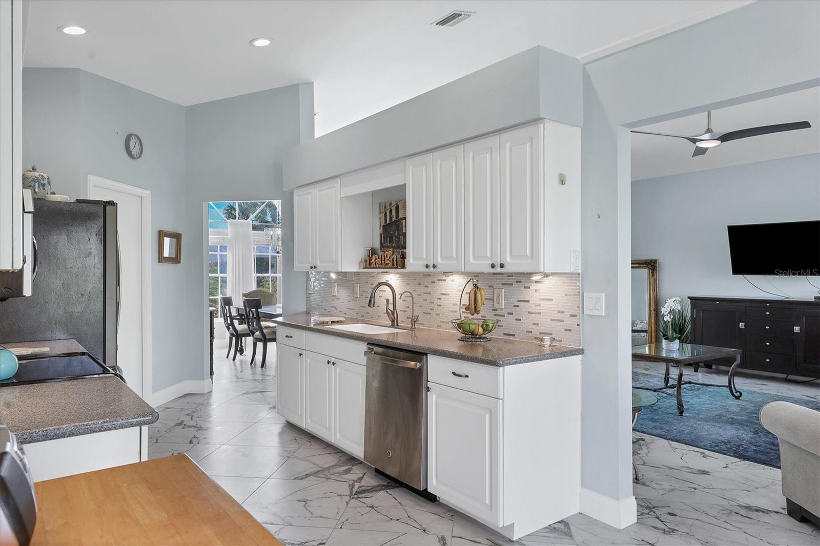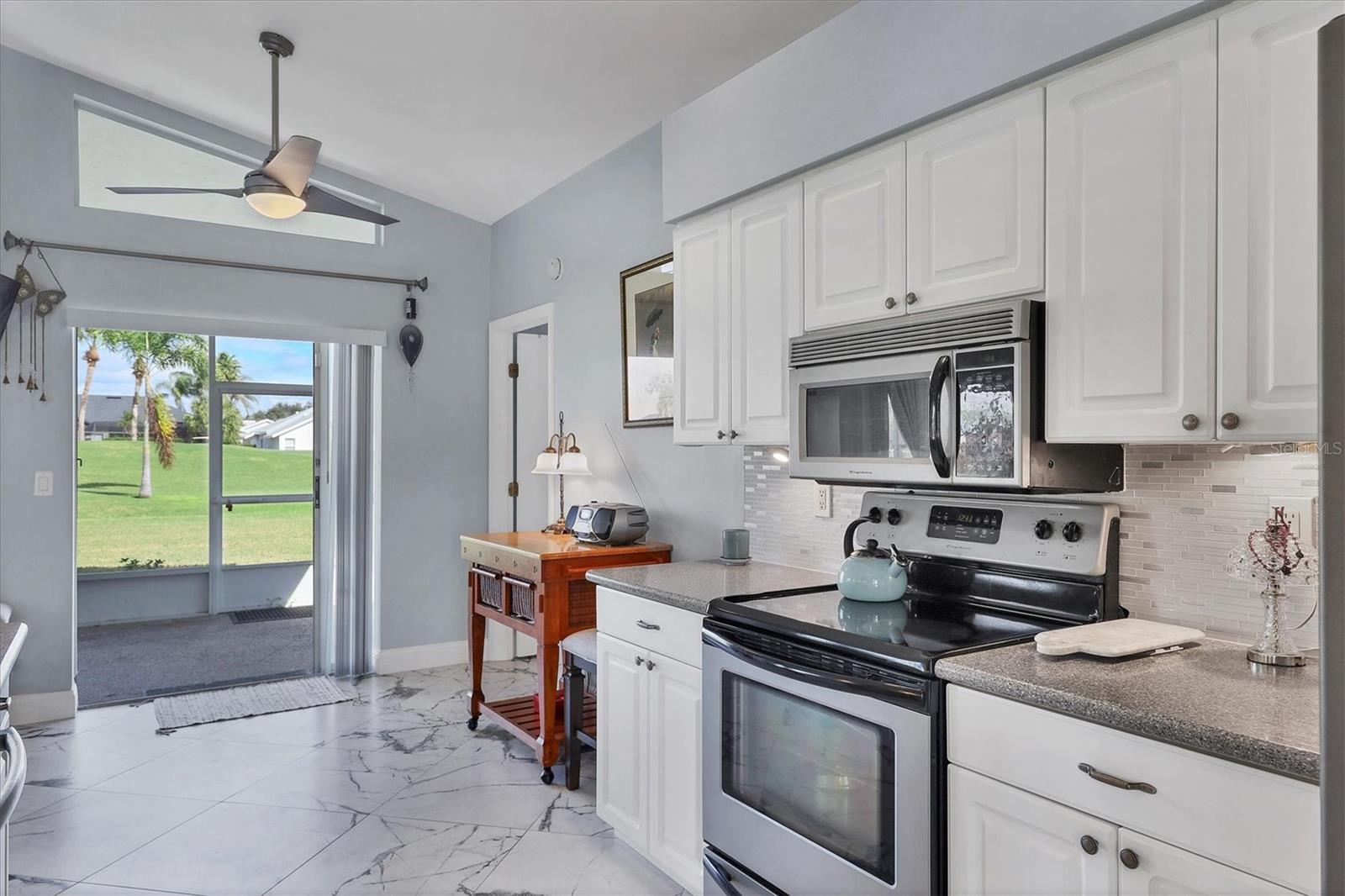Nestled alongside the picturesque golf course of Peridia Golf & Country Club, this exceptional residence captivates with its charming landscaping and serene setting. A seamless blend of elegance and functionality, this 3-bedroom, 2-bath split-plan home offers expansive views of the manicured golf course from nearly every room. Step inside to discover meticulously re-painted interiors that set the tone for a refined living experience. The home features newer porcelain tile flooring and baseboards throughout, lending a touch of contemporary sophistication. The kitchen and bathrooms have been thoughtfully updated, showcasing modern design and comfort, creating a perfect blend of style and practicality. Enjoy the charm of indoor-outdoor living as you relax in rooms that frame lush greenery and stunning golf course vistas. This beautifully updated home is a testament to timeless luxury and modern comfort, with every detail carefully curated to enhance your lifestyle. As a resident, you’ll become a member of the Peridia Golf & Country Club, a vibrant community that balances relaxed living with engaging amenities. The clubhouse provides a welcoming atmosphere with a full-service restaurant and bar, catering to a variety of tastes and fostering a friendly environment. Spend leisurely afternoons at the Tiki Bar by the pool, which offers a laid-back setting for informal gatherings. Residents enjoy a 18-hole executive golf course, perfect for a fulfilling round of golf. Stay active with tennis and pickleball courts or join water aerobics classes for a dynamic fitness option. The community also offers a host of social activities, from Sunday brunch and Friday evening live music to games like Mah Jongg, Bridge, and Poker. Peridia Golf & Country Club takes pride in fostering a welcoming suburban lifestyle enriched by exceptional amenities and friendly service. Experience the perfect balance of relaxation, recreation, and socializing in this exceptional community—a place that feels just like home.