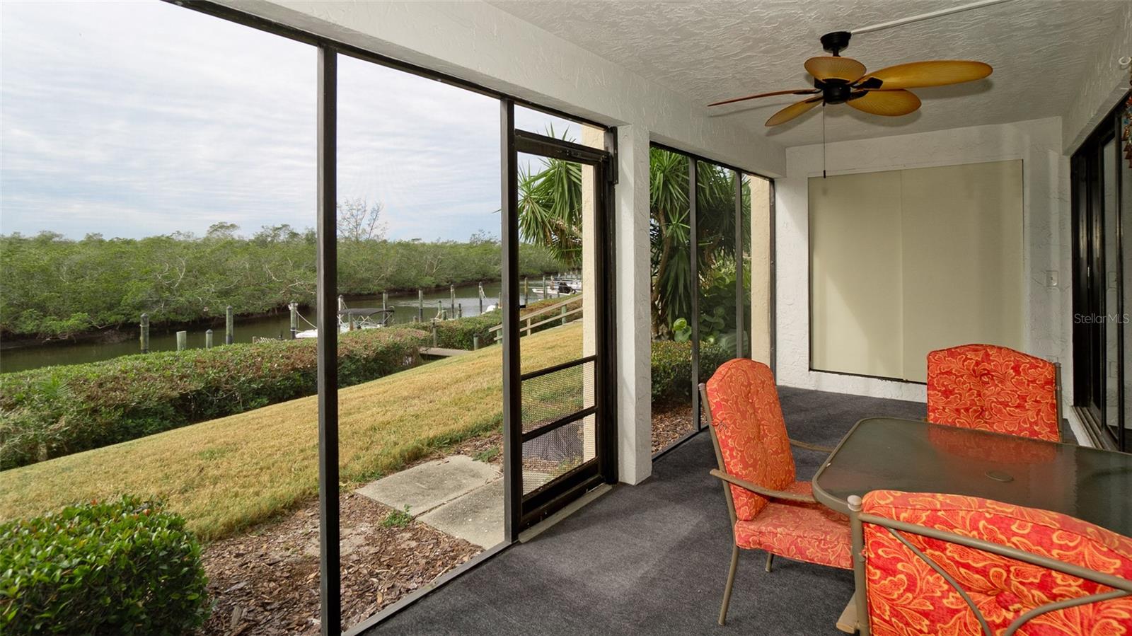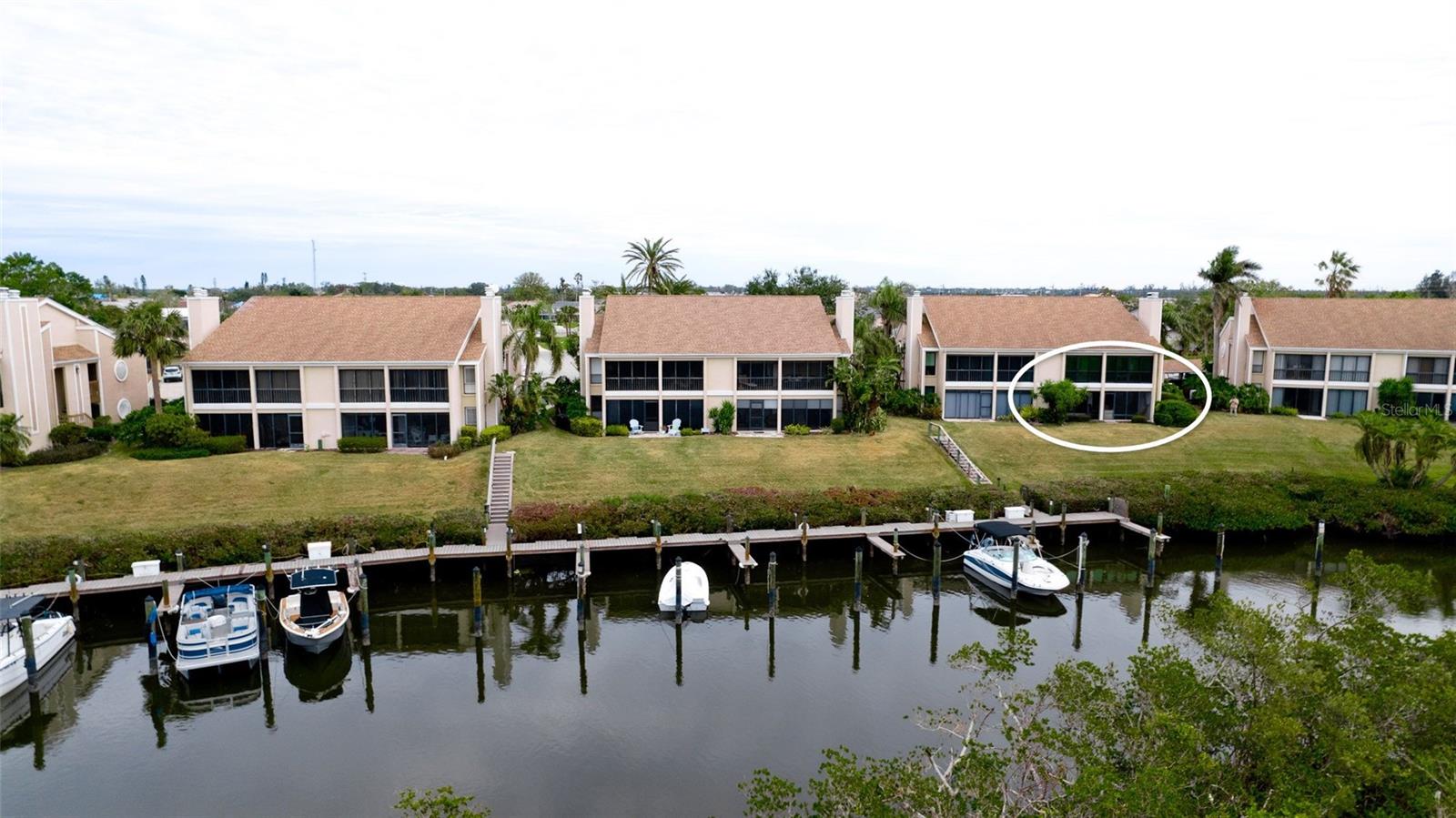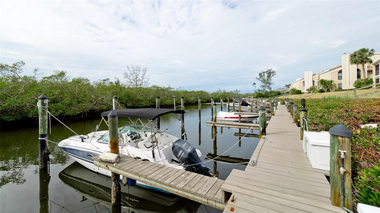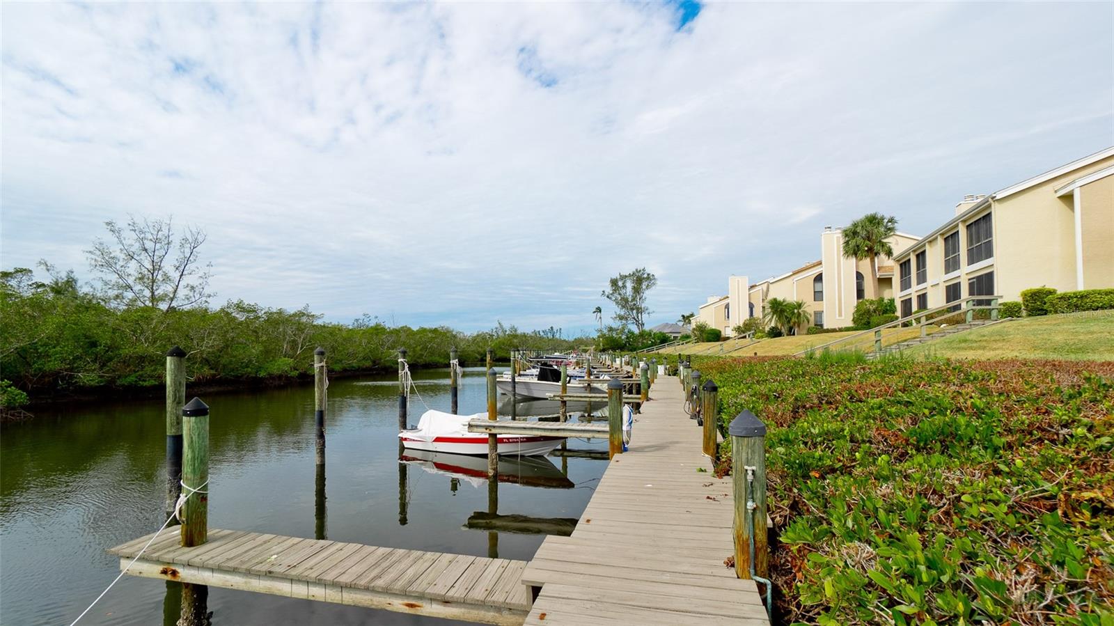 Affordable and appealing! Well maintained Bay Hollow first floor, 2 bedroom, 2 bath waterfront and turnkey furnished condo with deeded boat slip! From your boat you have easy access to restaurants on the water, a variety of marinas, the Intercostal waterways, Sarasota Bay, Tampa Bay and the beautiful Gulf of Mexico in minutes! This spacious water views from the living/dining rooms, primary bedroom and the screened 22x8 lanai/porch extend the peaceful & serene setting. Kitchen has eat-in space, stainless steel appliances, granite counter top, wood cabinetry and access to the 12x9 Florida room which could easily be used as a den/office for additional space. Split bedroom floor plans. AC 2020, hot water heater 2022. This unit remained high and dry during recent 2024 storms, no flooding! Bay Hollow is an active community and reserves are fully funded. the monthly fee of $875 covers:cable, Internet, water, sewer, trash, and heated community pool, exterior maintenance, and docks with water & electric.