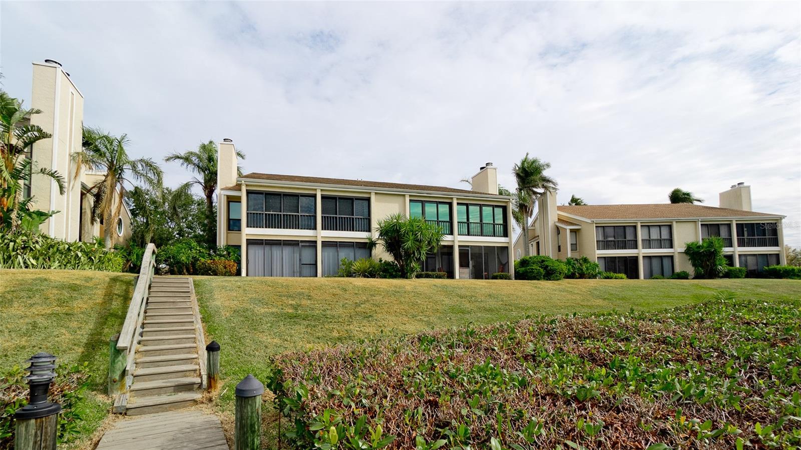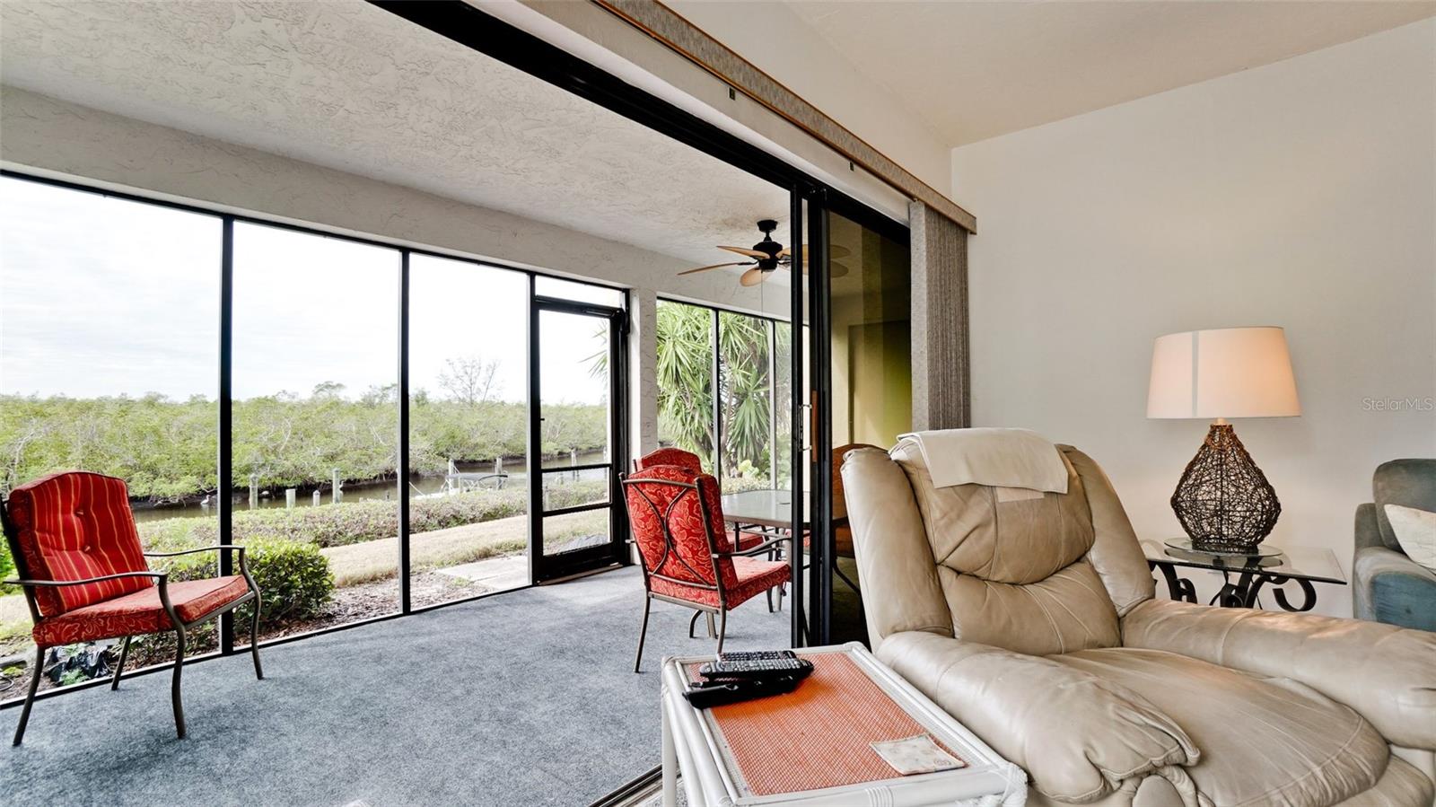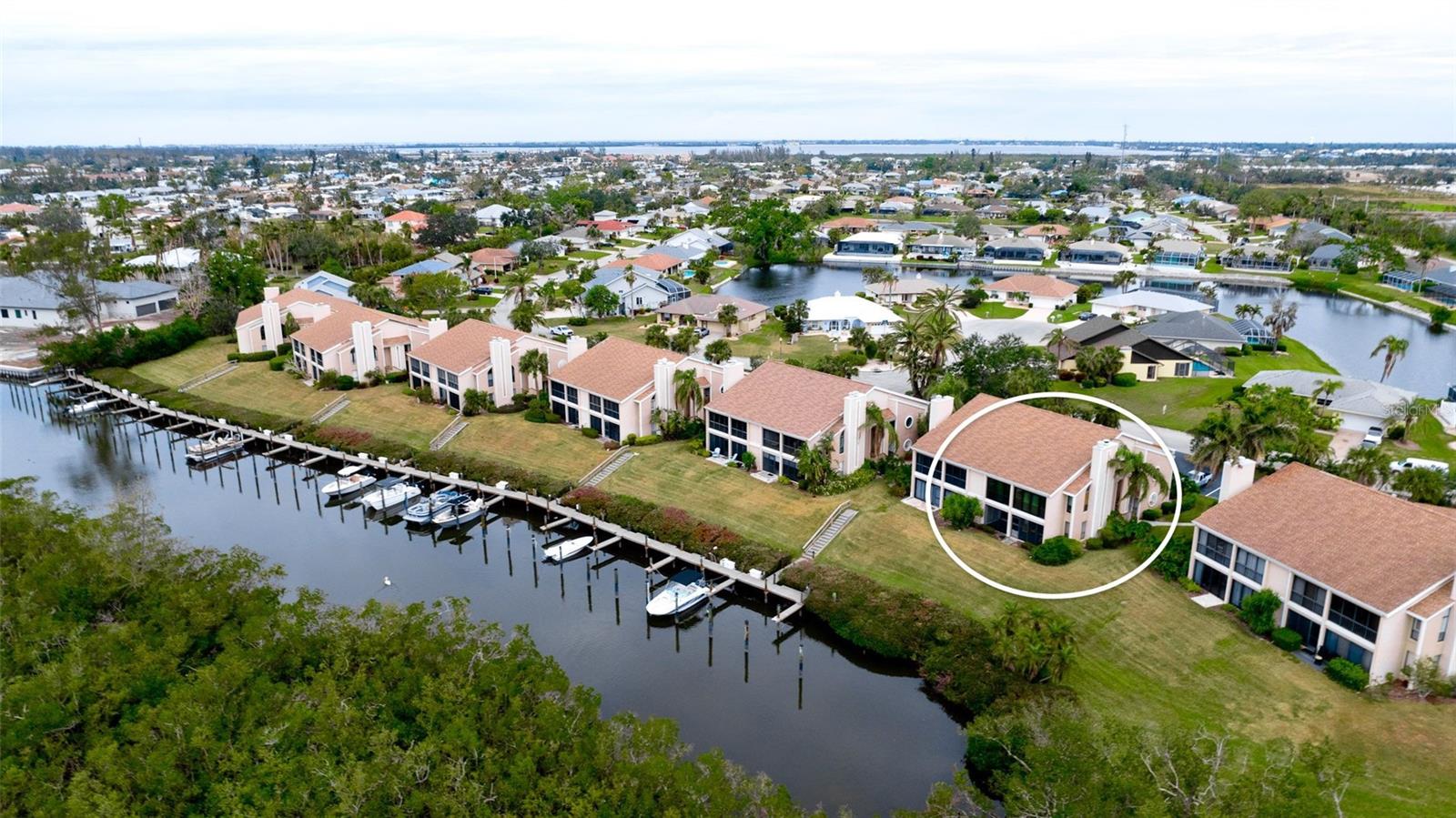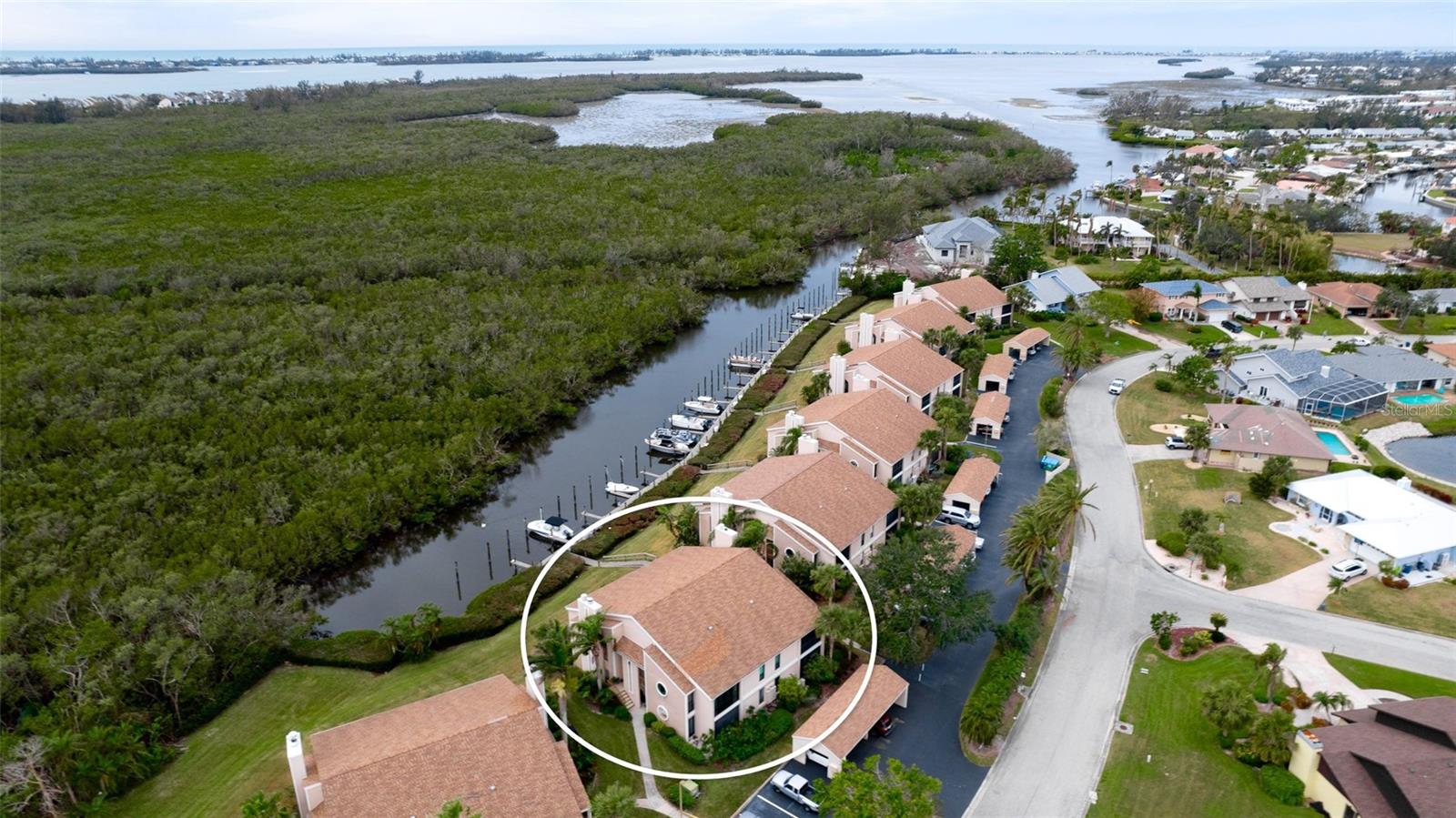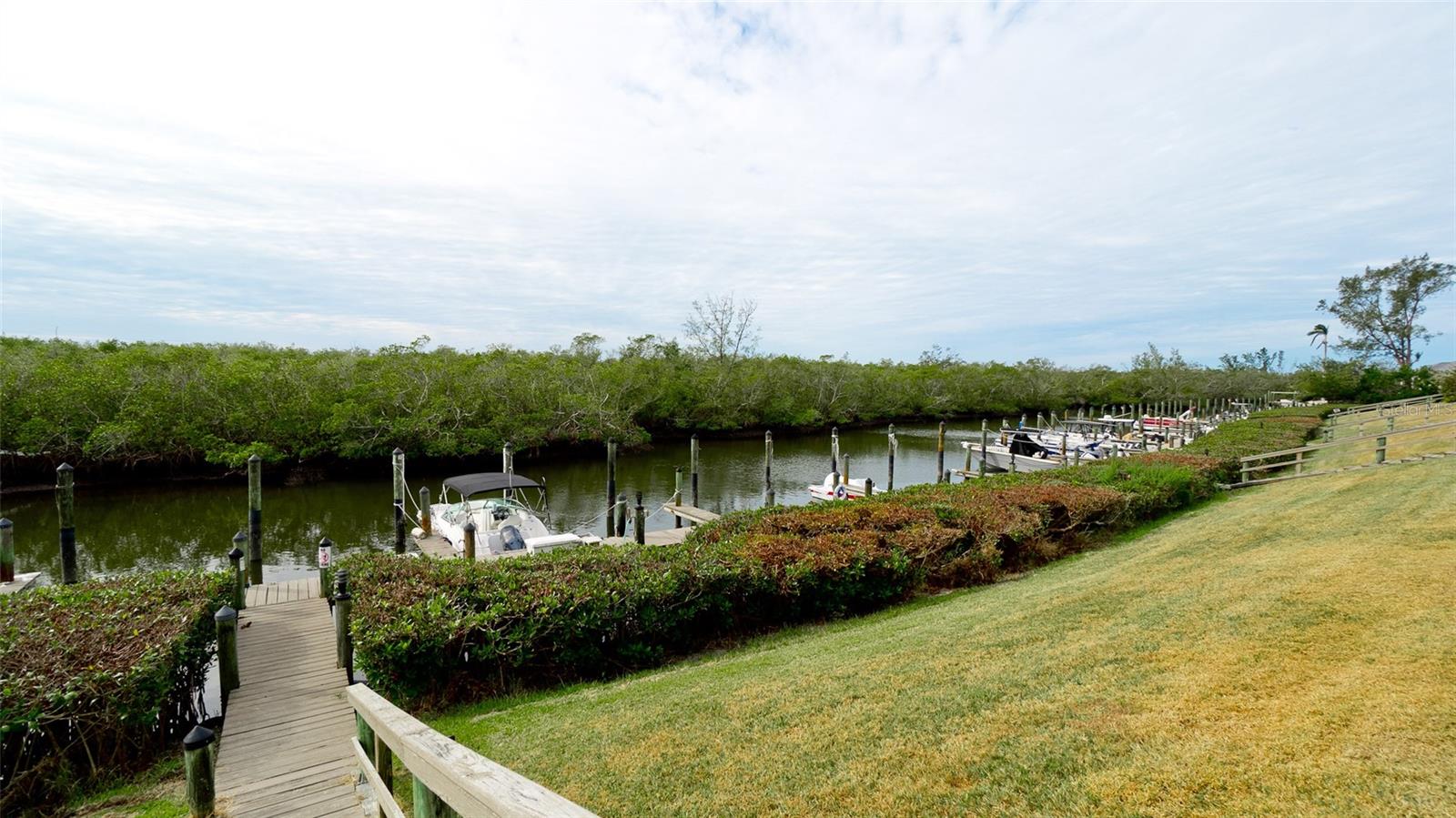 Affordable and appealing! Well maintained Bay Hollow first floor, 2 bedroom, 2 bath waterfront and turnkey furnished condo with deeded boat slip! From your boat you have easy access to restaurants on the water, a variety of marinas, the Intercostal waterways, Sarasota Bay, Tampa Bay and the beautiful Gulf of Mexico in minutes! This spacious water views from the living/dining rooms, primary bedroom and the screened 22x8 lanai/porch extend the peaceful & serene setting. Kitchen has eat-in space, stainless steel appliances, granite counter top, wood cabinetry and access to the 12x9 Florida room which could easily be used as a den/office for additional space. Split bedroom floor plans. AC 2020, hot water heater 2022. This unit remained high and dry during recent 2024 storms, no flooding! Bay Hollow is an active community and reserves are fully funded. the monthly fee of $875 covers:cable, Internet, water, sewer, trash, and heated community pool, exterior maintenance, and docks with water & electric.