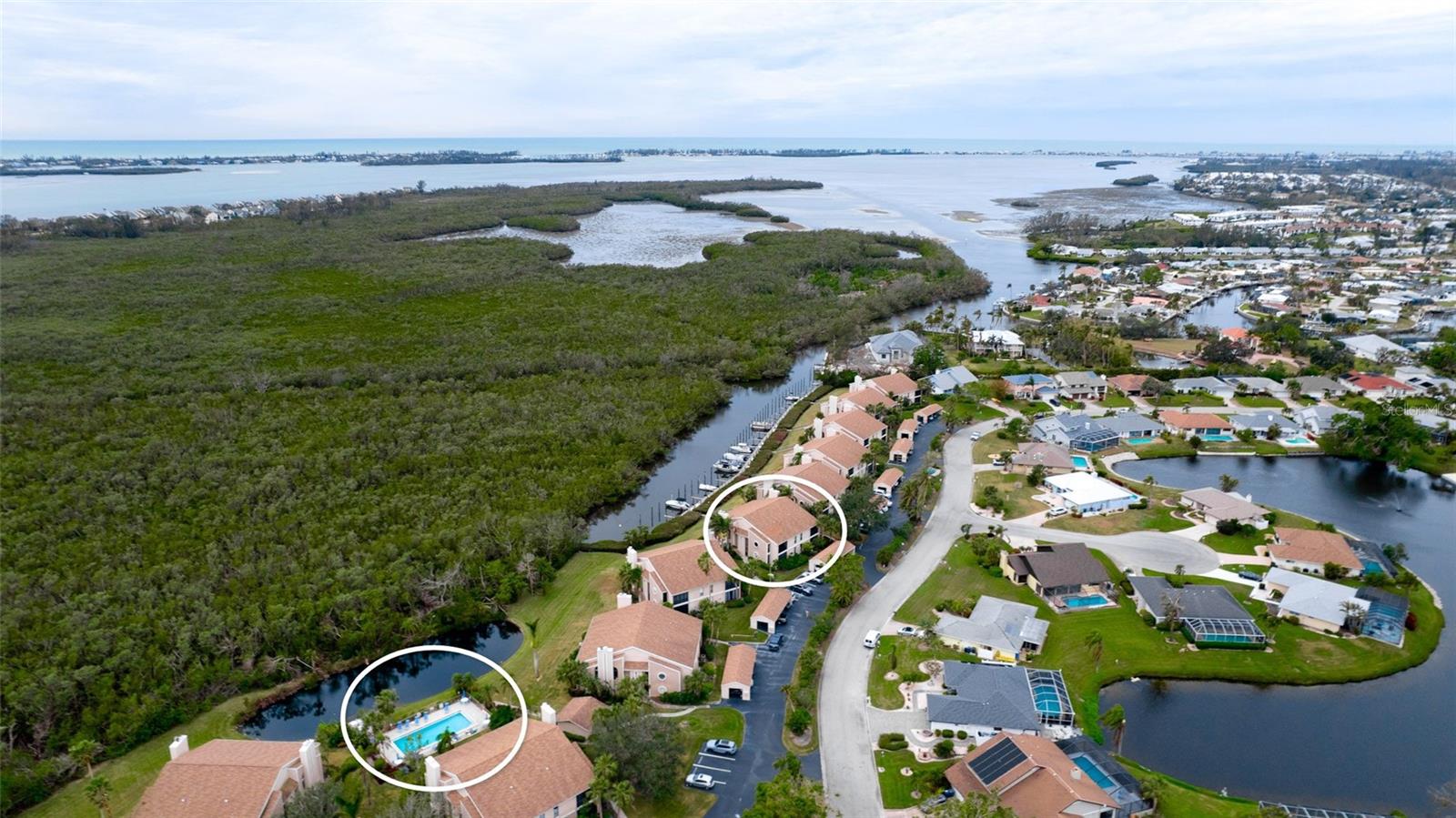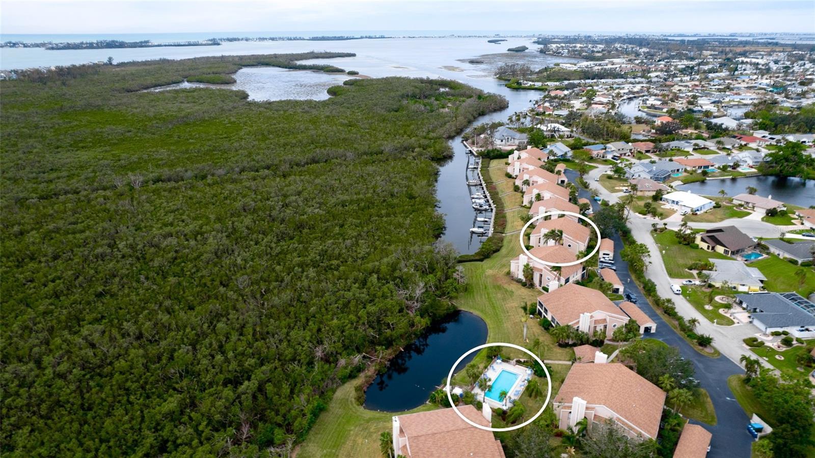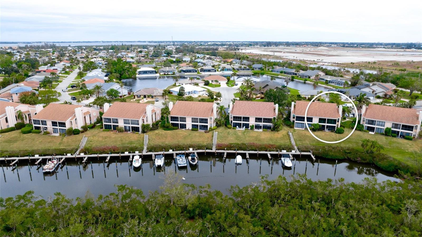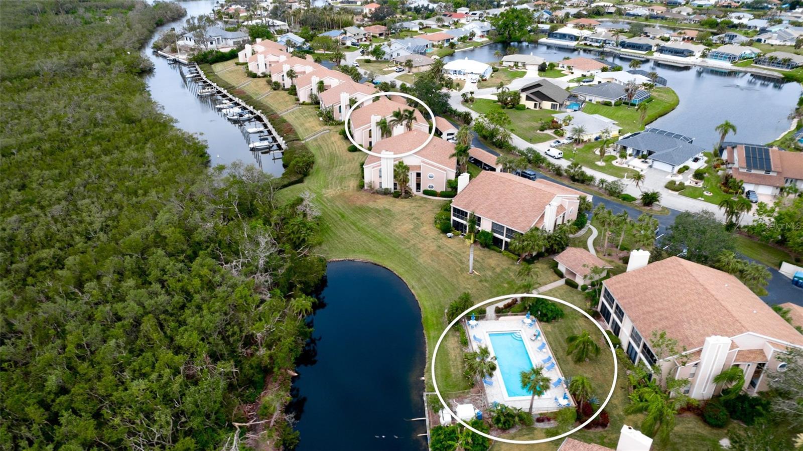 Affordable and appealing! Well maintained Bay Hollow first floor, 2 bedroom, 2 bath waterfront and turnkey furnished condo with deeded boat slip! From your boat you have easy access to restaurants on the water, a variety of marinas, the Intercostal waterways, Sarasota Bay, Tampa Bay and the beautiful Gulf of Mexico in minutes! This spacious water views from the living/dining rooms, primary bedroom and the screened 22x8 lanai/porch extend the peaceful & serene setting. Kitchen has eat-in space, stainless steel appliances, granite counter top, wood cabinetry and access to the 12x9 Florida room which could easily be used as a den/office for additional space. Split bedroom floor plans. AC 2020, hot water heater 2022. This unit remained high and dry during recent 2024 storms, no flooding! Bay Hollow is an active community and reserves are fully funded. the monthly fee of $875 covers:cable, Internet, water, sewer, trash, and heated community pool, exterior maintenance, and docks with water & electric.