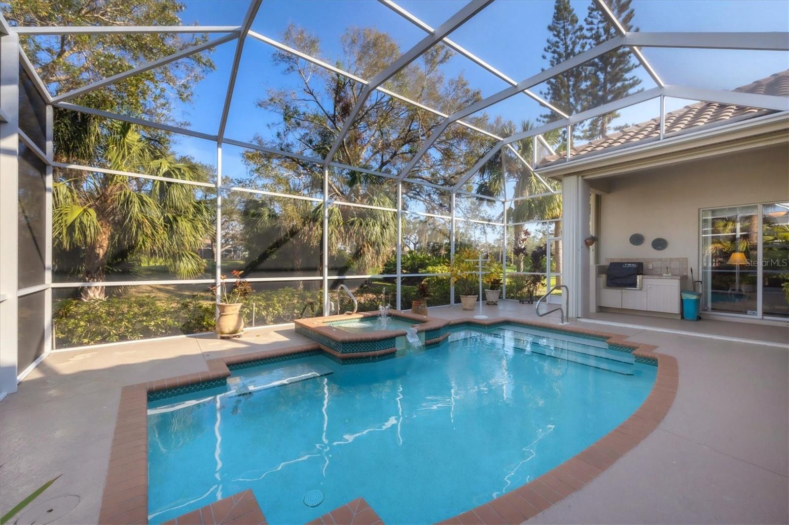 A Meticulously Maintained Lakewood Ranch Custom Home in Rosedale Golf Community. Lower Your Rate, Lower Your Payment! A lender-paid 1-year buydown or permanent rate reduction is available with our preferred lender. This stunning, one-owner home has been thoughtfully custom-built and meticulously maintained. Initially designed as a 3-bedroom, 2-bathroom home, they have since turned the 3rd bedroom into a dedicated office space. Step inside to a bright, open floor plan with formal living and dining rooms and a large family room for everyday gatherings. The breakfast nook is just off the kitchen and provides panoramic views of the lush, private backyard with an inground pool and spa —perfect for relaxation and entertaining. With abundant windows that allow natural light to flood every room, this home features Hunter Douglas blinds throughout! The kitchen is a chef’s dream, offering a large space with an abundance of 42" cabinets and extensive counter space. It features newer appliances, including a gas stove, microwave, dishwasher, and a brand-new refrigerator. A charming coffee bar with a wine cooler adds a touch of luxury, making it a perfect spot to start your day or entertain guests. The master suite is generously sized with views of the pool, offering a tranquil retreat with an expansive ensuite bathroom with a large walk-in shower, his and her vanities, a soaking tub, and a large walk-in closet with built-ins. Additional highlights include a large laundry room with sink and cabinets, an extended garage for extra storage, and a range of premium upgrades: a tankless water heater, a whole-house water filtration system, a Generac whole-home generator, central vacuum, permanent hurricane pull-down, and slide shutters around the home's exterior. The outdoor living space is equally impressive, featuring a screened-in lanai with a pool, spa, and outdoor kitchen. The kitchen includes a gas grill and sink with hot & cold water, and for the ultimate convenience, an outdoor shower with hot & cold water for rinsing off before or after a swim. There is a generous covered lanai space for an outdoor table while entertaining. The screened lanai overlooks the golf course and is surrounded by lush landscaping, offering the perfect balance of privacy and scenic views. The home’s exterior is just as impressive, with a circle driveway and well-established landscaping you'll love. The property is also equipped with a security system for peace of mind. This is a rare opportunity to own a custom home in a beautifully established Giolf community with a 24-hour gate guard. The Rosedale community combines comfort, luxury, and security in a highly desirable location.